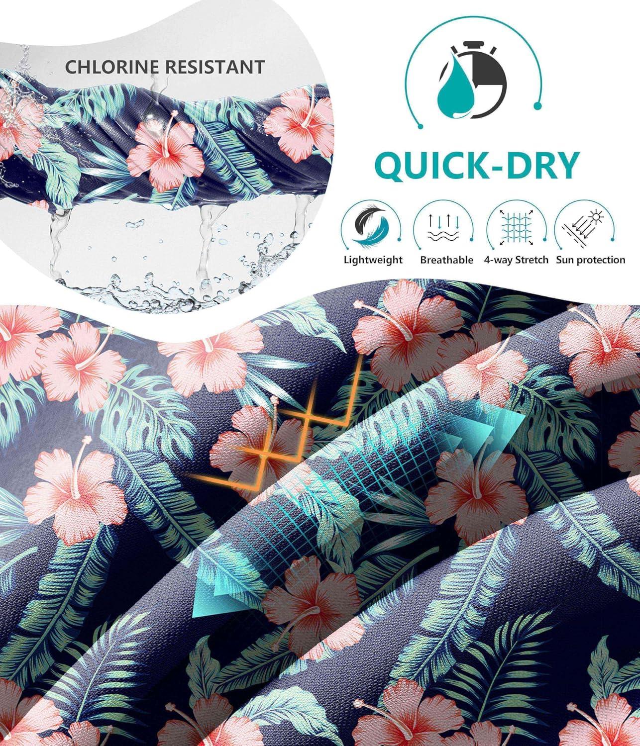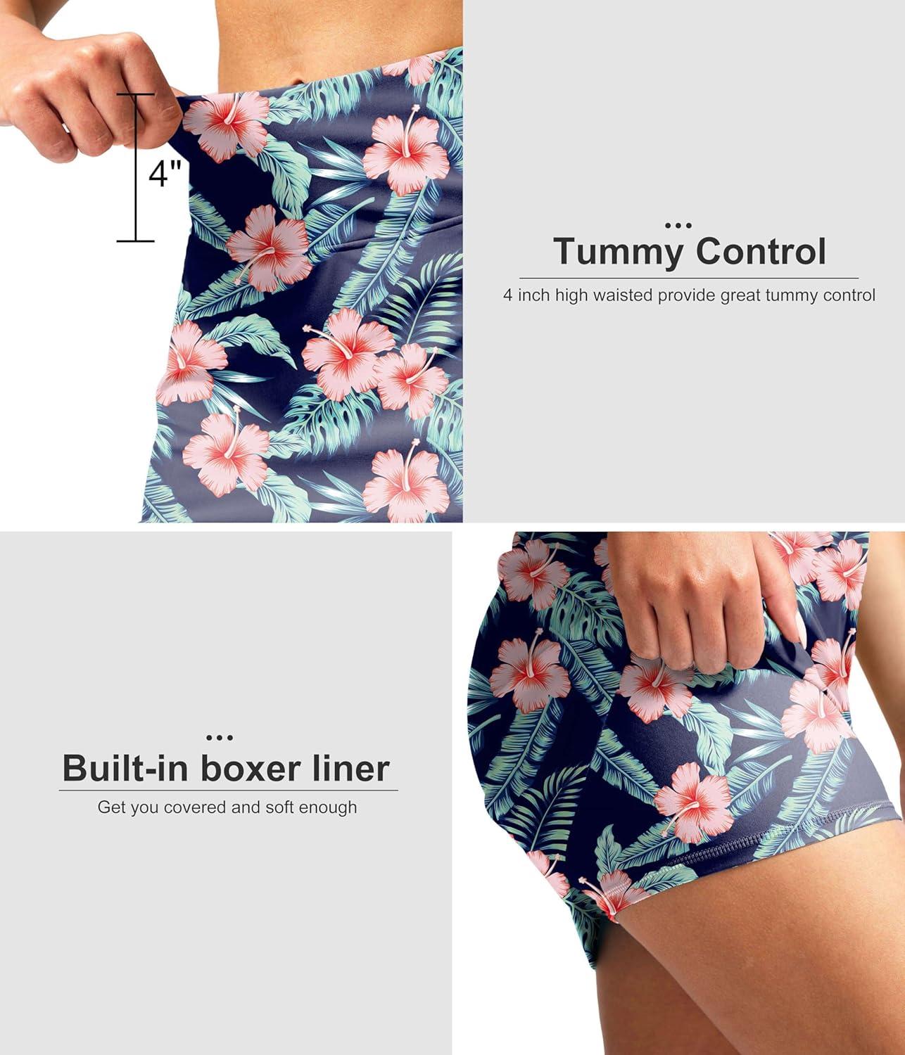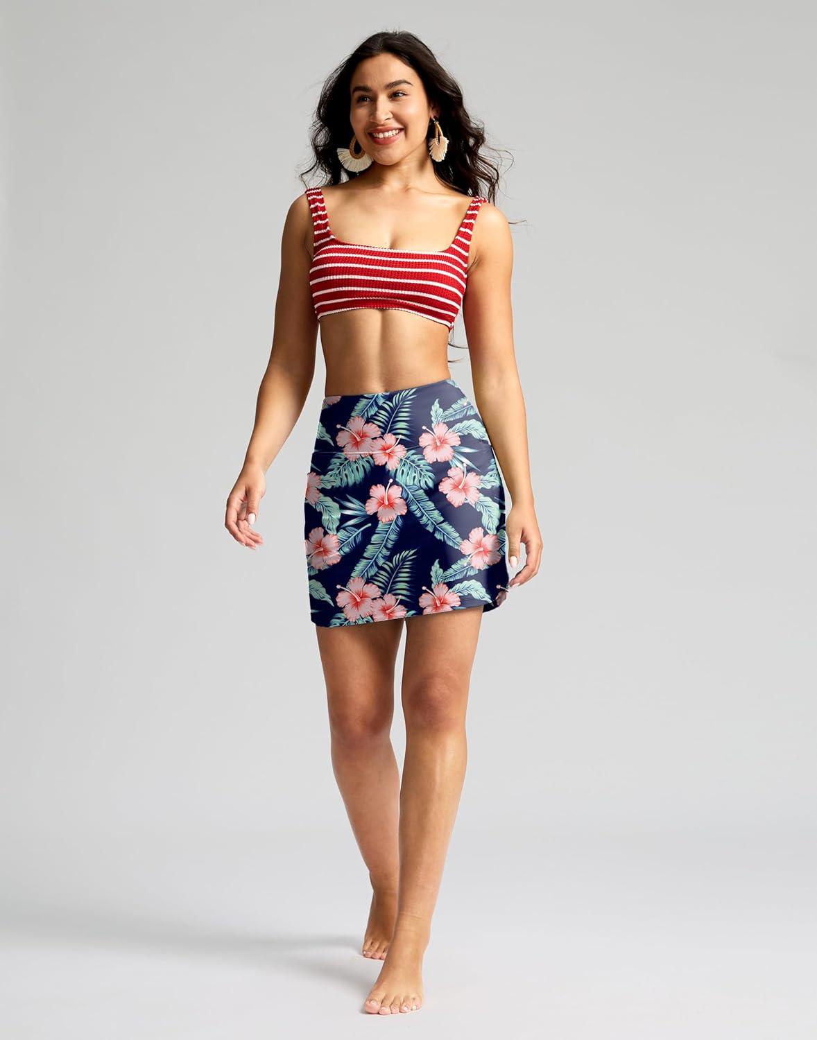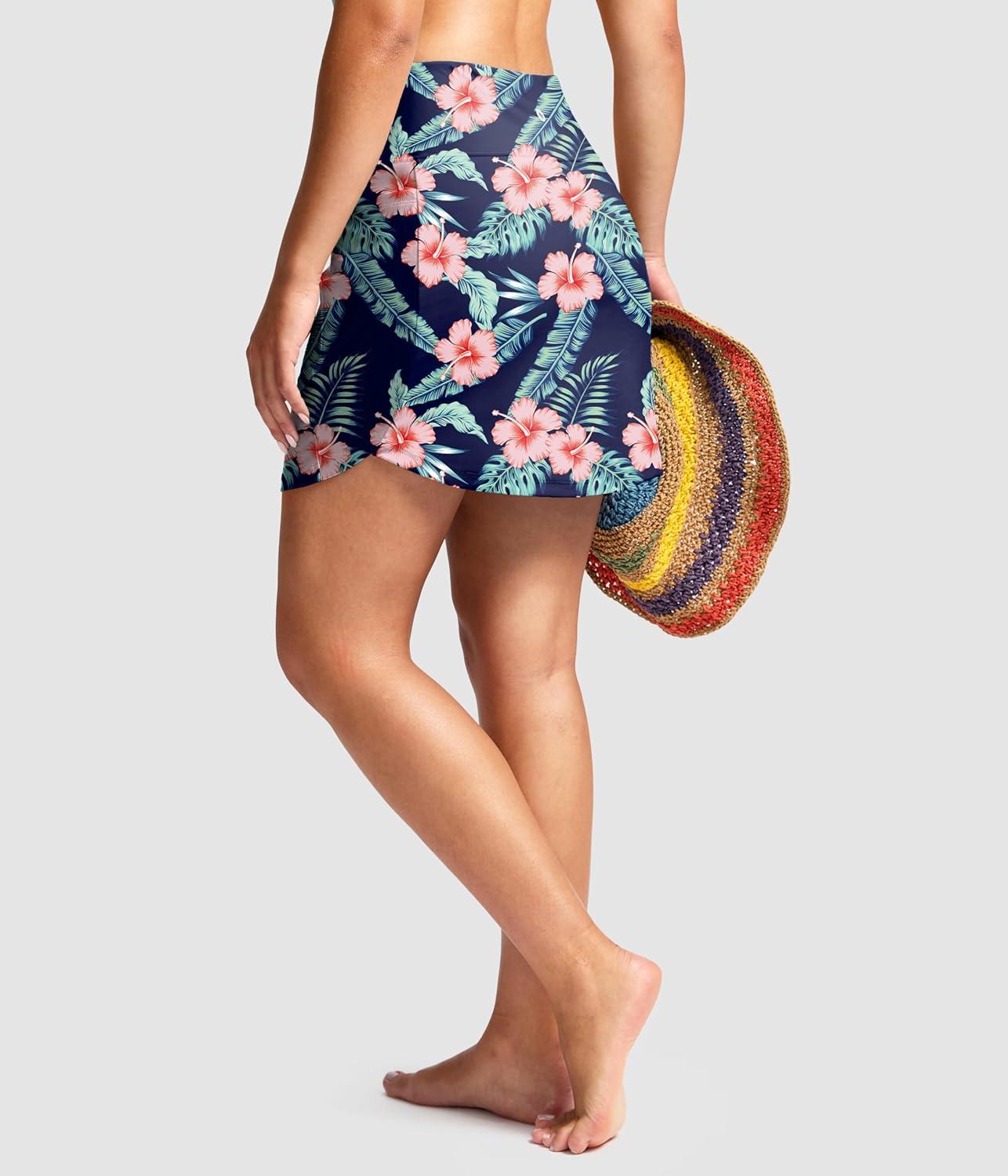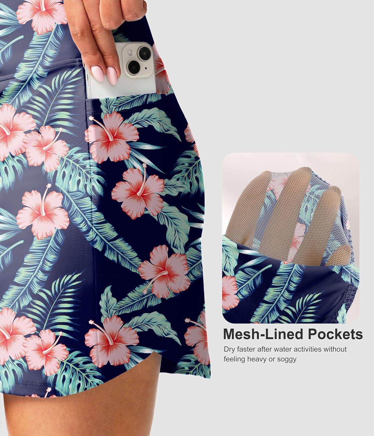 SANTINY Women’s 17” Long Swim Skirt with Pockets High Waisted Modest Tummy Control Swimsuit Skirt Bathing Suit Bottoms(Navy Flower)