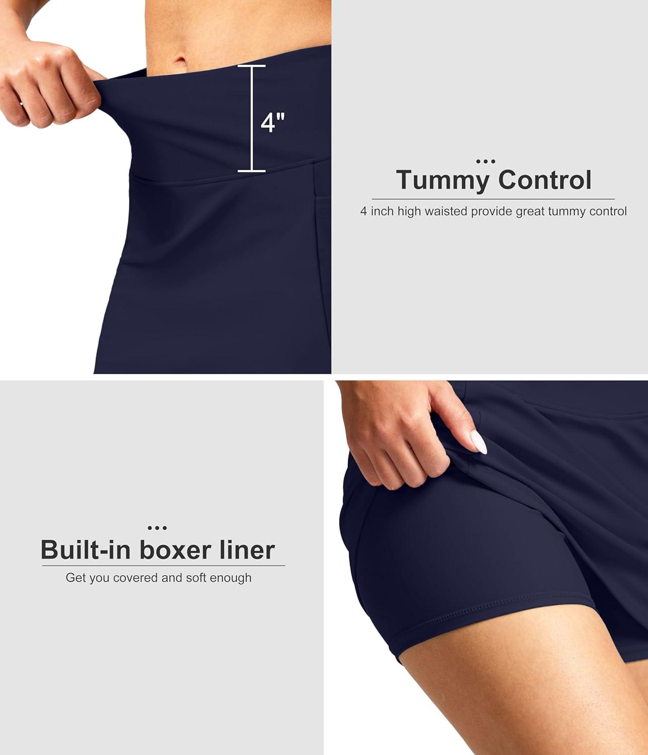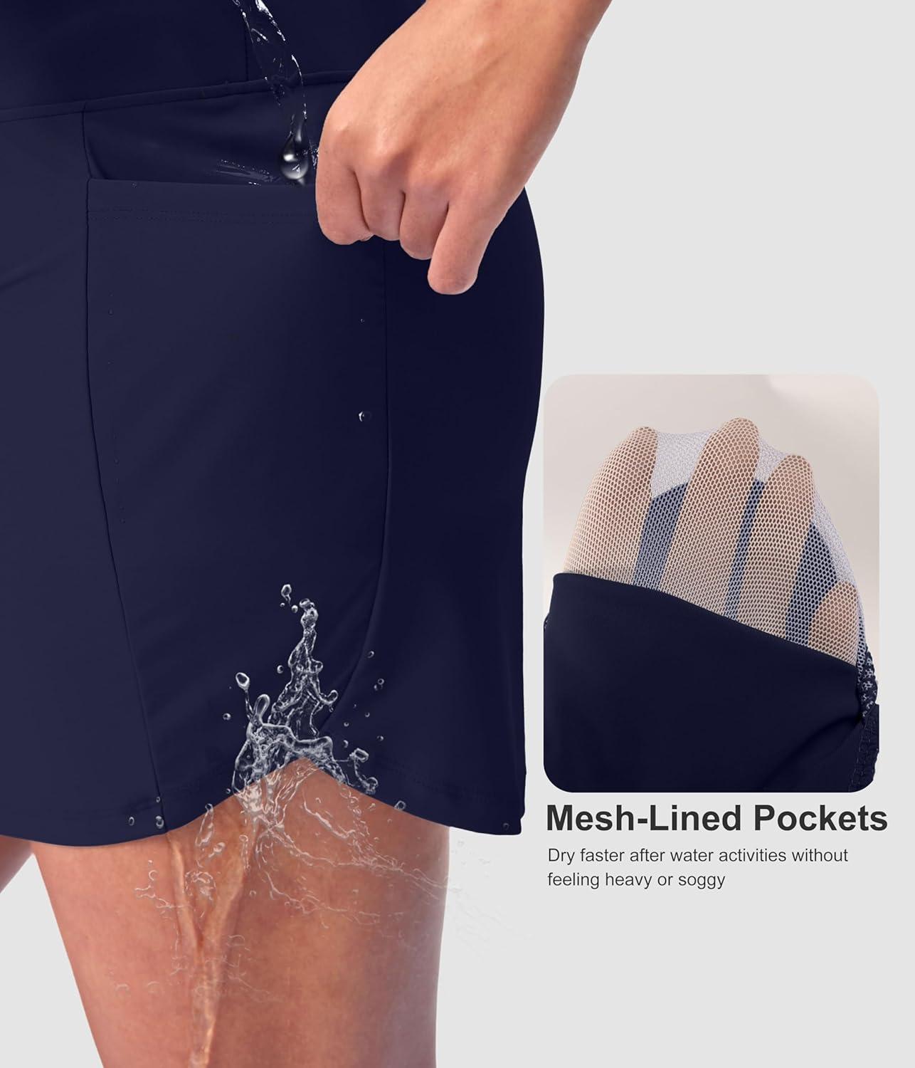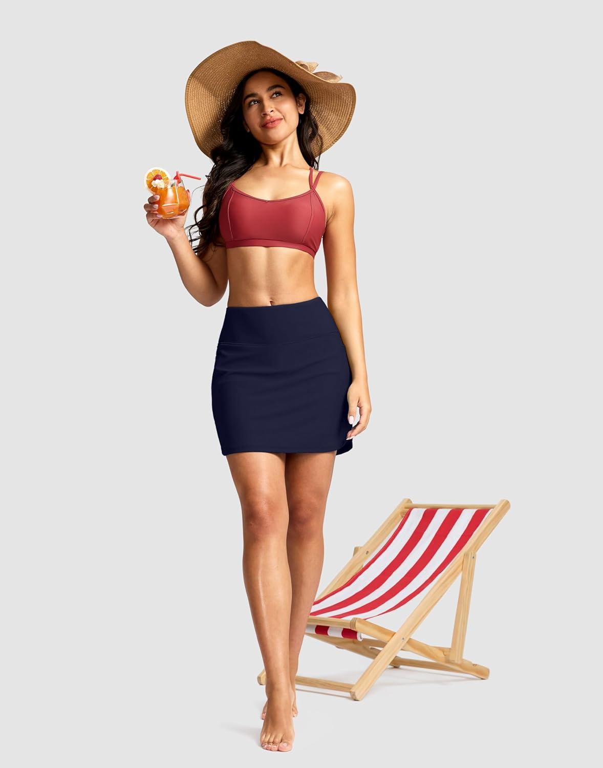 SANTINY Women’s 17” Long Swim Skirt with Pockets High Waisted Modest Tummy Control Swimsuit Skirt Bathing Suit Bottoms(Navy)