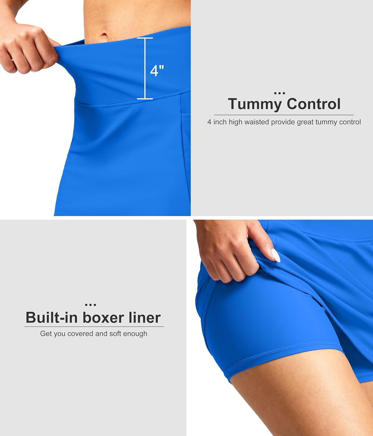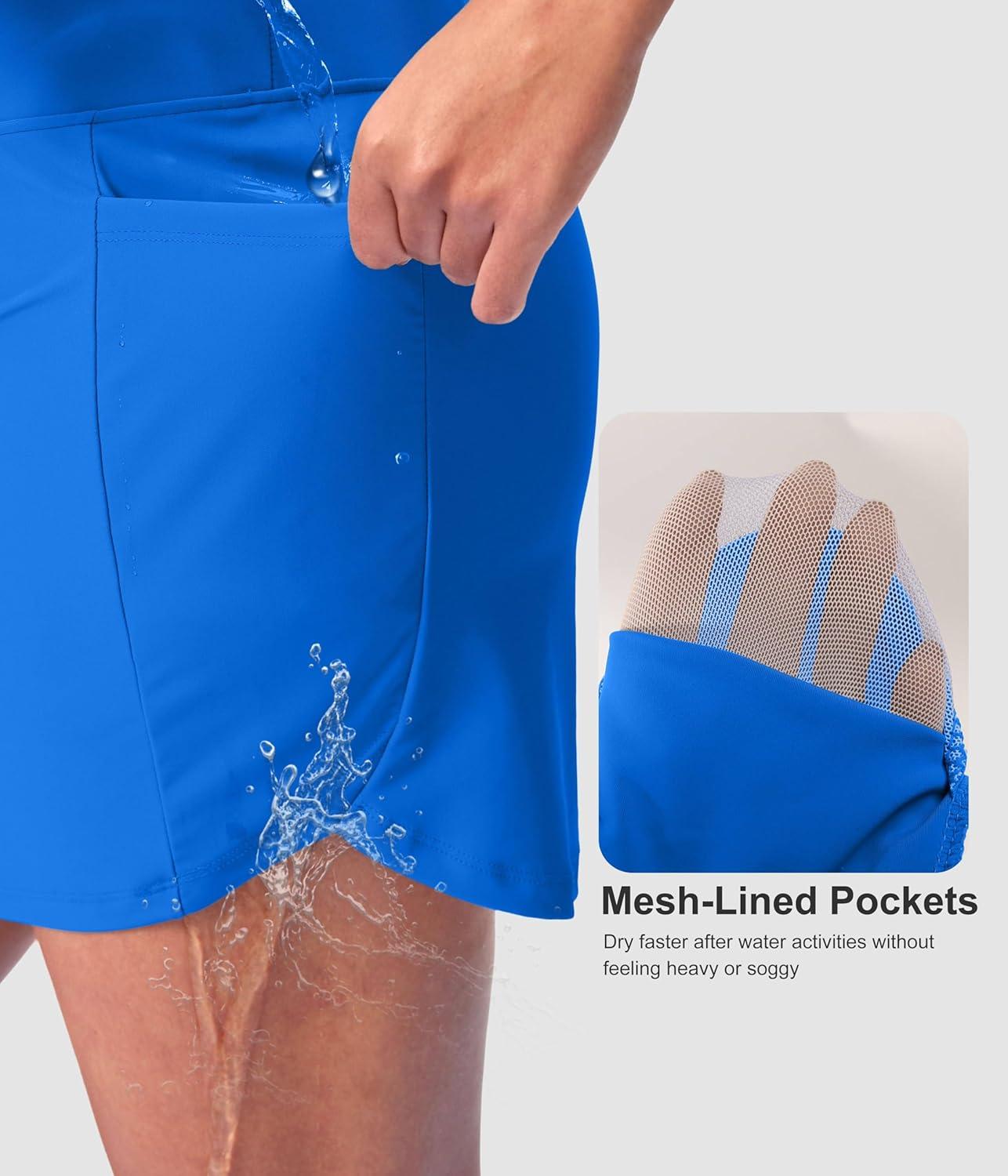 SANTINY Women’s 17” Long Swim Skirt with Pockets High Waisted Modest Tummy Control Swimsuit Skirt Bathing Suit Bottoms(Vivid Blue)