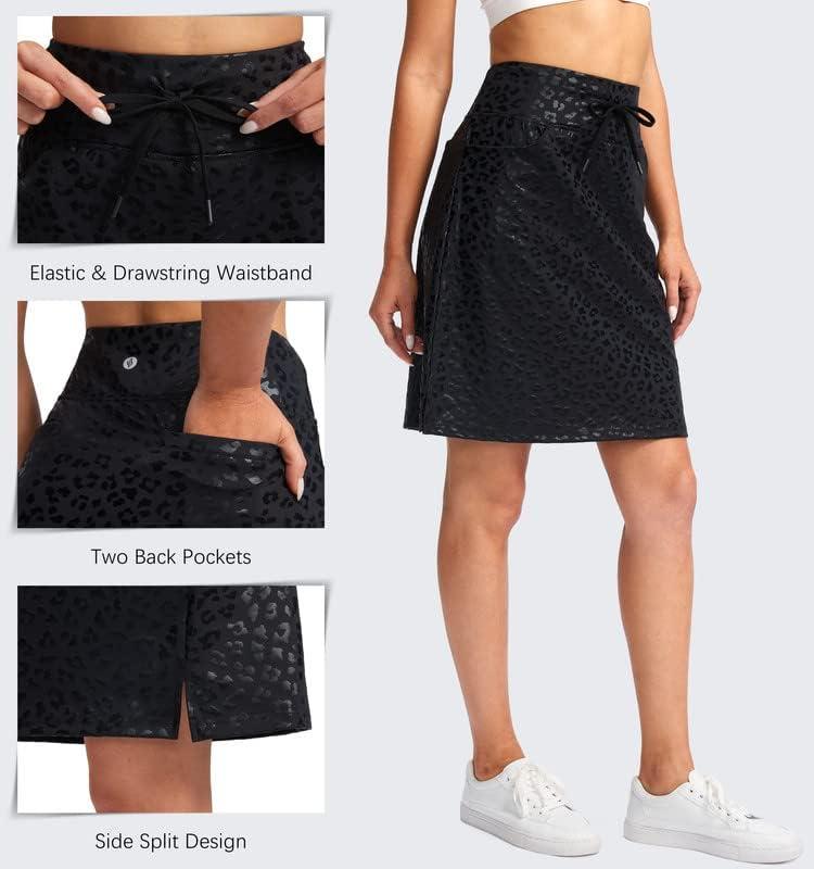 SANTINY Women’s 20” Knee Length Skorts Skirts 6 Pockets High Waisted Drawstring Long Athletic Tennis Golf Skirt Women(Black Leopard)
