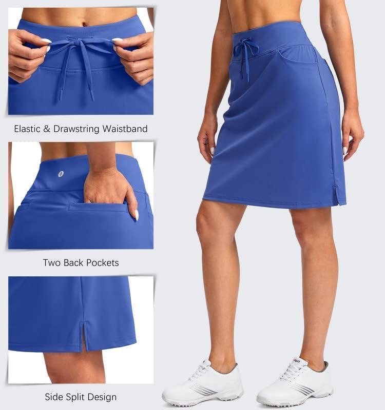 SANTINY Women’s 20” Knee Length Skorts Skirts 6 Pockets High Waisted Drawstring Long Athletic Tennis Golf Skirt Women(Blue)