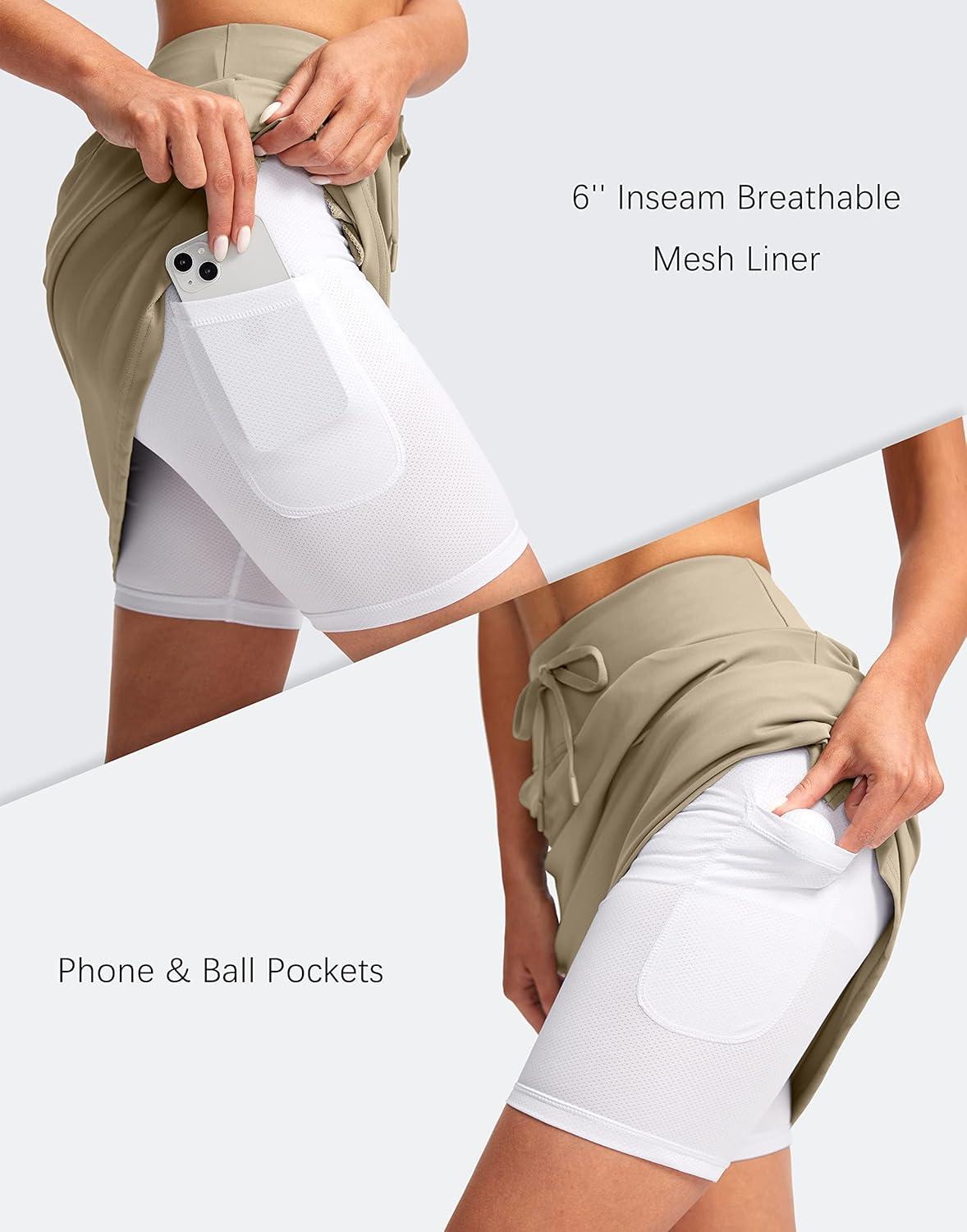 SANTINY Women’s 20” Knee Length Skorts Skirts 6 Pockets High Waisted Drawstring Long Athletic Tennis Golf Skirt Women(Dusty Khaki)