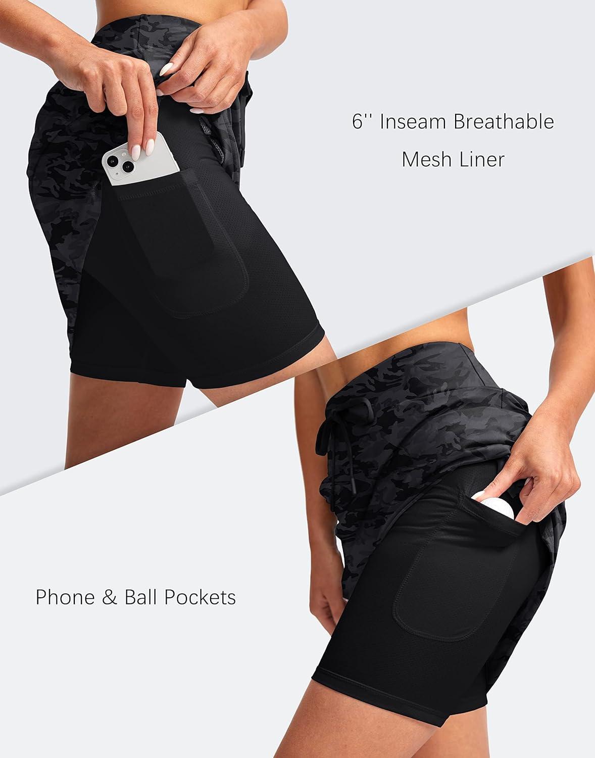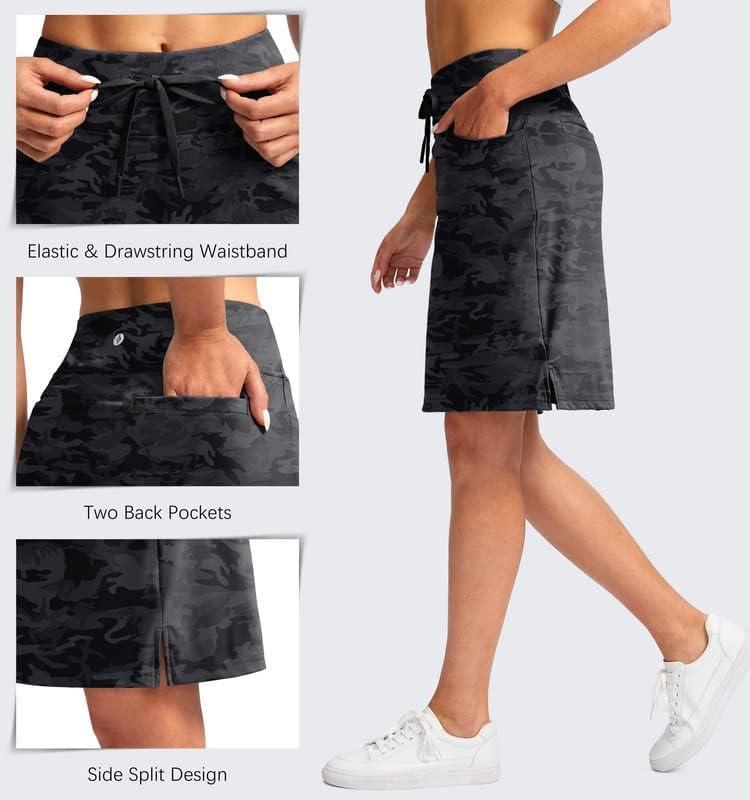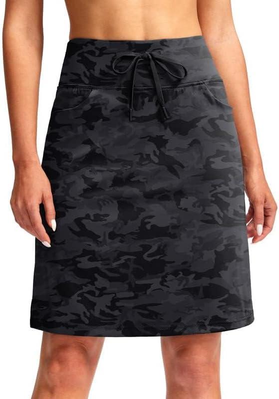 SANTINY Women’s 20” Knee Length Skorts Skirts 6 Pockets High Waisted Drawstring Long Athletic Tennis Golf Skirt Women(Grey Camo)