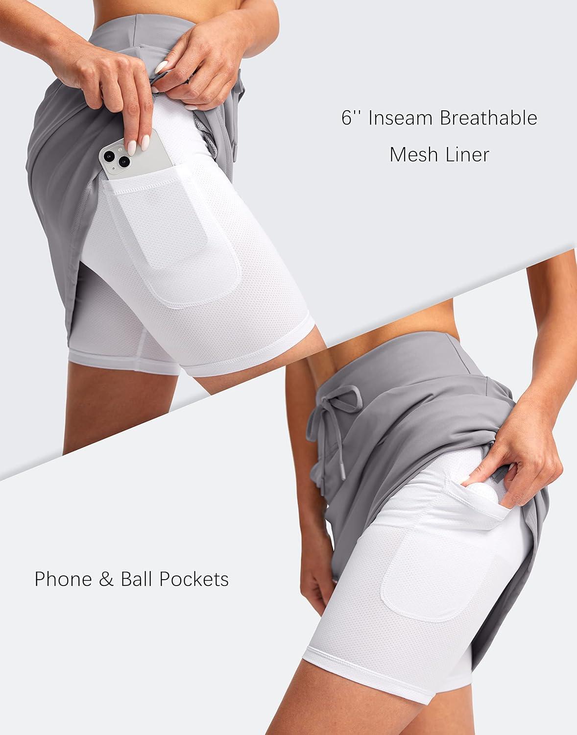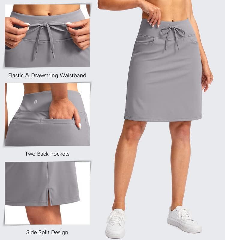 SANTINY Women’s 20” Knee Length Skorts Skirts 6 Pockets High Waisted Drawstring Long Athletic Tennis Golf Skirt Women(Light Grey)