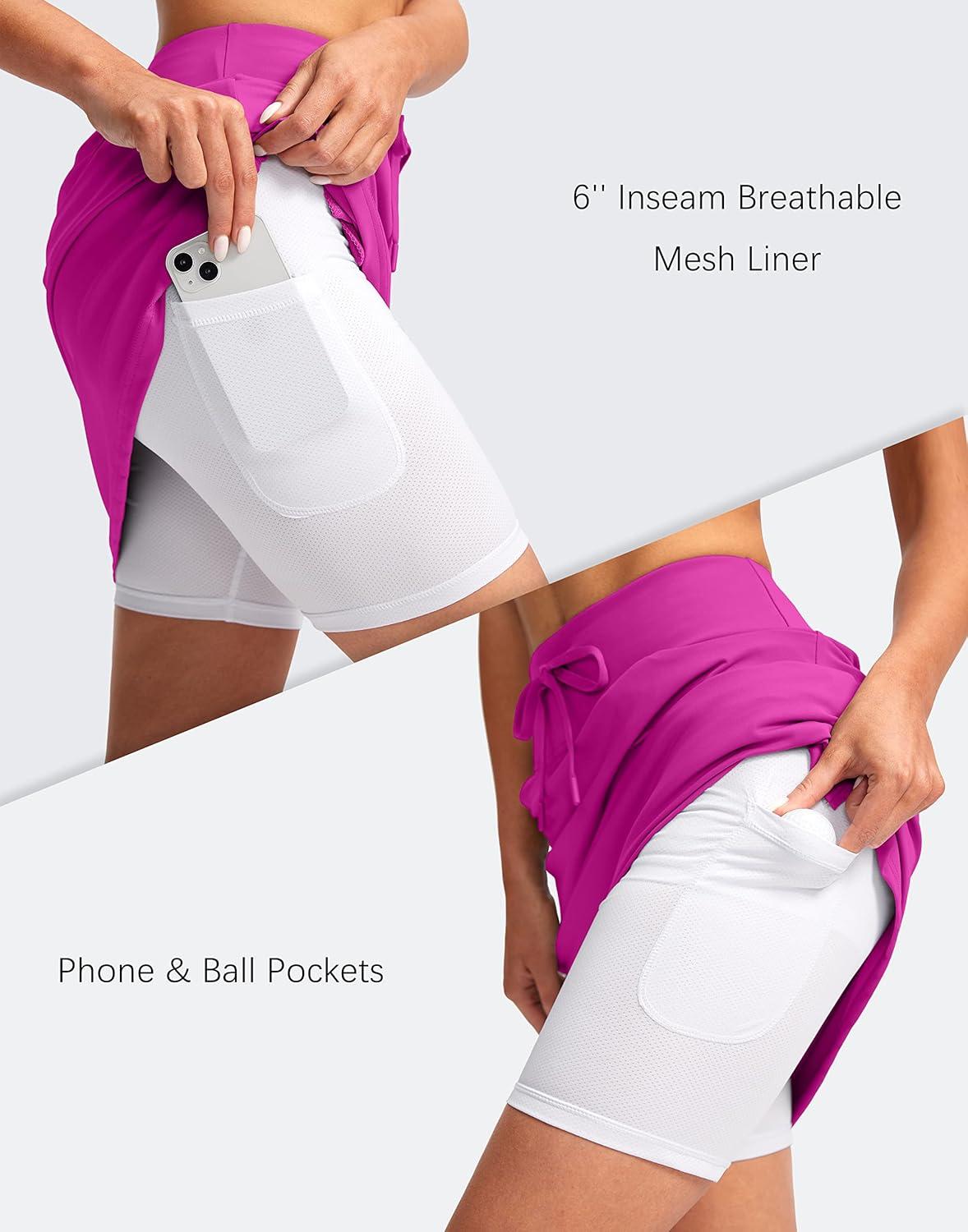 SANTINY Women’s 20” Knee Length Skorts Skirts 6 Pockets High Waisted Drawstring Long Athletic Tennis Golf Skirt Women(Rose)
