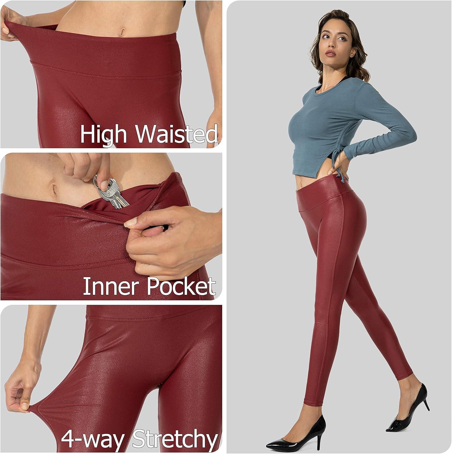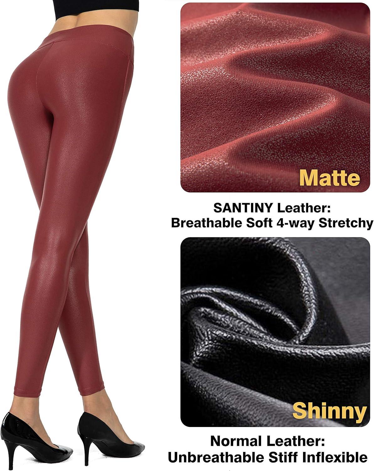 SANTINY Women’s 25.5”/27” Faux Leather Leggings Pants Stretch High Waisted Tights for Women(Red)