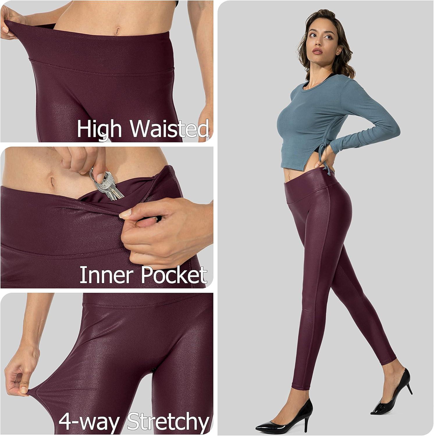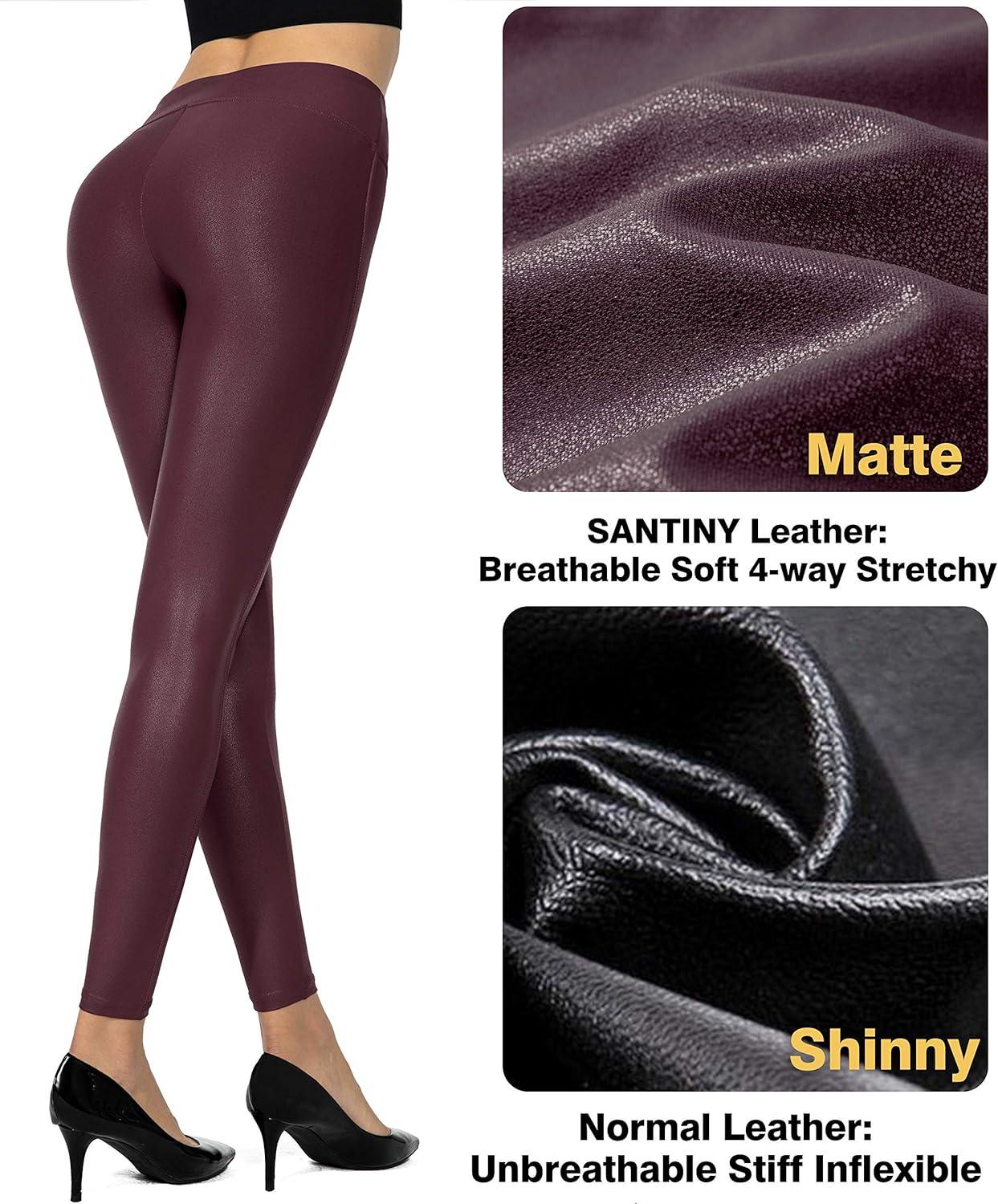 SANTINY Women’s 25.5”/27” Faux Leather Leggings Pants Stretch High Waisted Tights for Women(Wine Red)