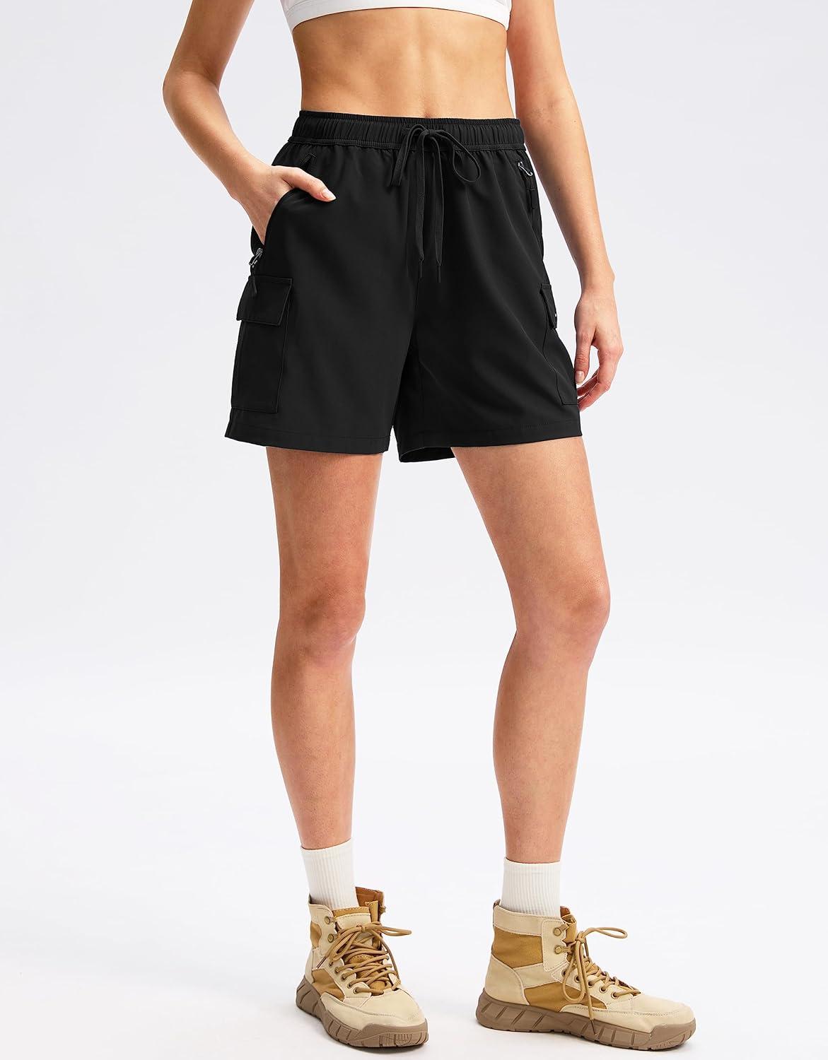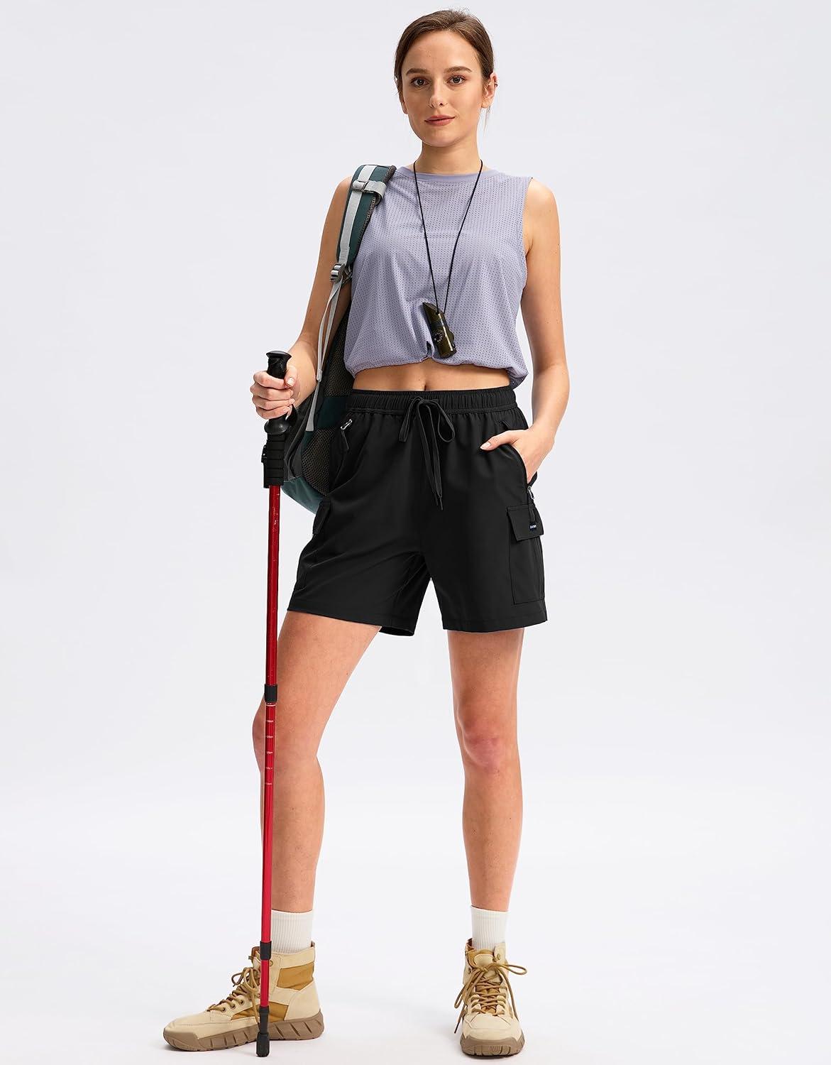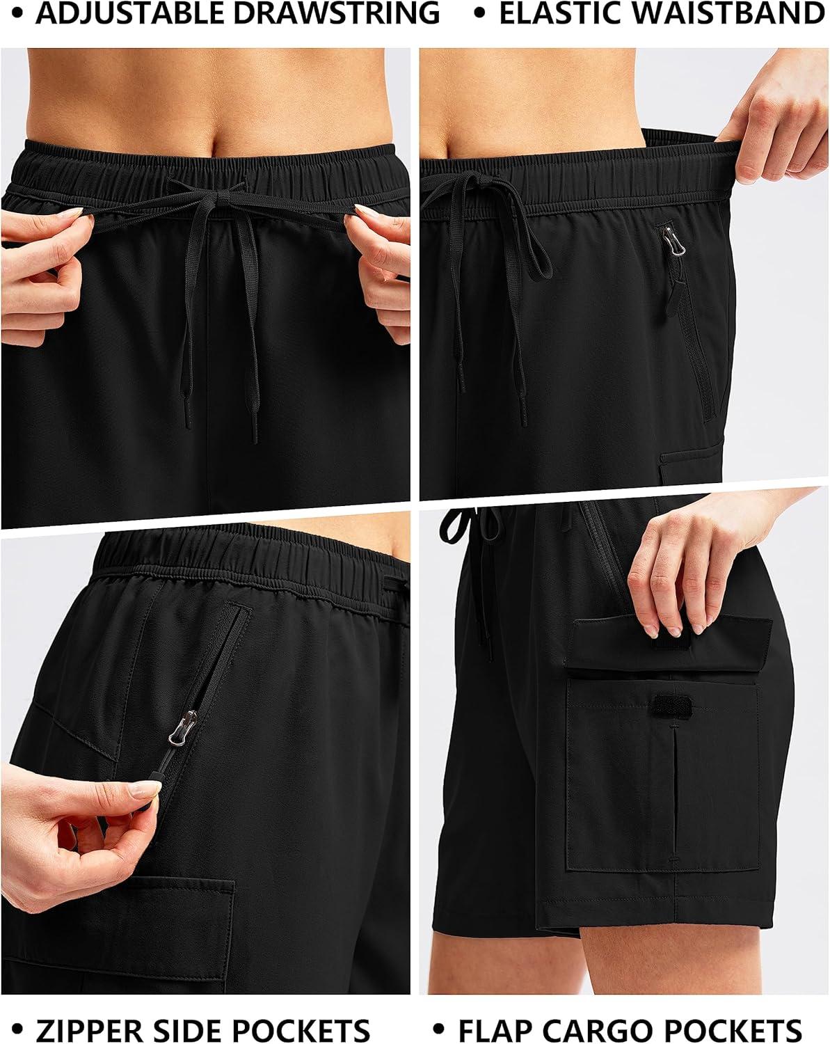 SANTINY Women’s 5”/ 7”/9” Hiking Cargo Shorts Quick Dry Lightweight Summer Shorts for Women Athletic Golf Zipper Pockets(Black)