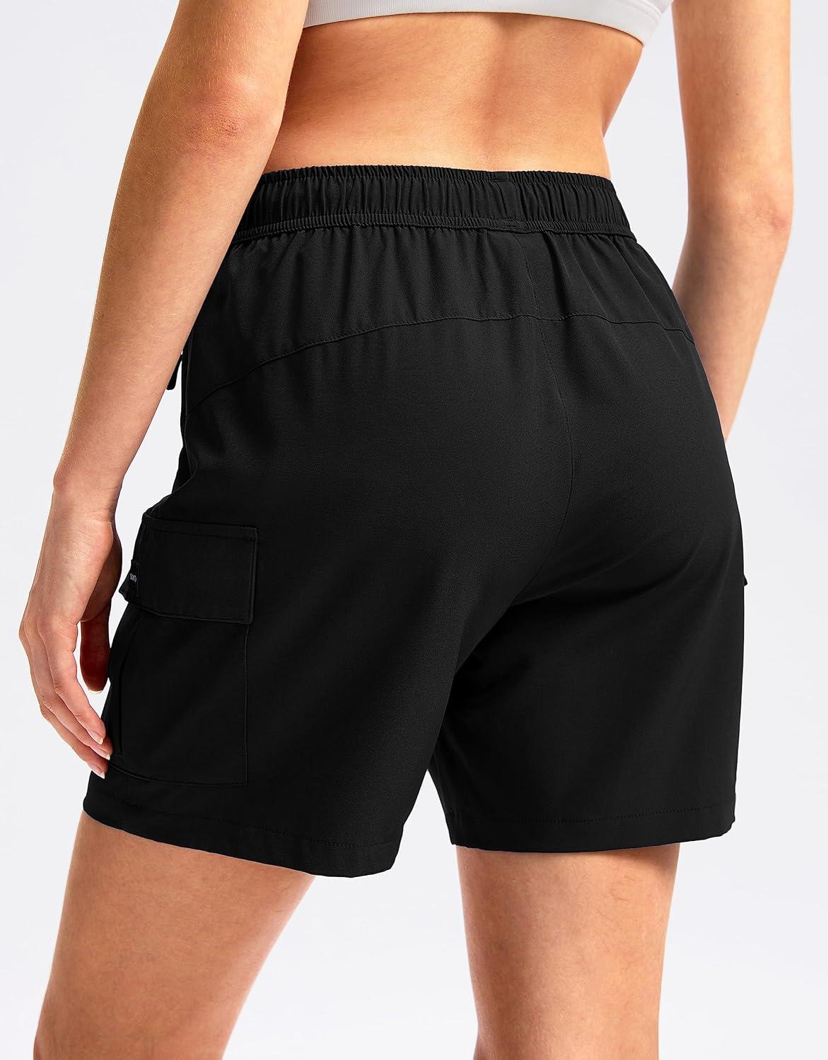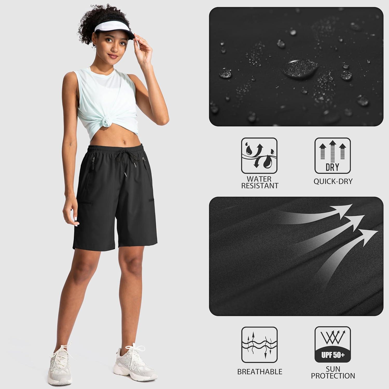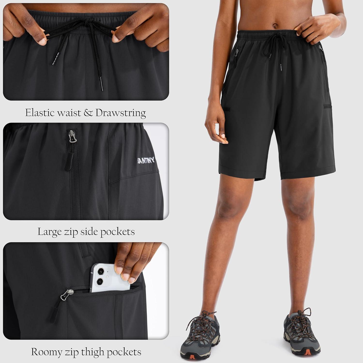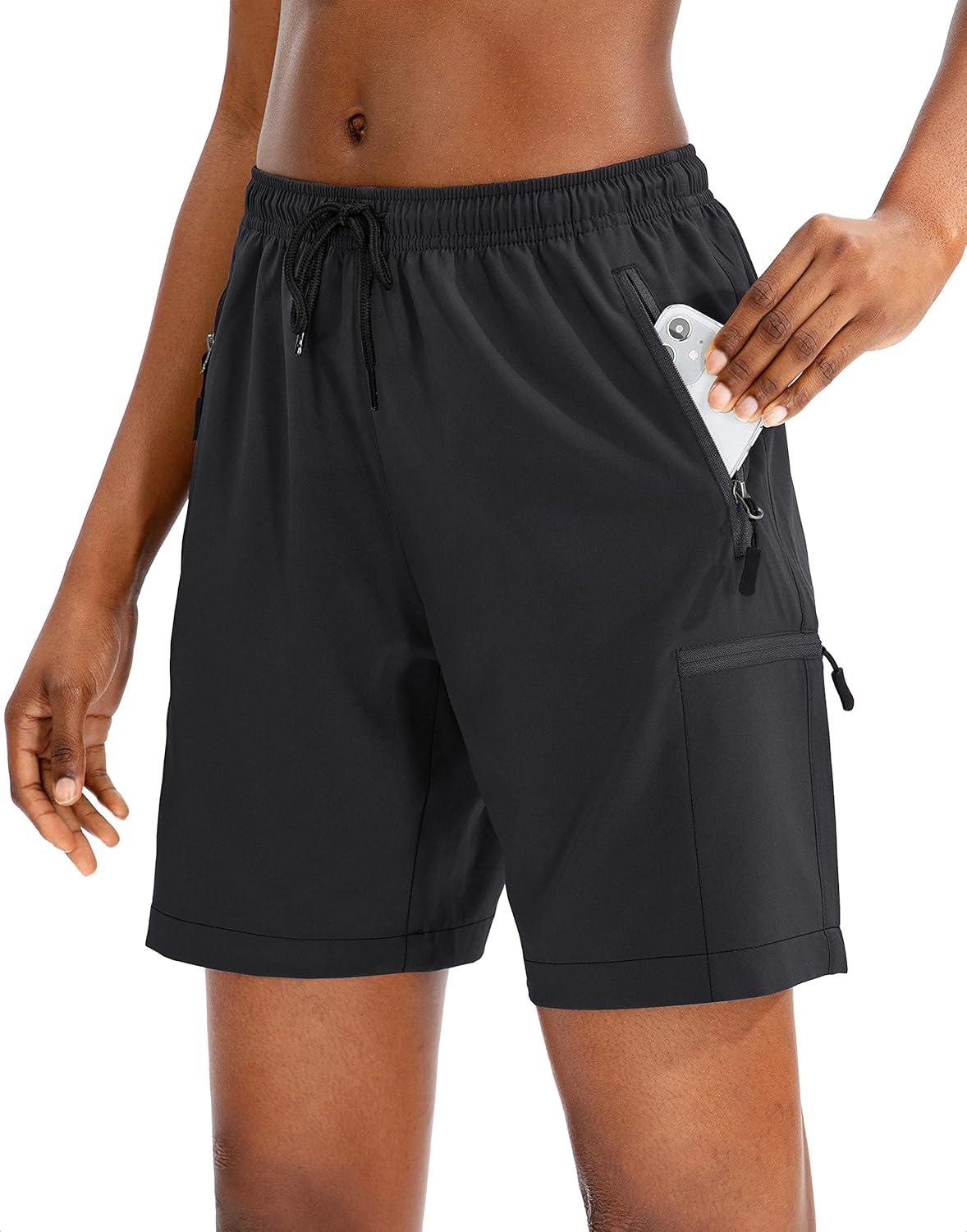 SANTINY Women’s 5”/ 7”/9” Hiking Cargo Shorts Quick Dry Lightweight Summer Shorts for Women Athletic Golf Zipper Pockets(Black)