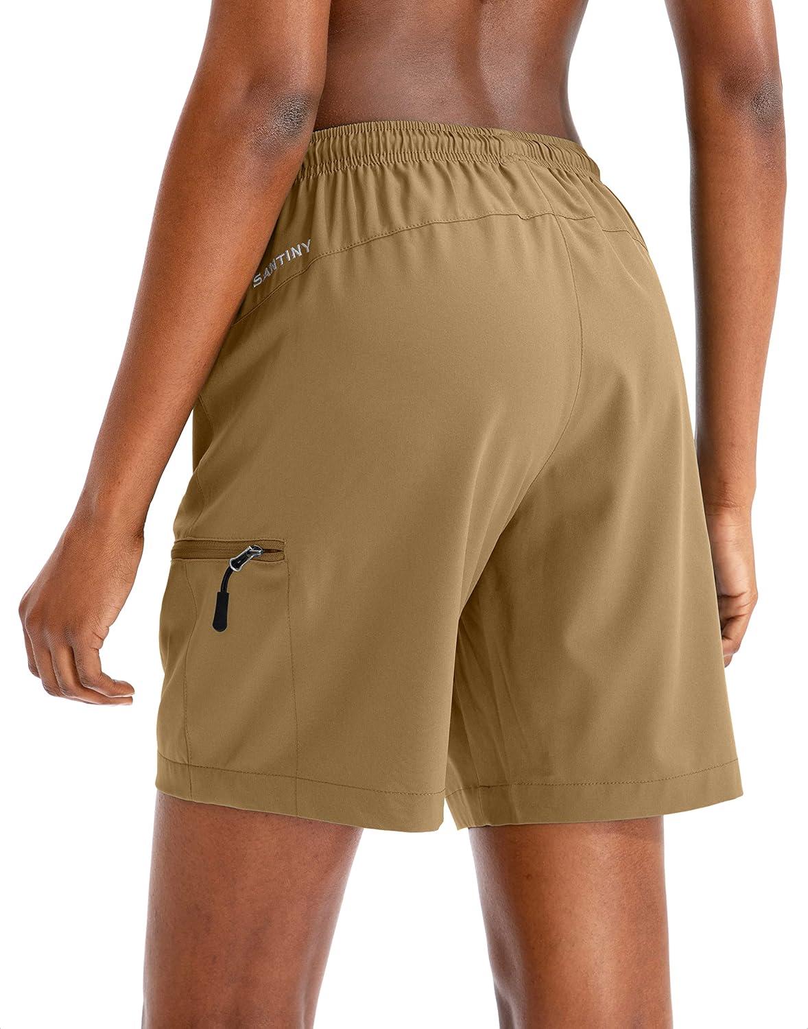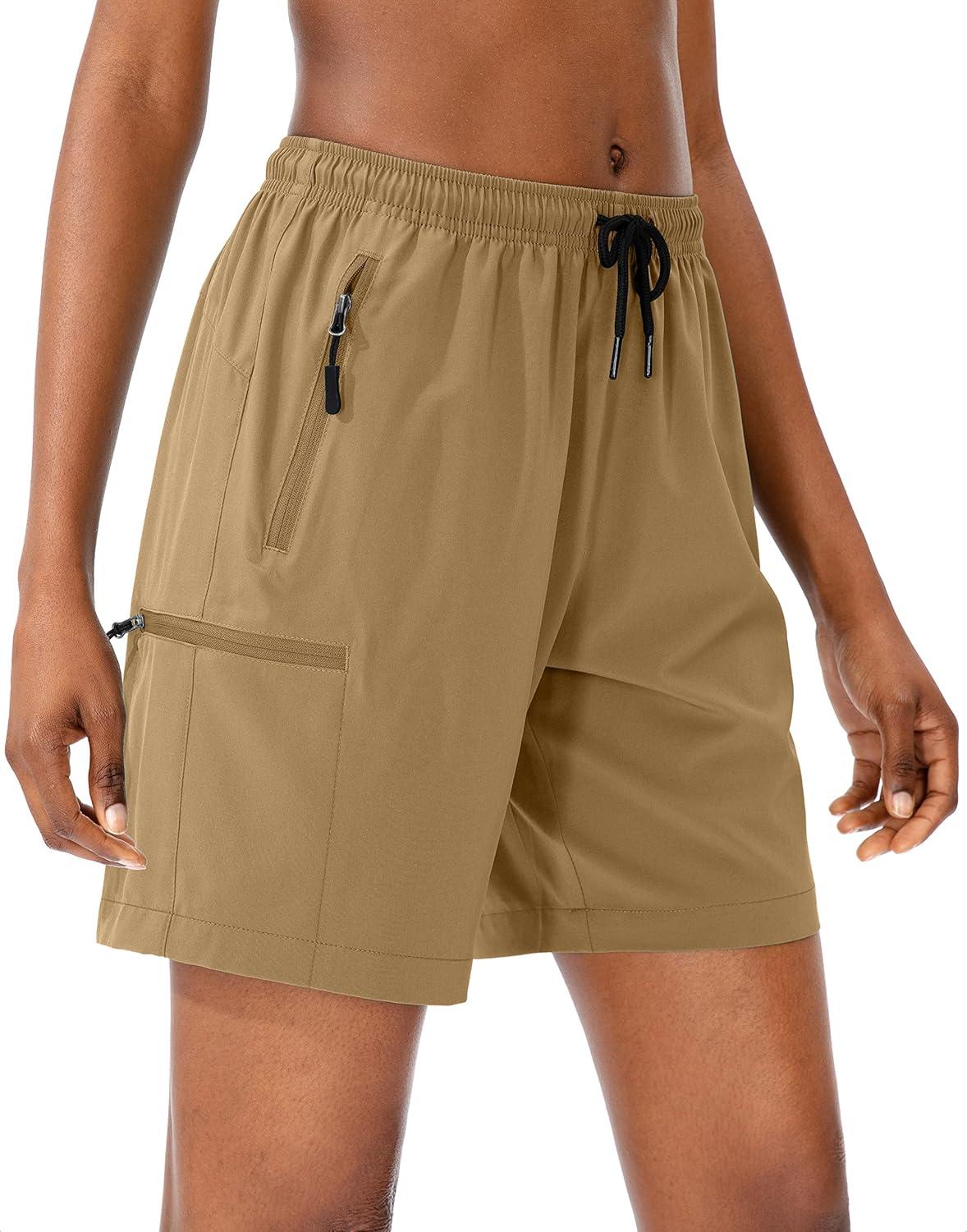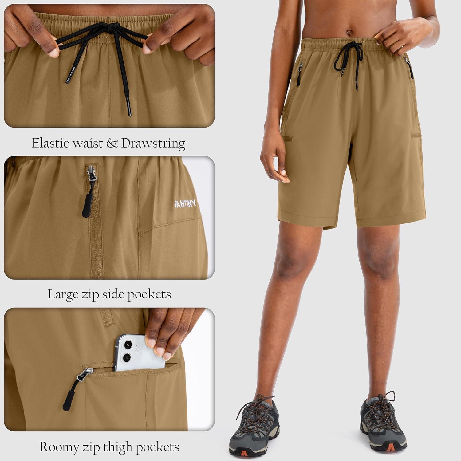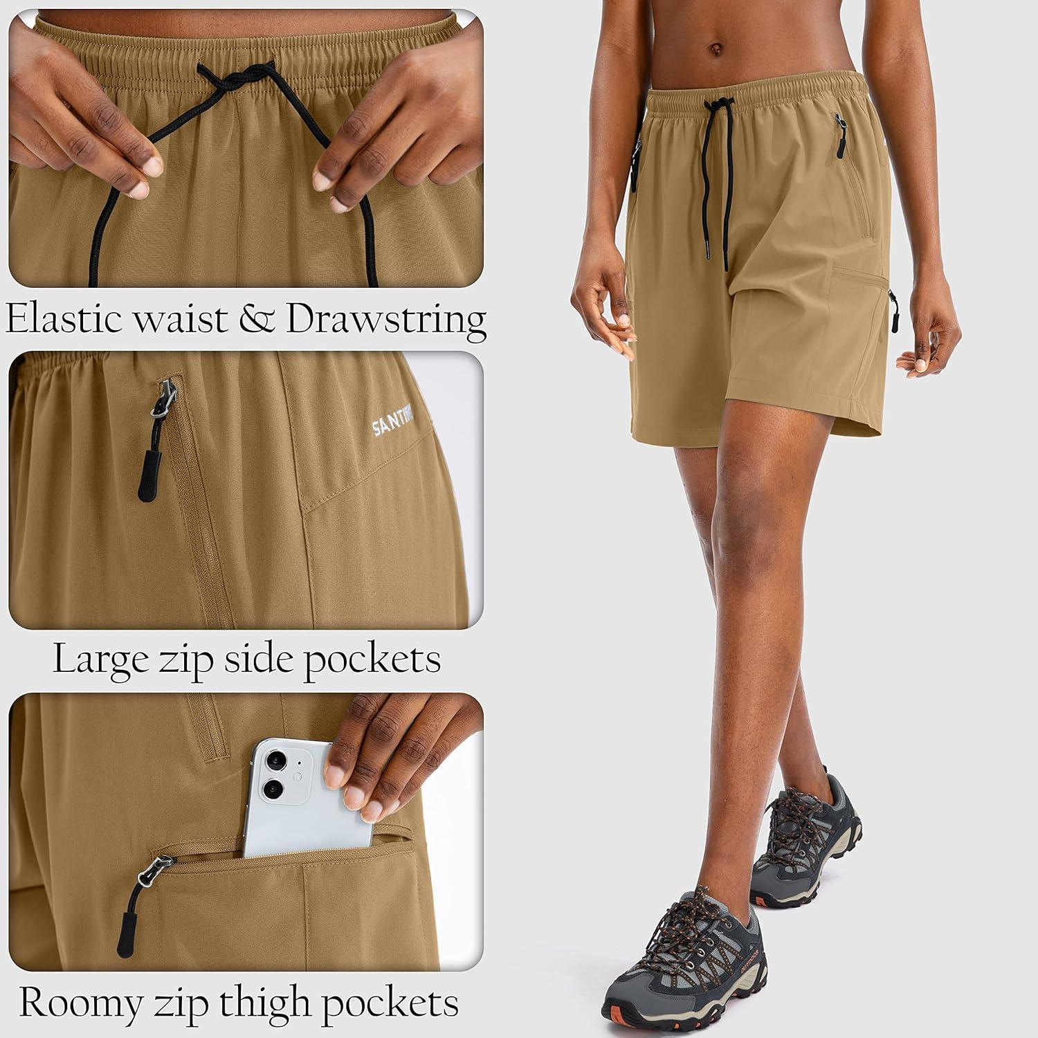 SANTINY Women’s 5”/ 7”/9” Hiking Cargo Shorts Quick Dry Lightweight Summer Shorts for Women Athletic Golf Zipper Pockets(Dark Khaki)