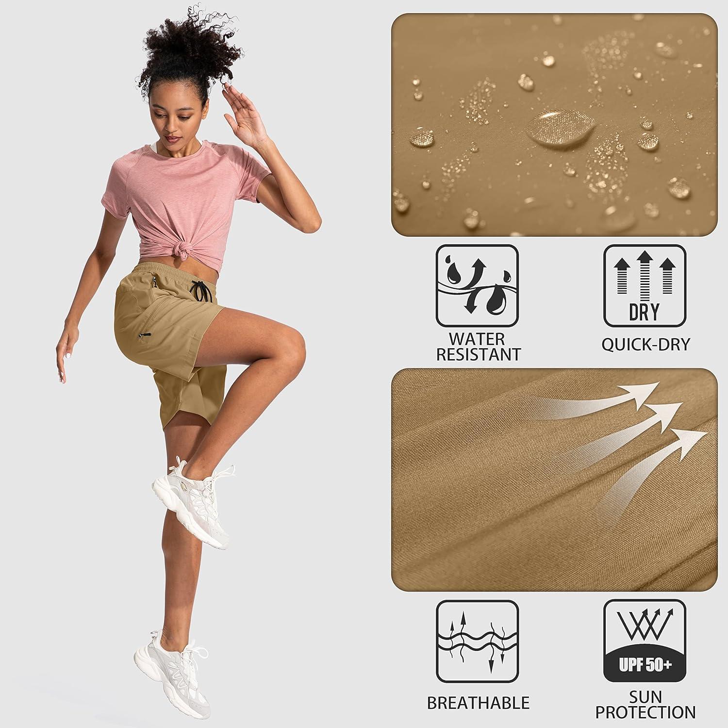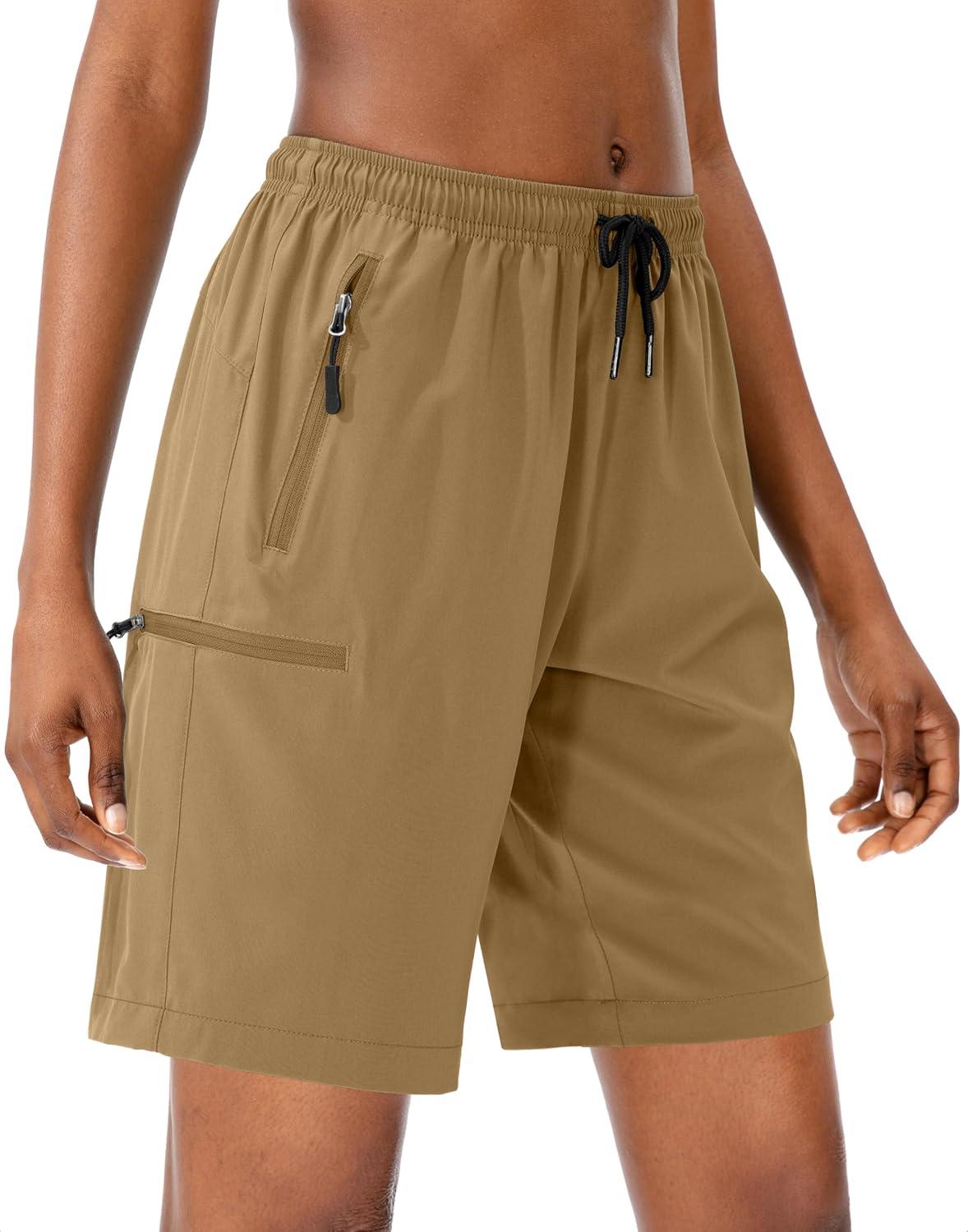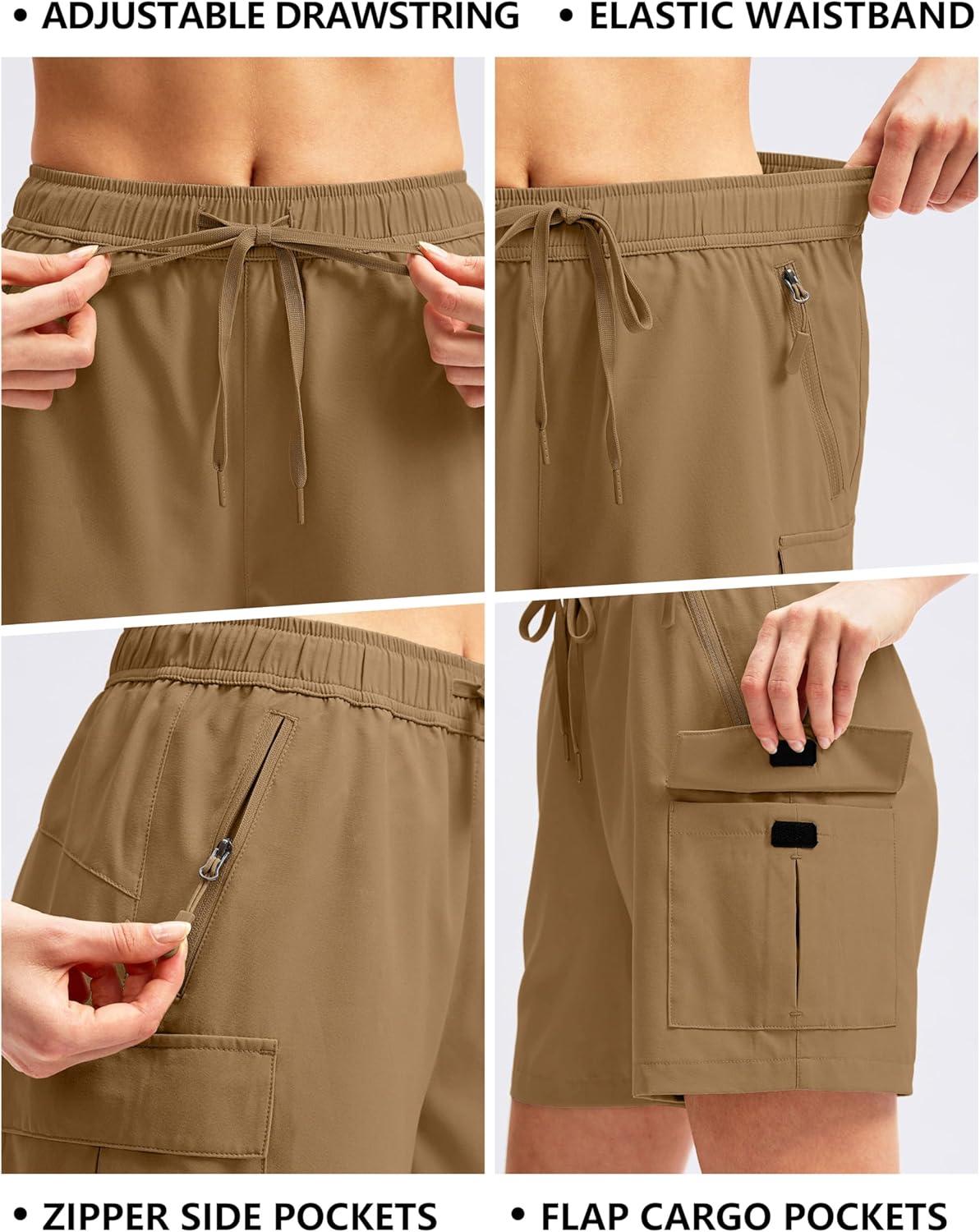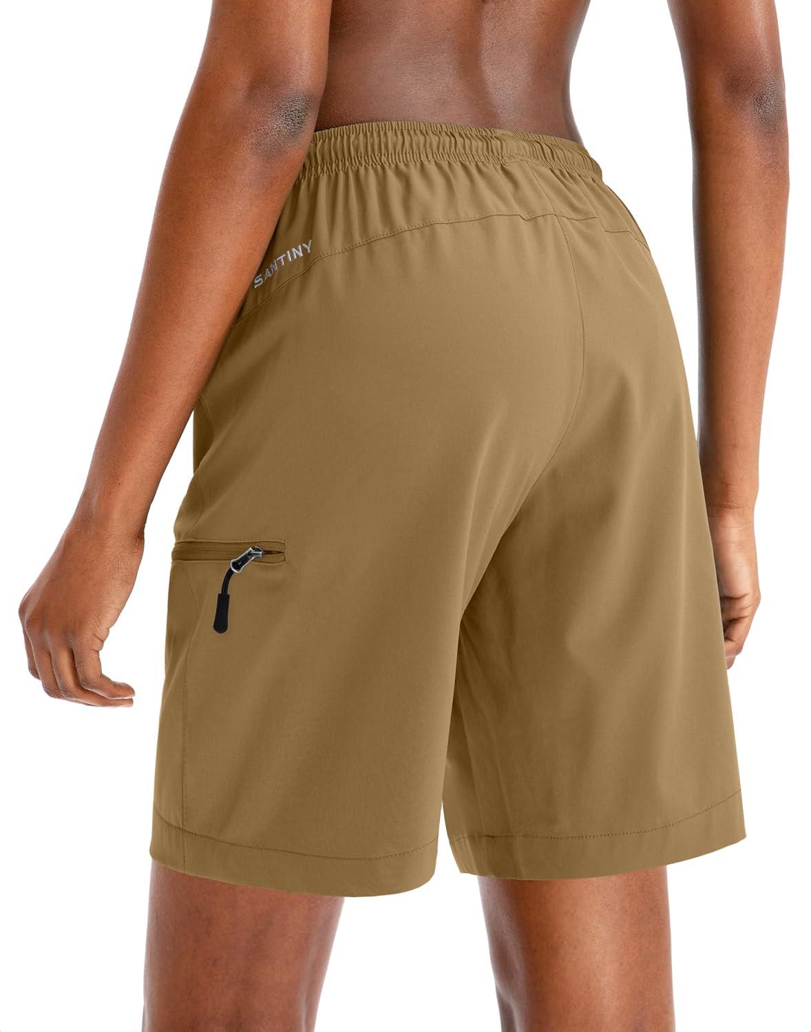 SANTINY Women’s 5”/ 7”/9” Hiking Cargo Shorts Quick Dry Lightweight Summer Shorts for Women Athletic Golf Zipper Pockets(Dark Khaki)