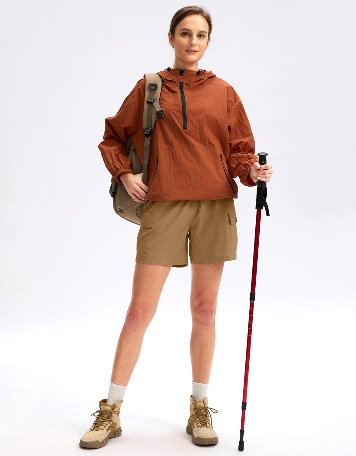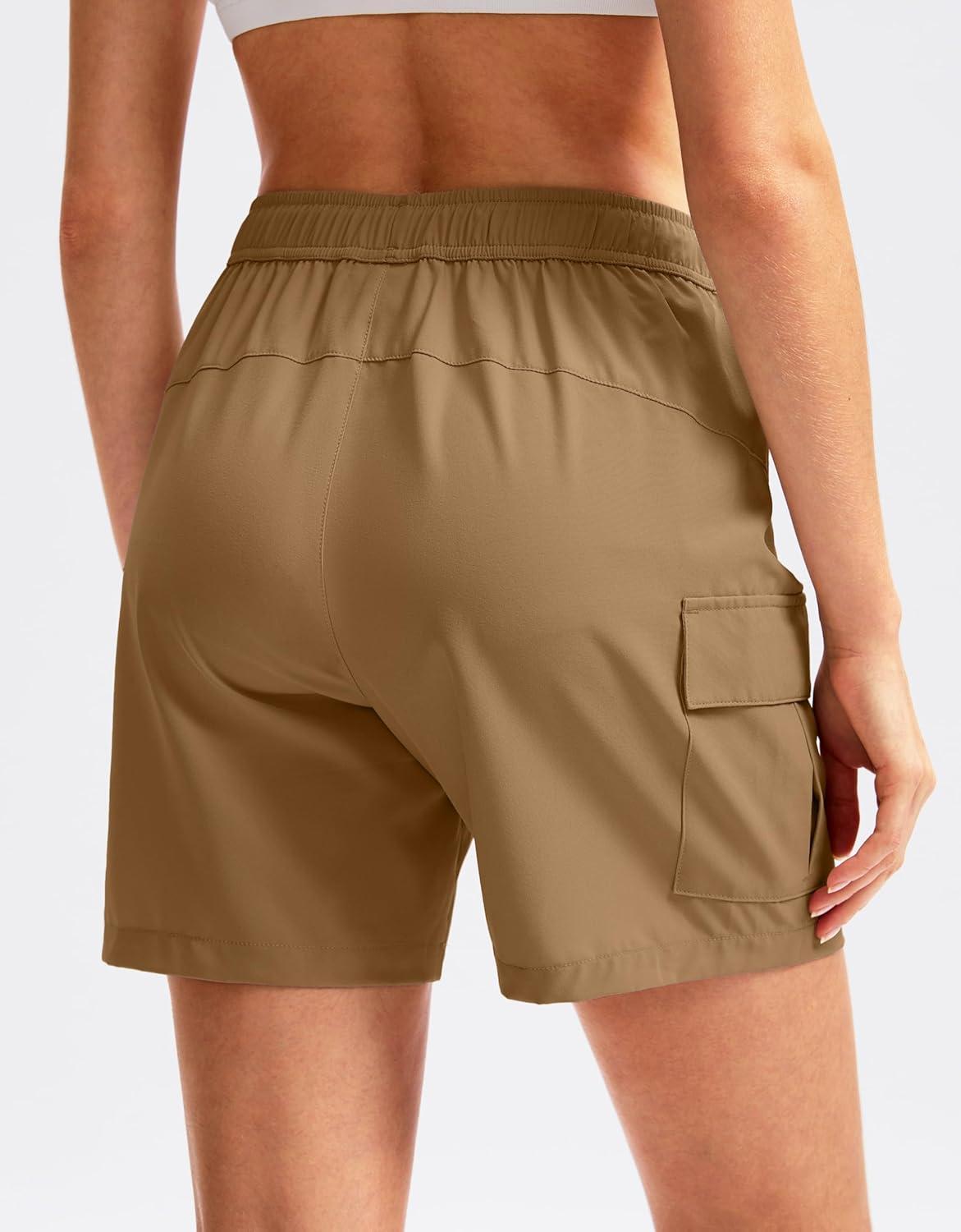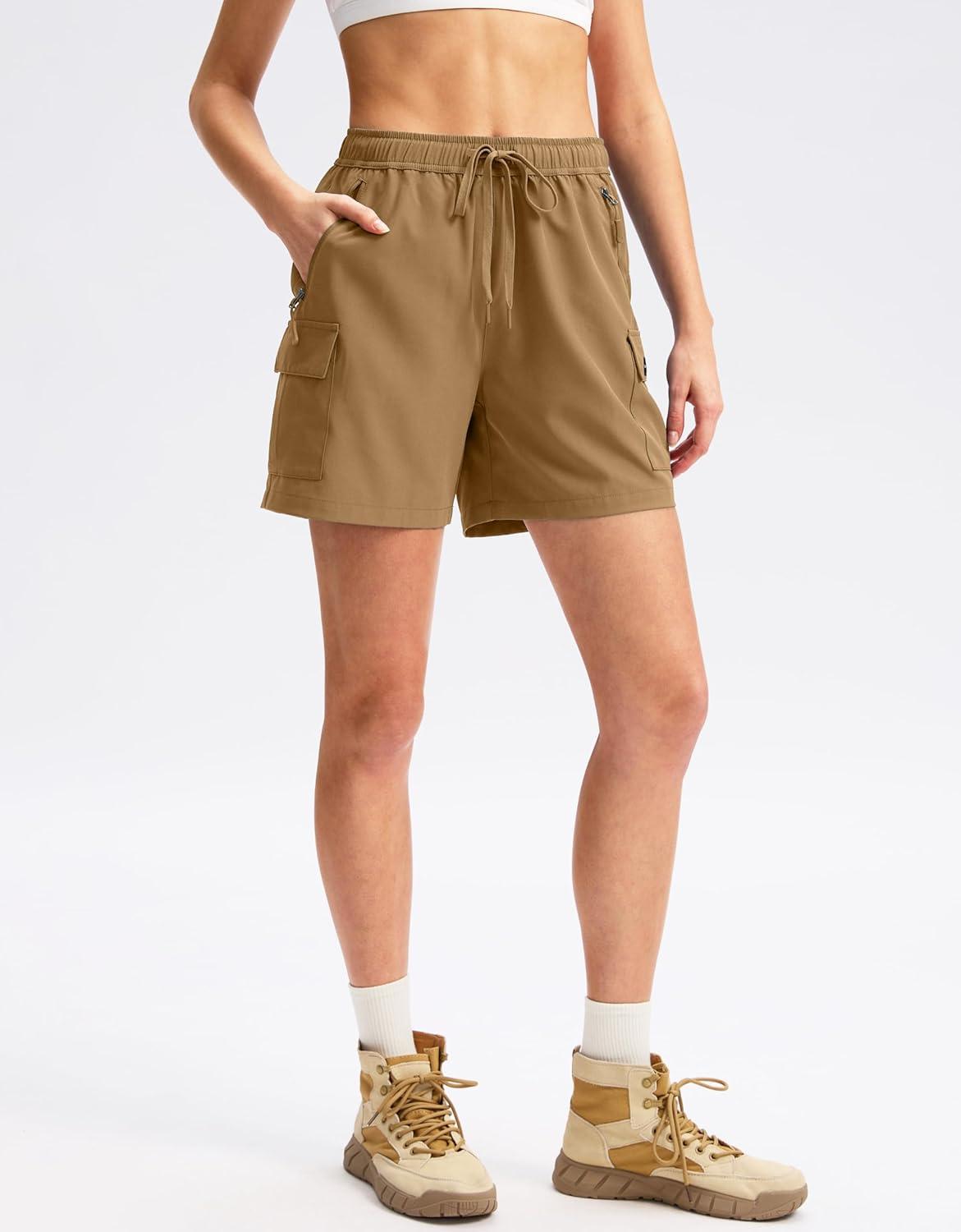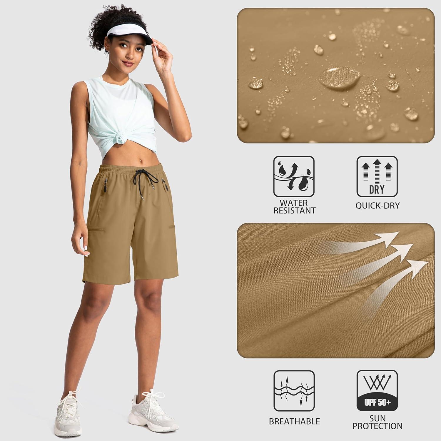 SANTINY Women’s 5”/ 7”/9” Hiking Cargo Shorts Quick Dry Lightweight Summer Shorts for Women Athletic Golf Zipper Pockets(Dark Khaki)