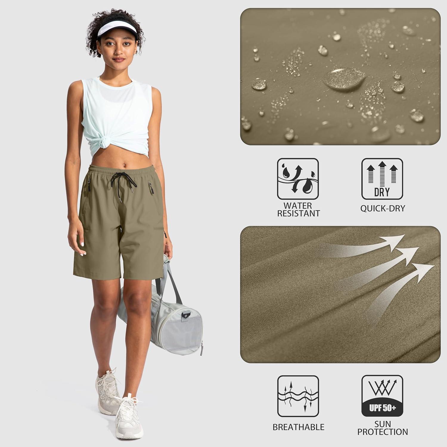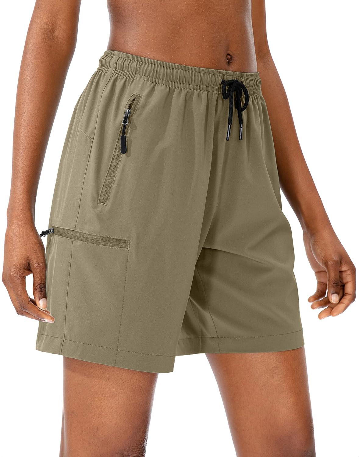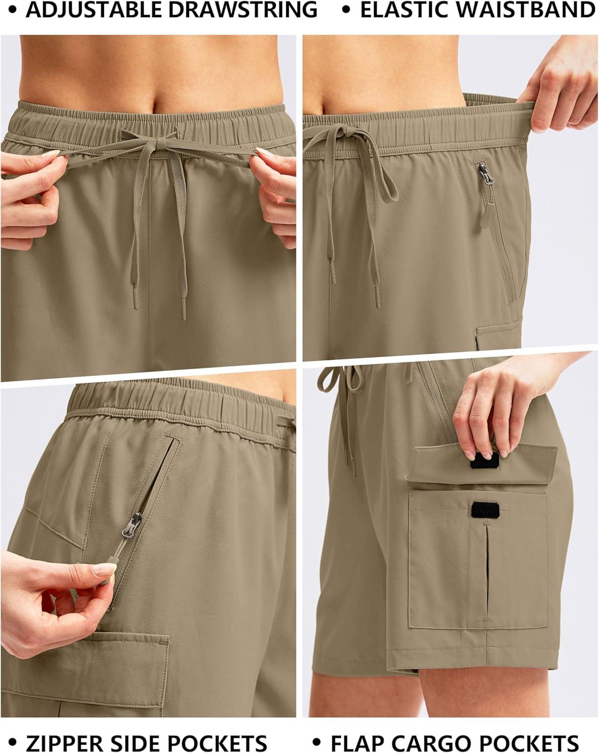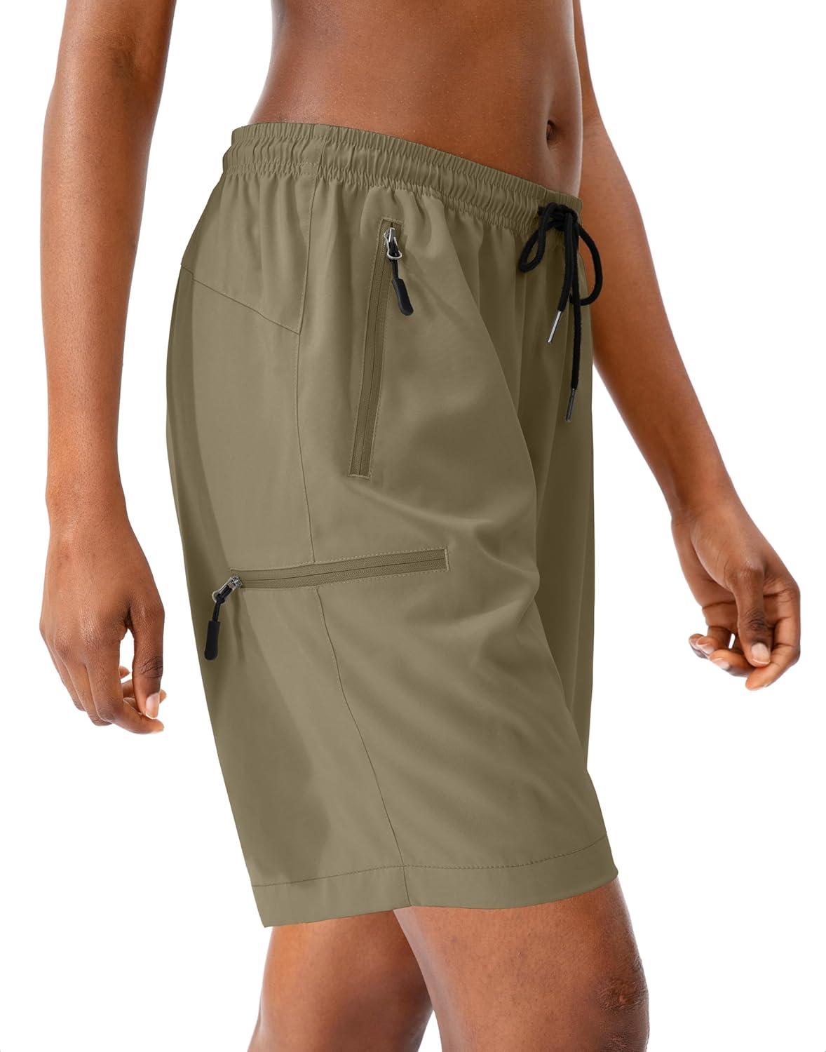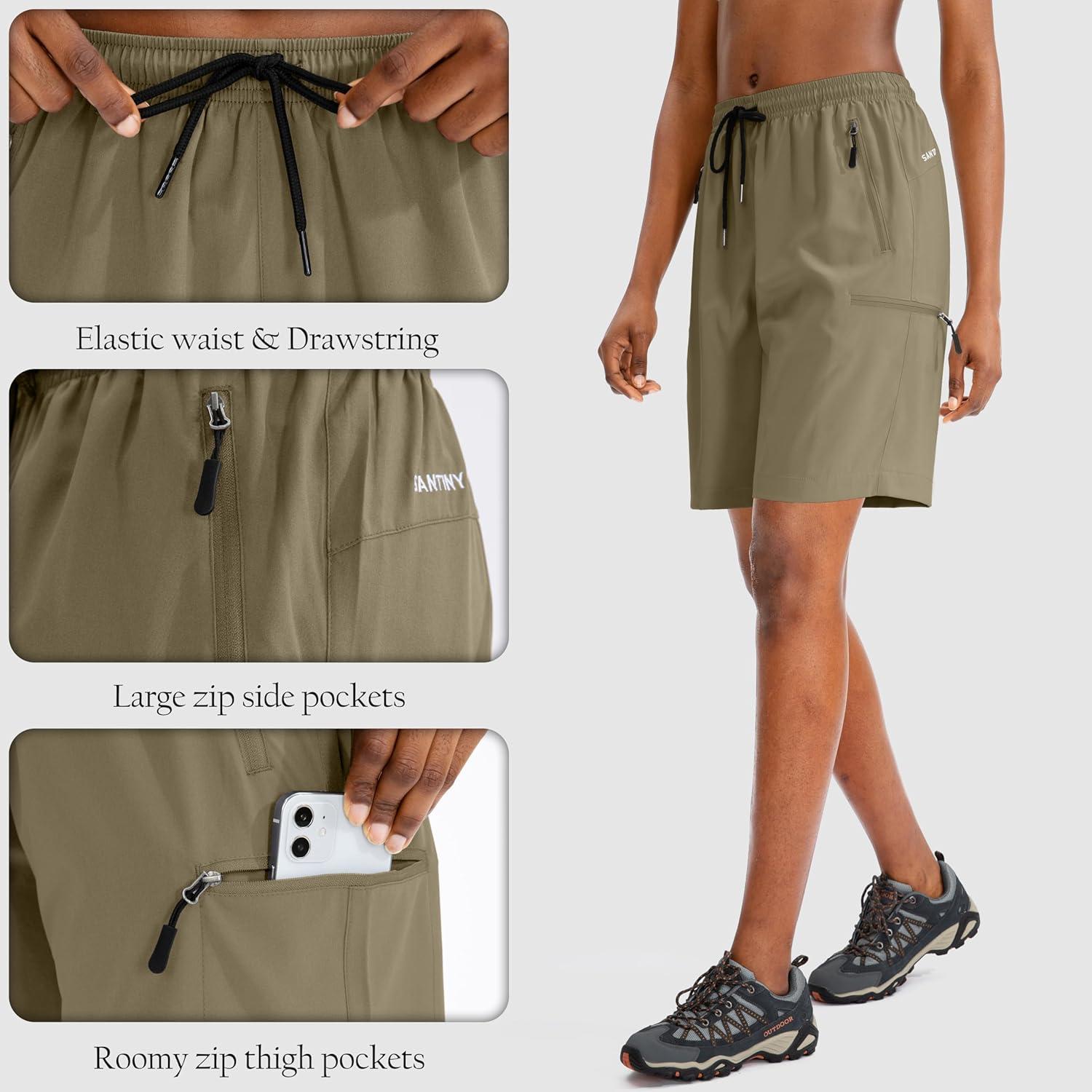 SANTINY Women’s 5”/ 7”/9” Hiking Cargo Shorts Quick Dry Lightweight Summer Shorts for Women Athletic Golf Zipper Pockets(Dusty Khaki)