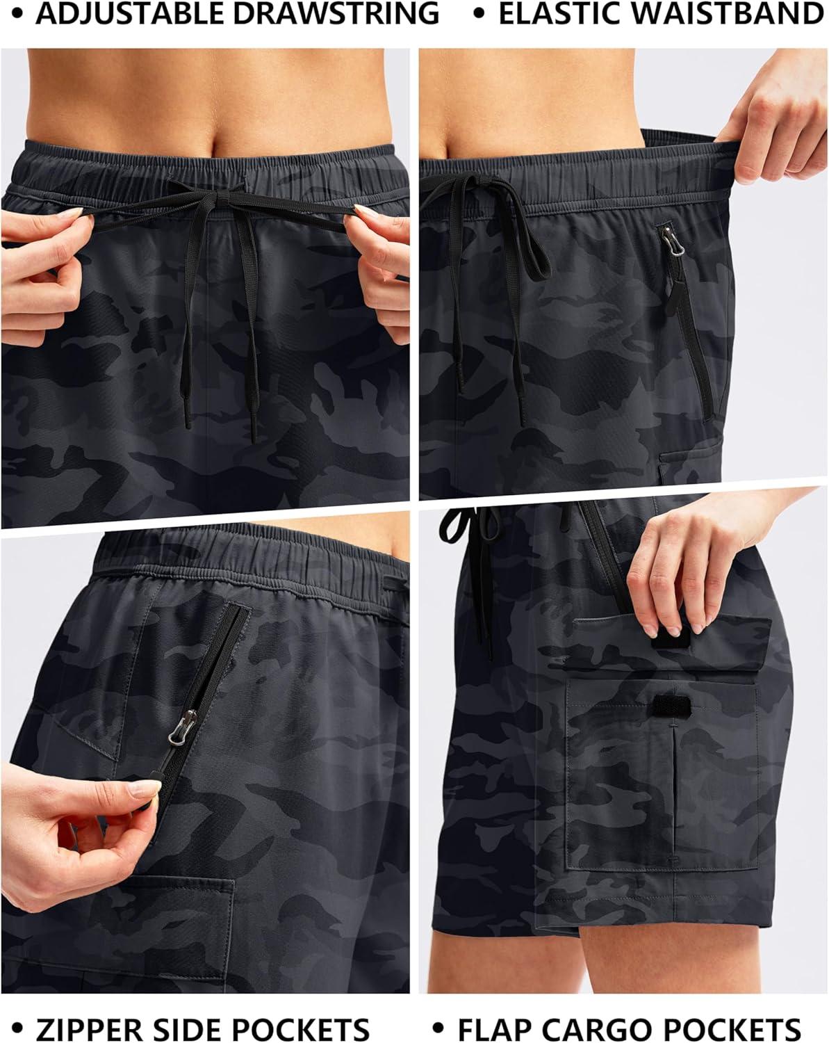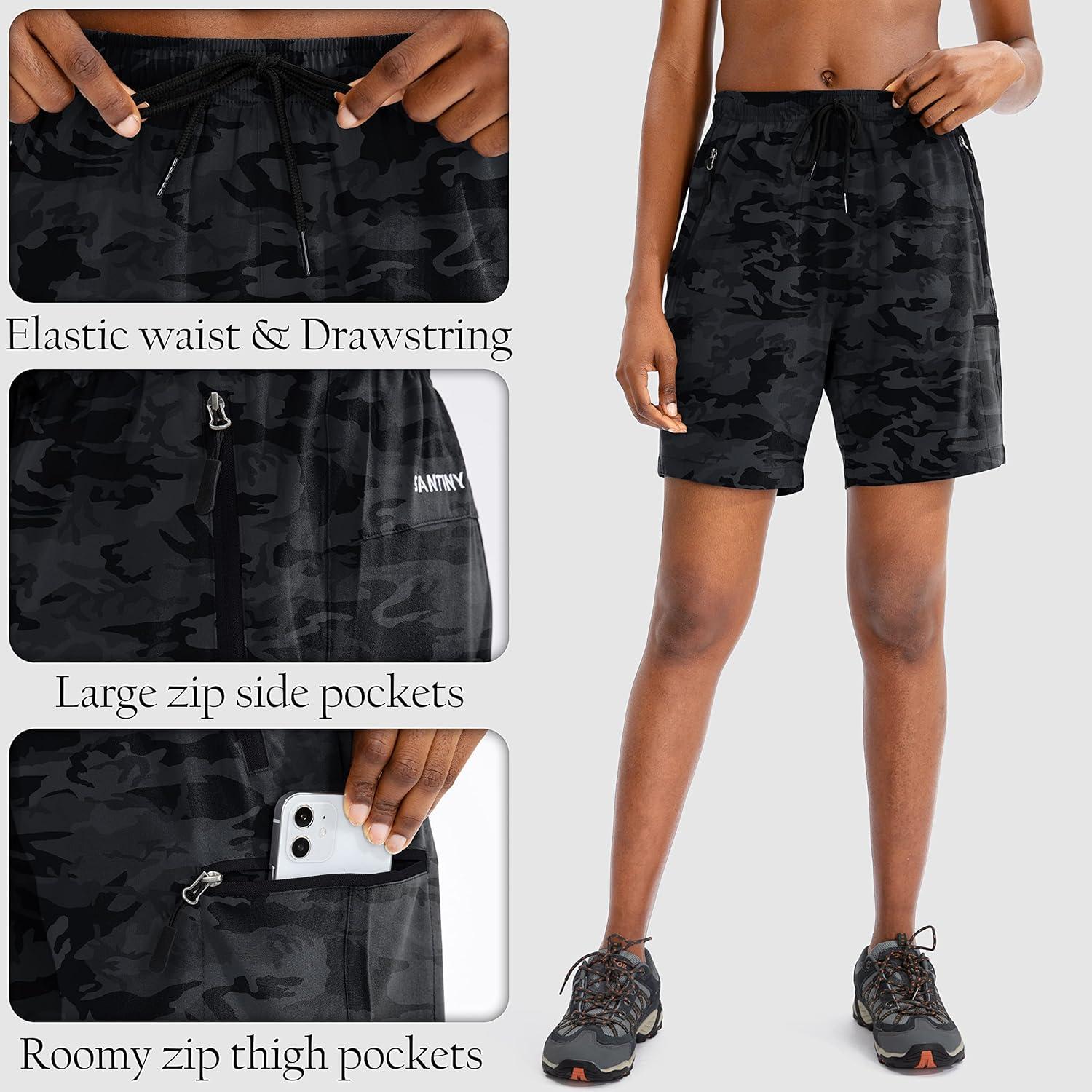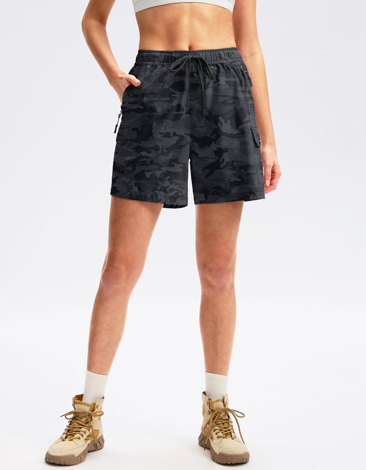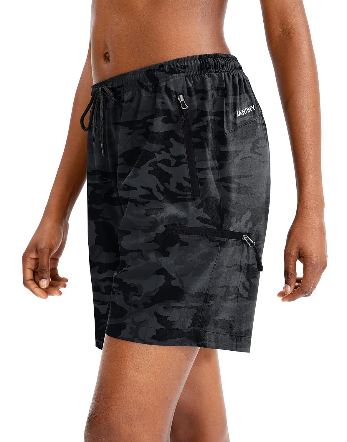 SANTINY Women’s 5”/ 7”/9” Hiking Cargo Shorts Quick Dry Lightweight Summer Shorts for Women Athletic Golf Zipper Pockets(Greycamo)