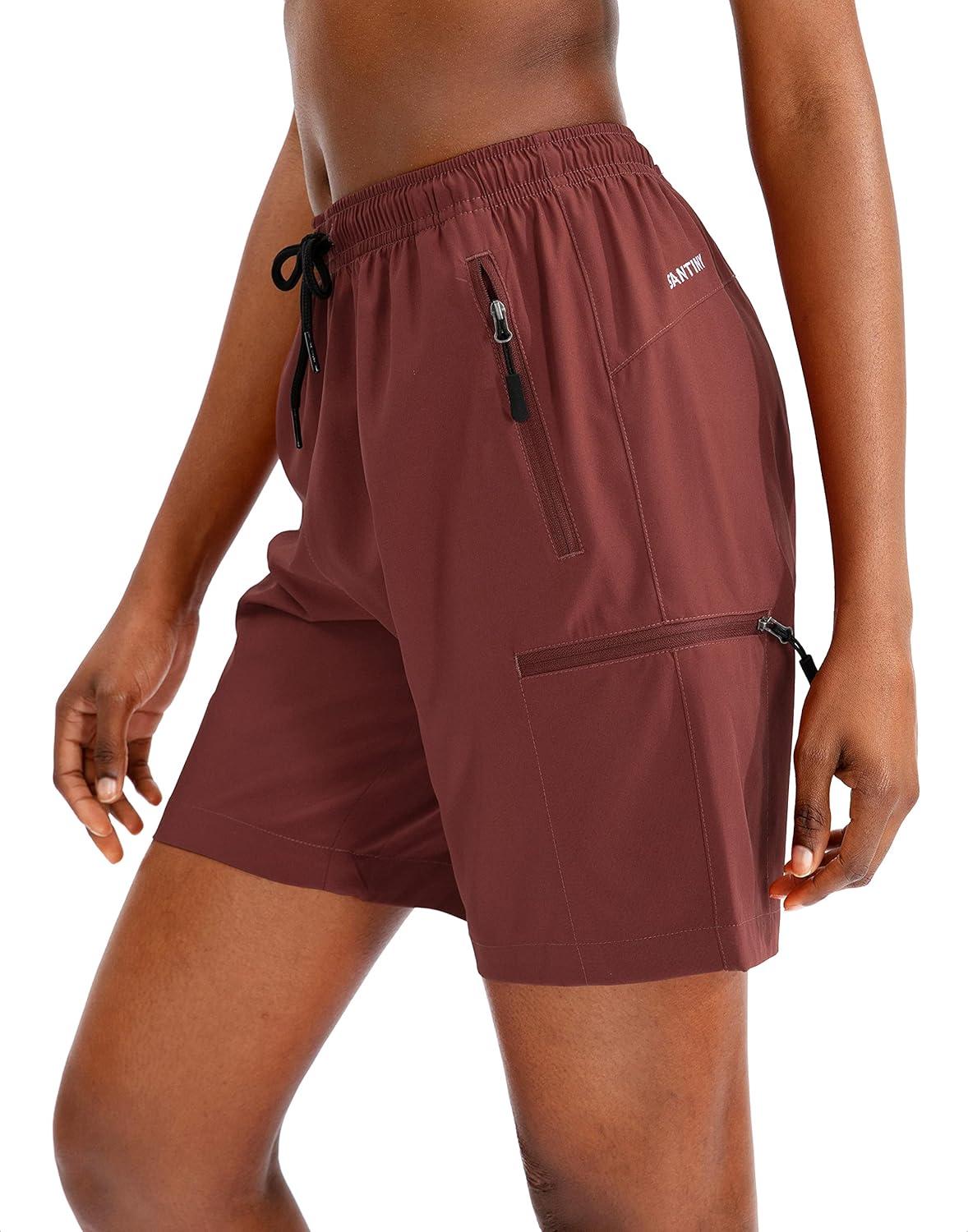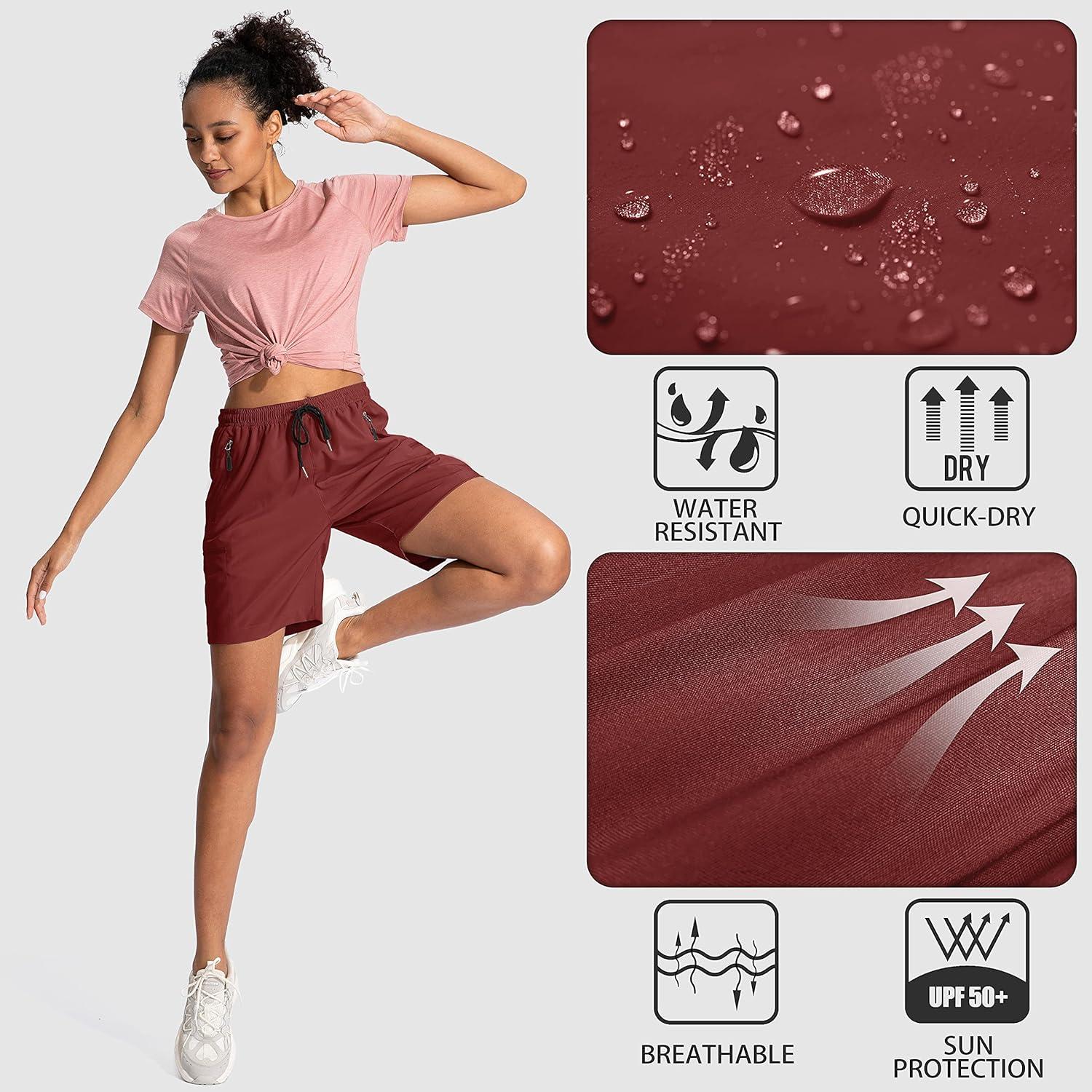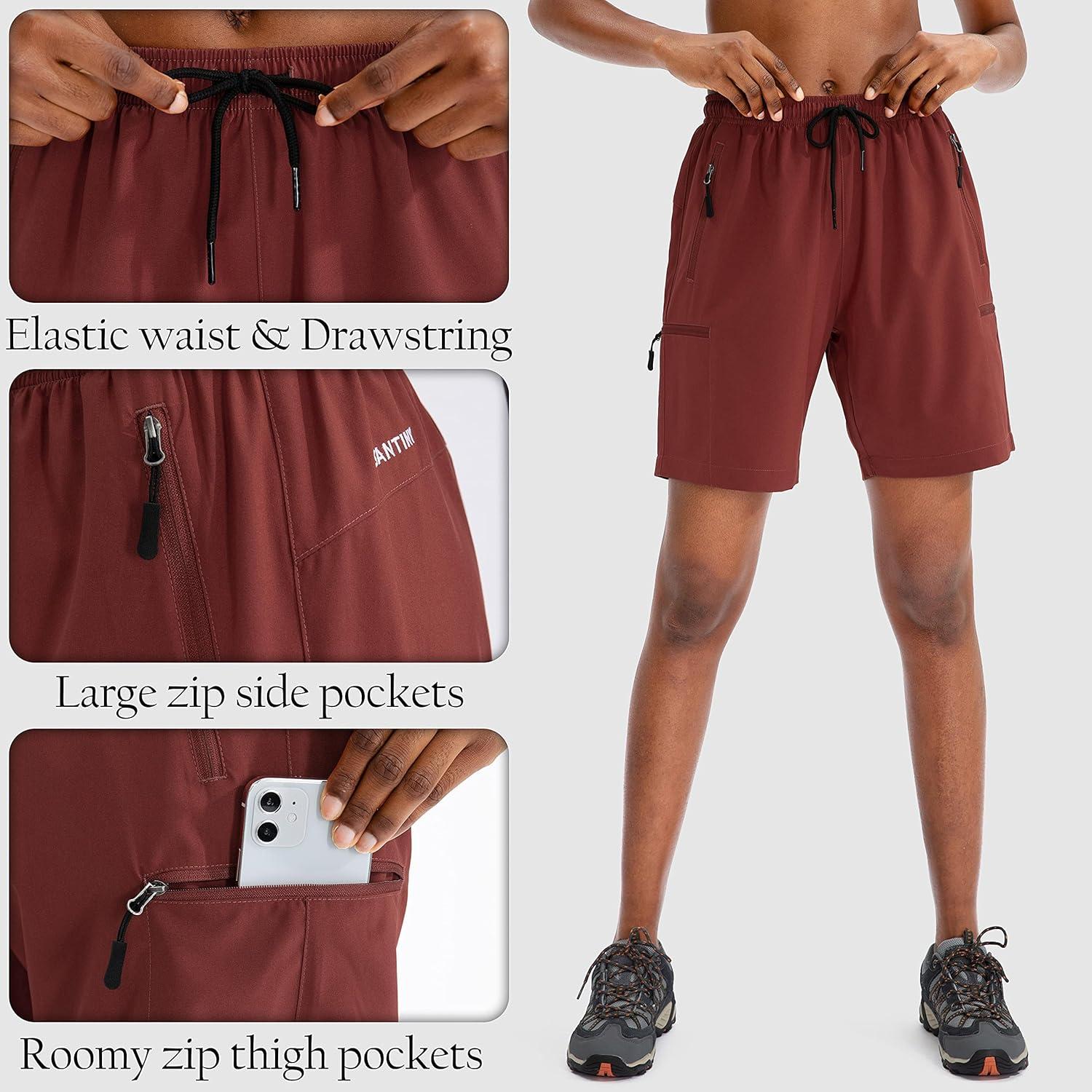 SANTINY Women’s 5”/ 7”/9” Hiking Cargo Shorts Quick Dry Lightweight Summer Shorts for Women Athletic Golf Zipper Pockets(Maroon)