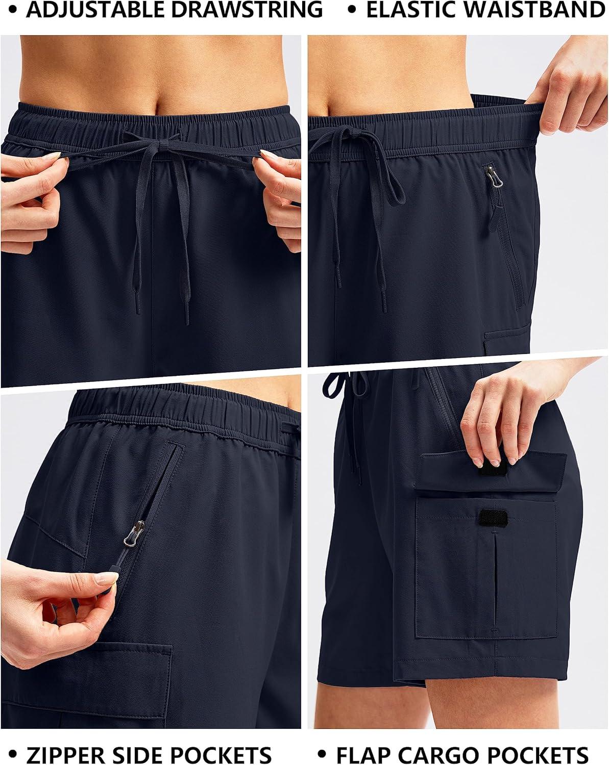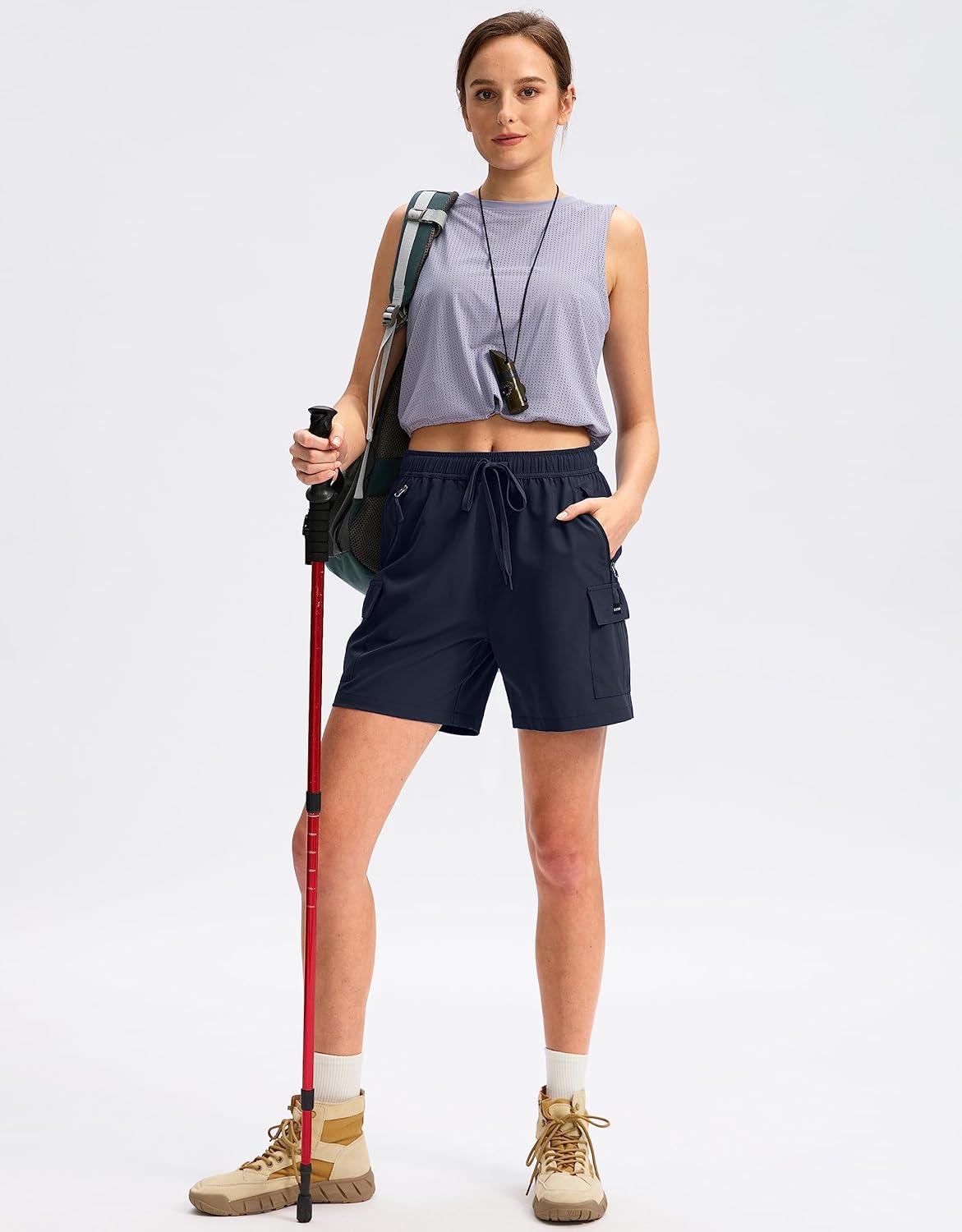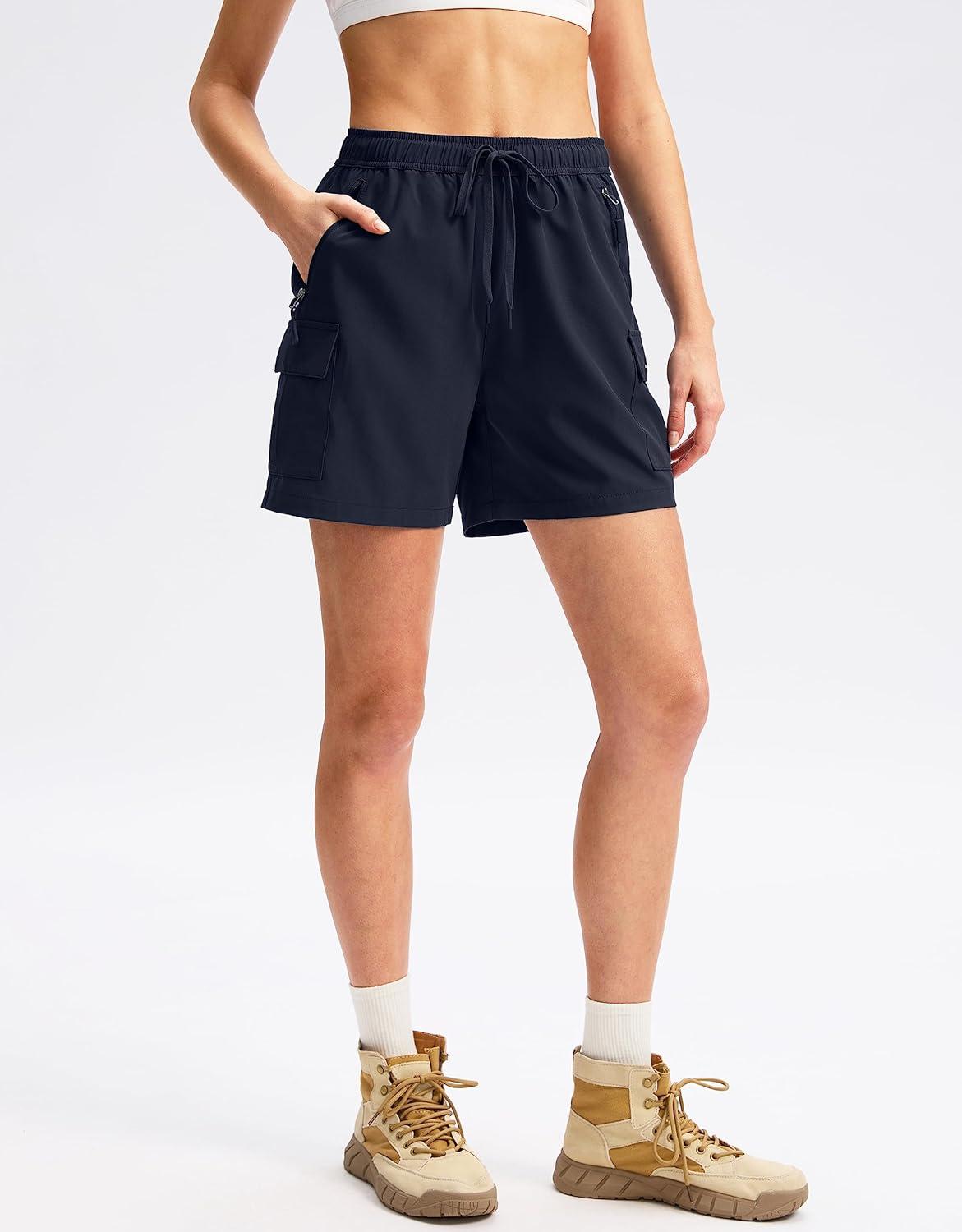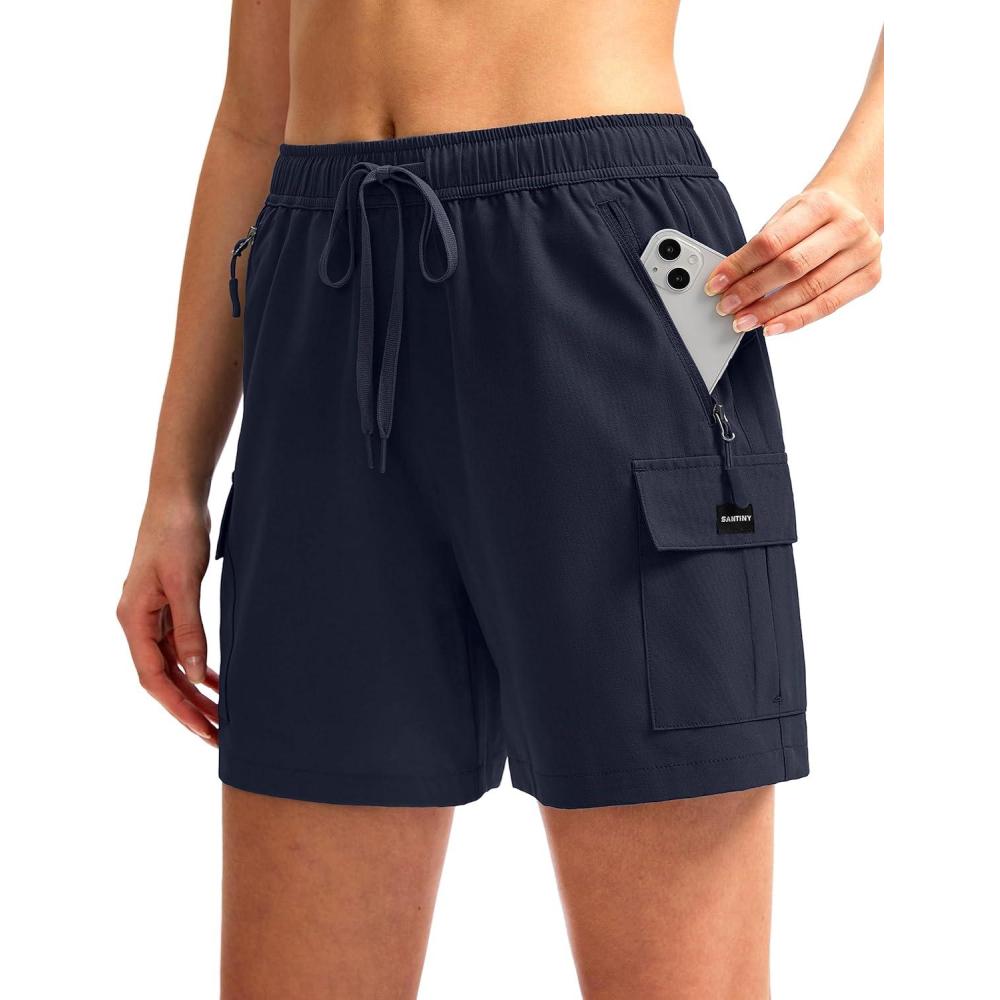 SANTINY Women’s 5”/ 7”/9” Hiking Cargo Shorts Quick Dry Lightweight Summer Shorts for Women Athletic Golf Zipper Pockets(Navy)