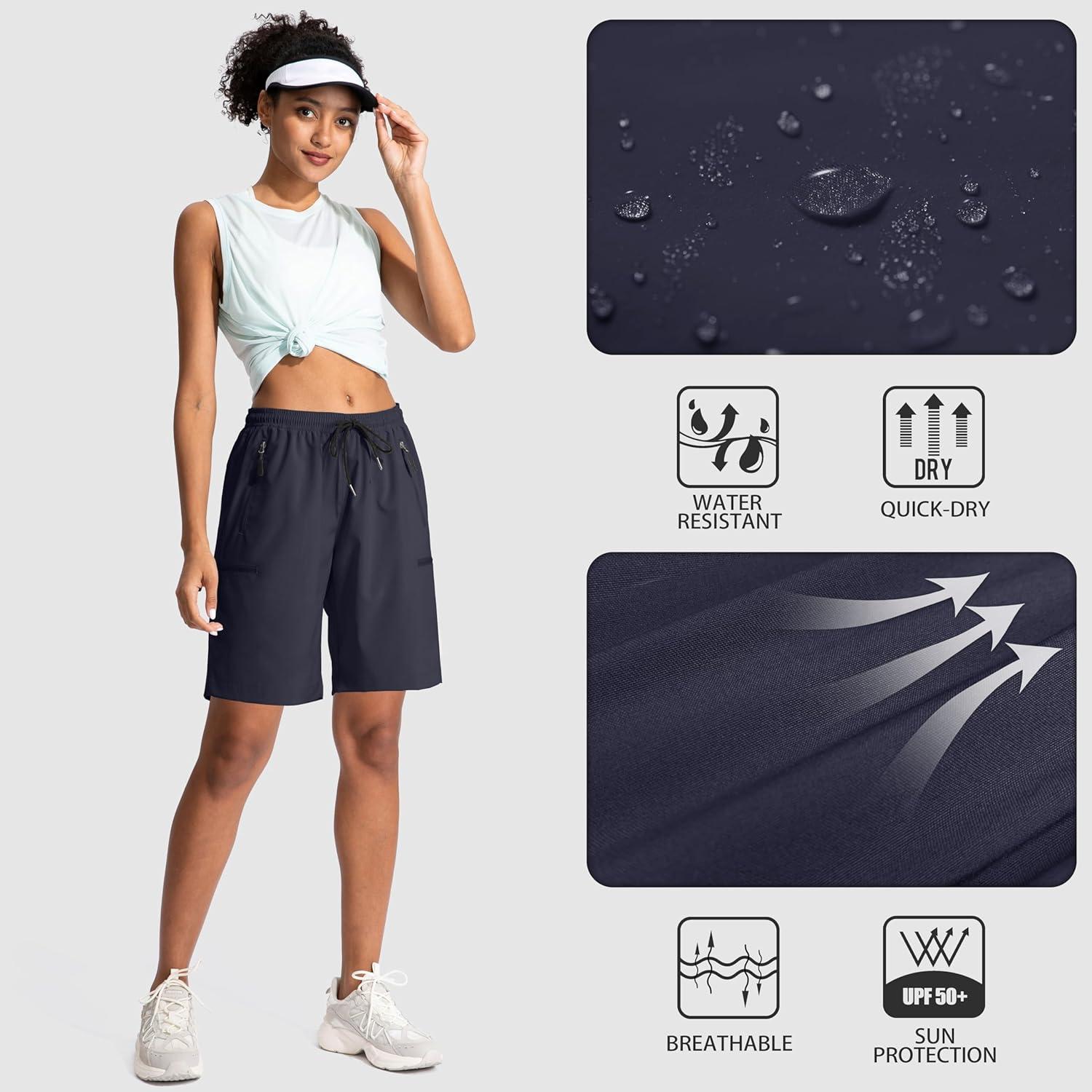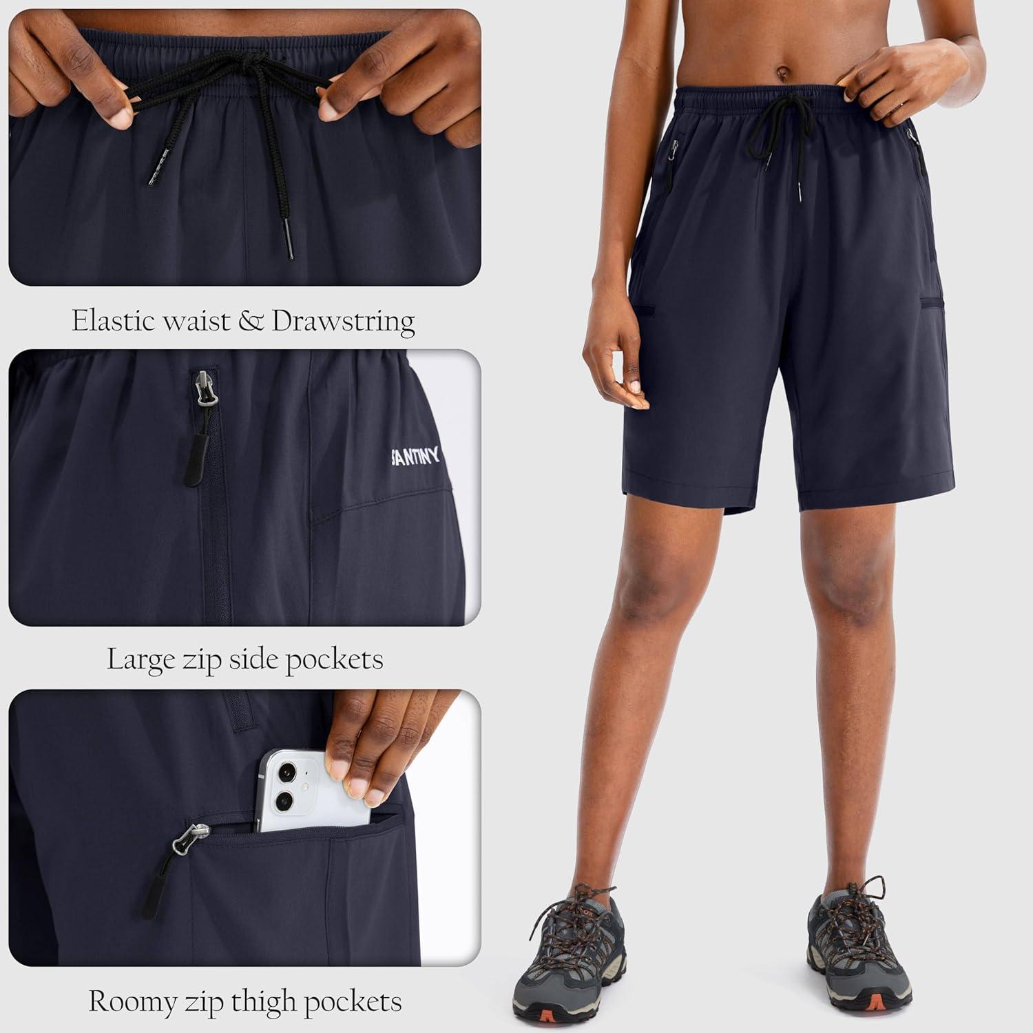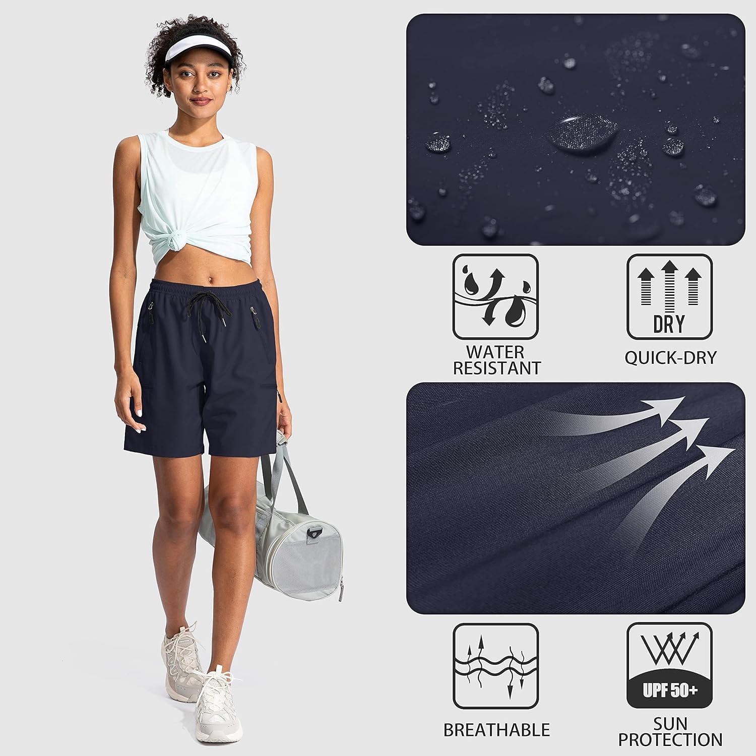 SANTINY Women’s 5”/ 7”/9” Hiking Cargo Shorts Quick Dry Lightweight Summer Shorts for Women Athletic Golf Zipper Pockets(Navy)