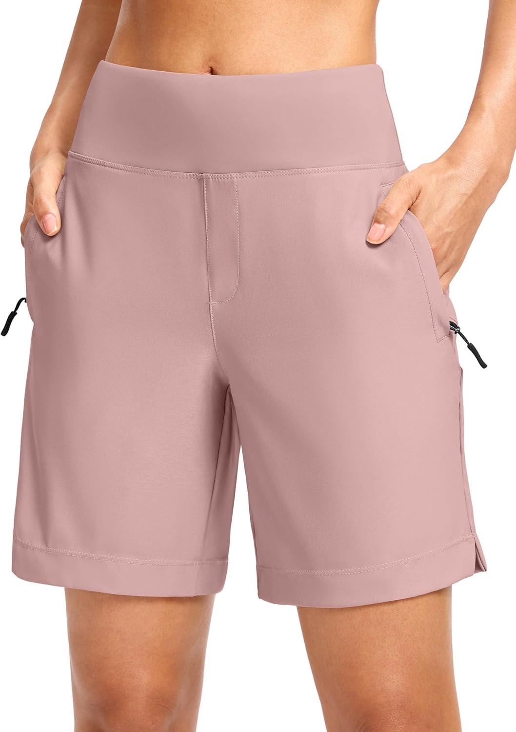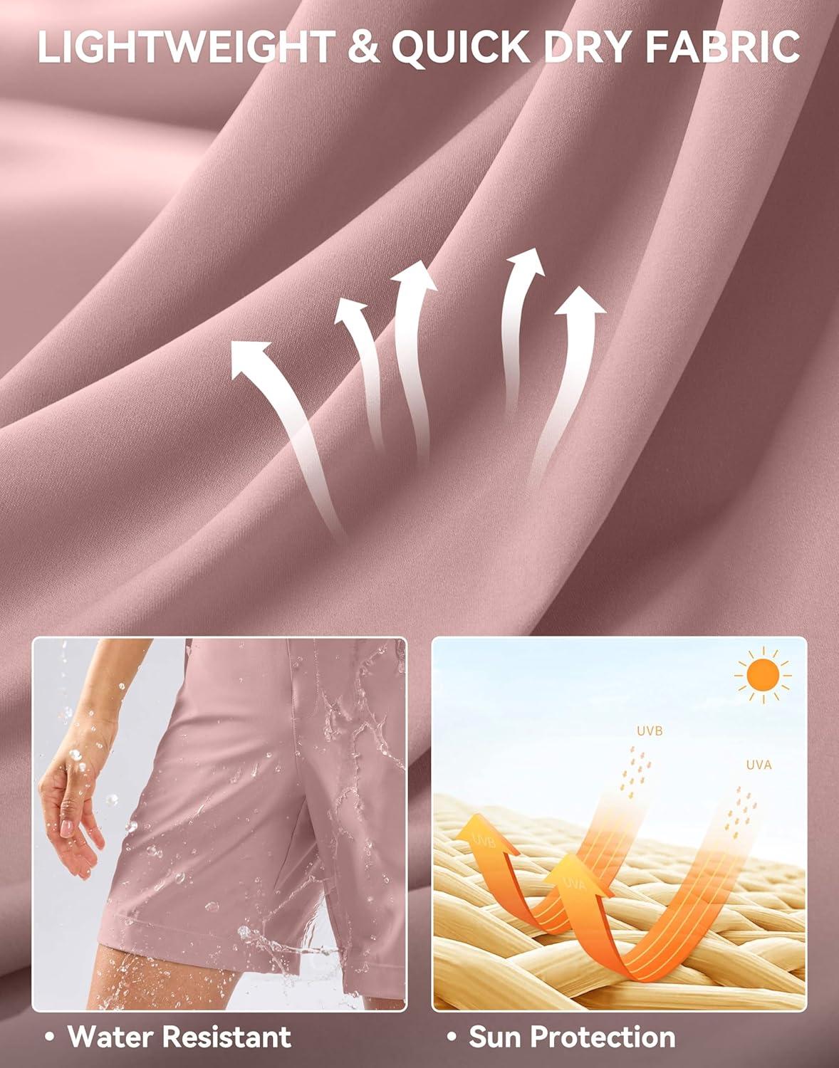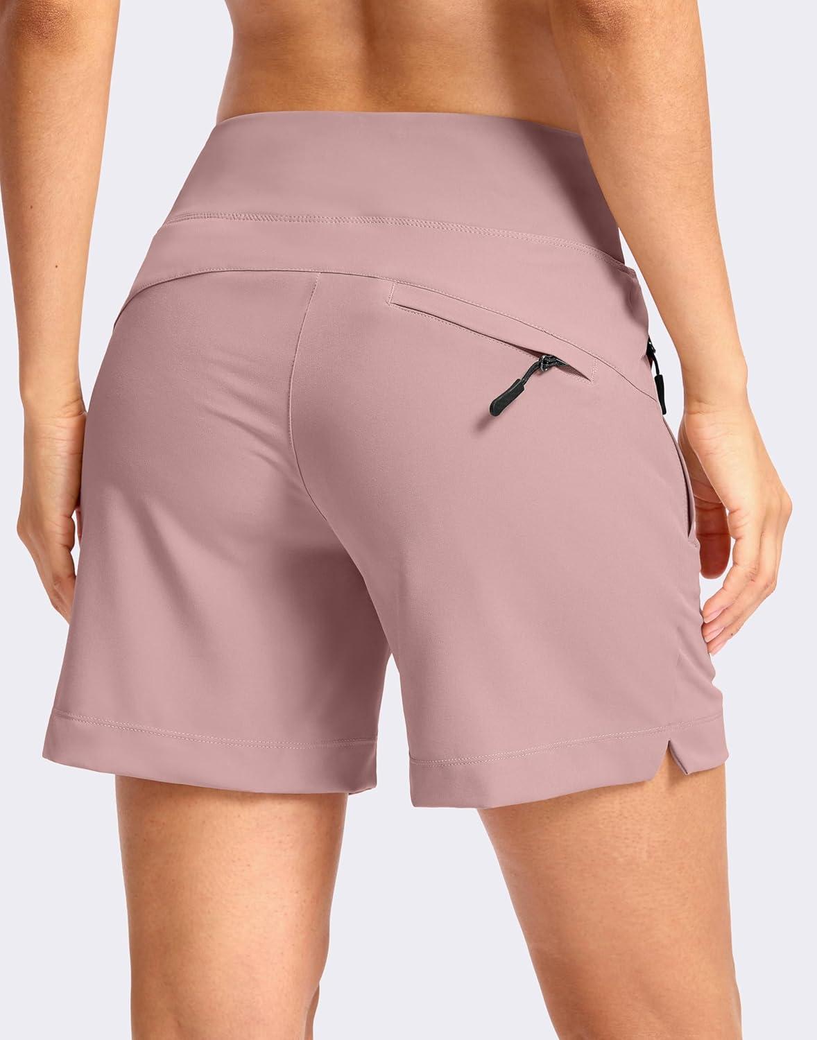 SANTINY Women’s 5”/ 7”Hiking Shorts with 3 Zipper Pockets Lightweight Quick Dry Golf Shorts for Women Athletic Walking(Pink)