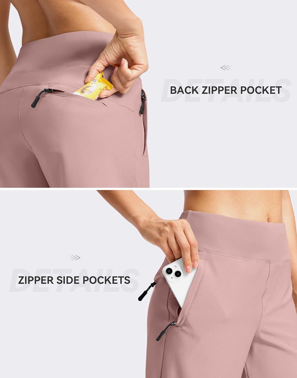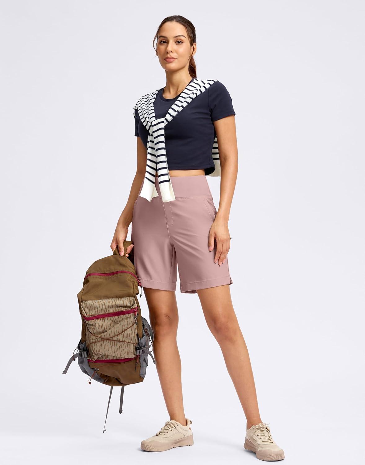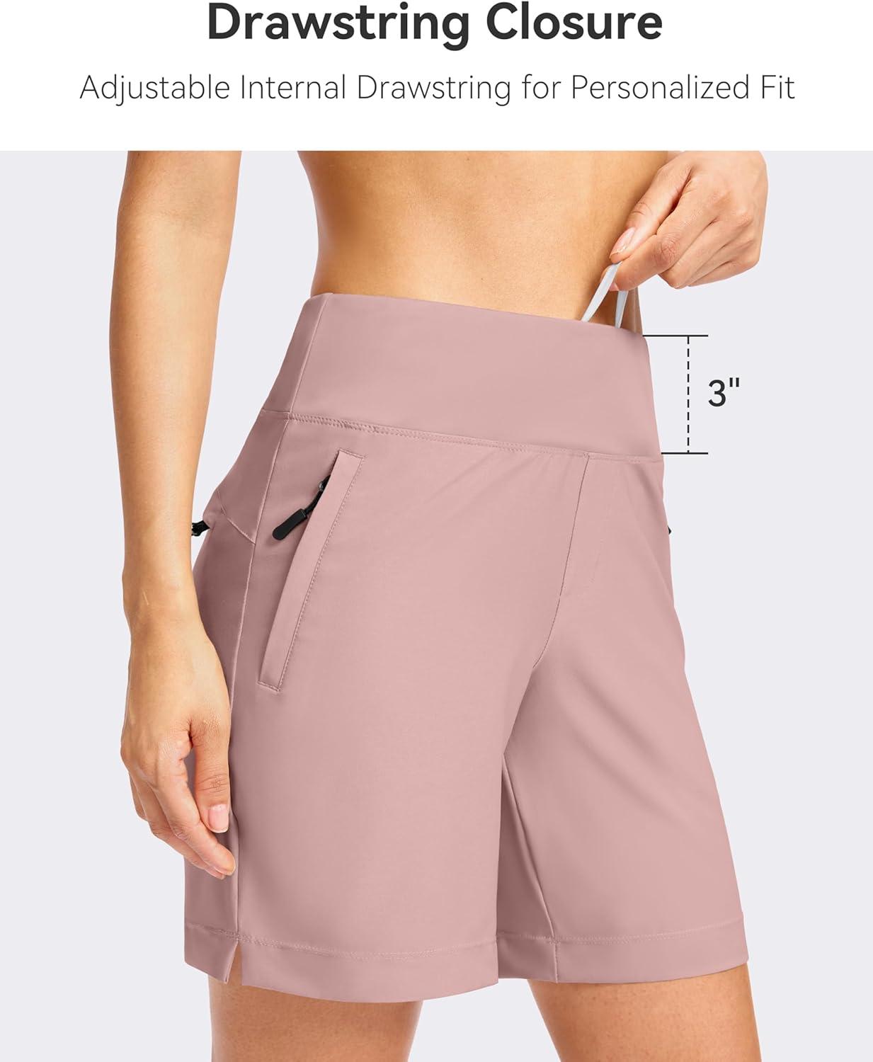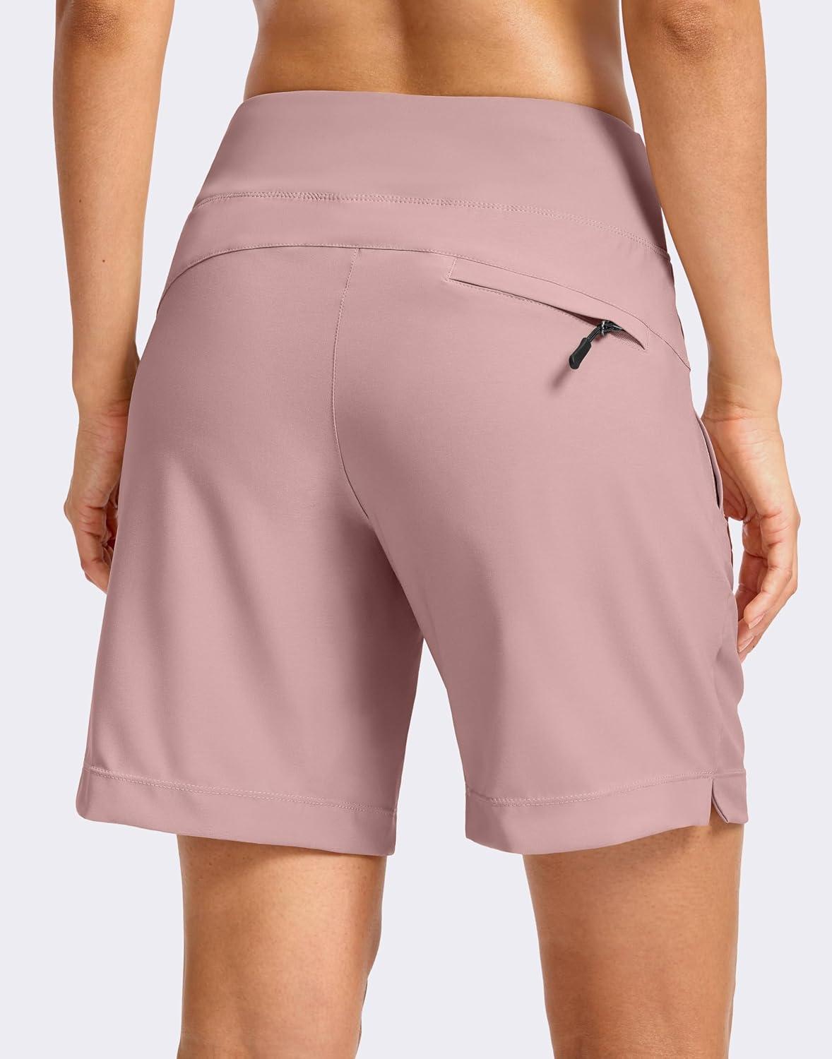 SANTINY Women’s 5”/ 7”Hiking Shorts with 3 Zipper Pockets Lightweight Quick Dry Golf Shorts for Women Athletic Walking(Pink)
