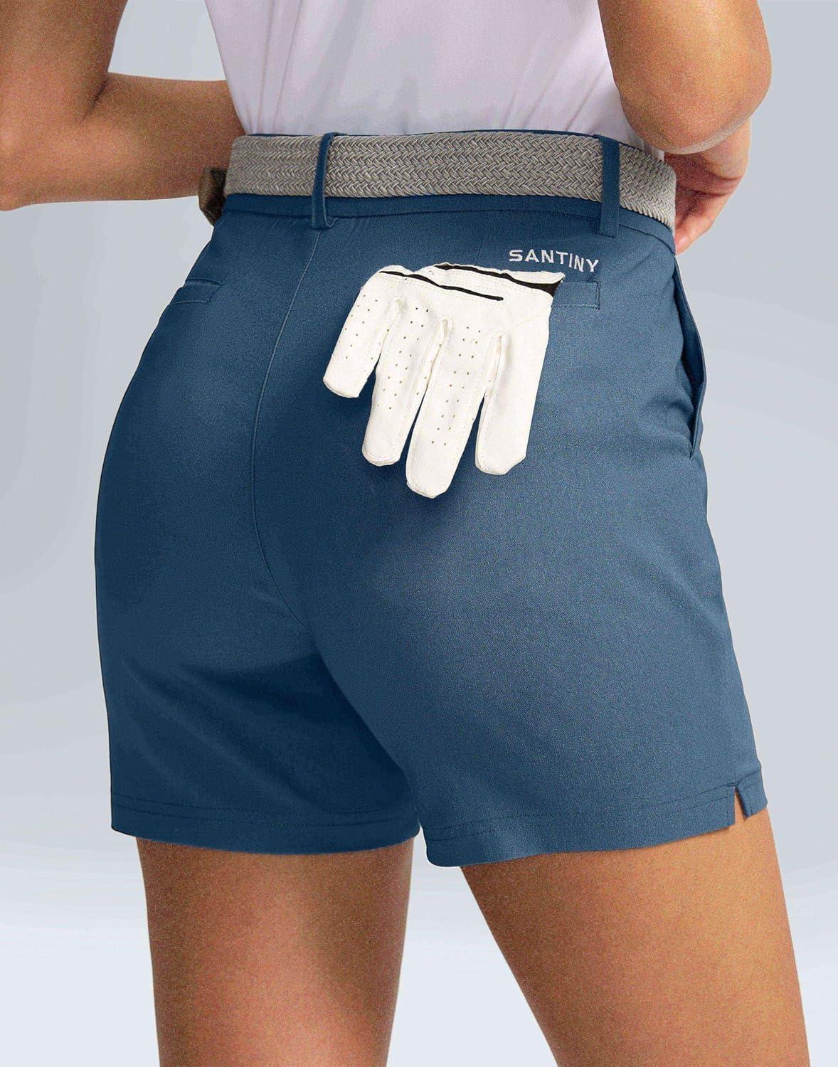 SANTINY Women’s 5″ Golf Shorts with Pockets Quick Dry Stretch Work Outdoor Hiking Shorts for Women Casual Summer(Blue)