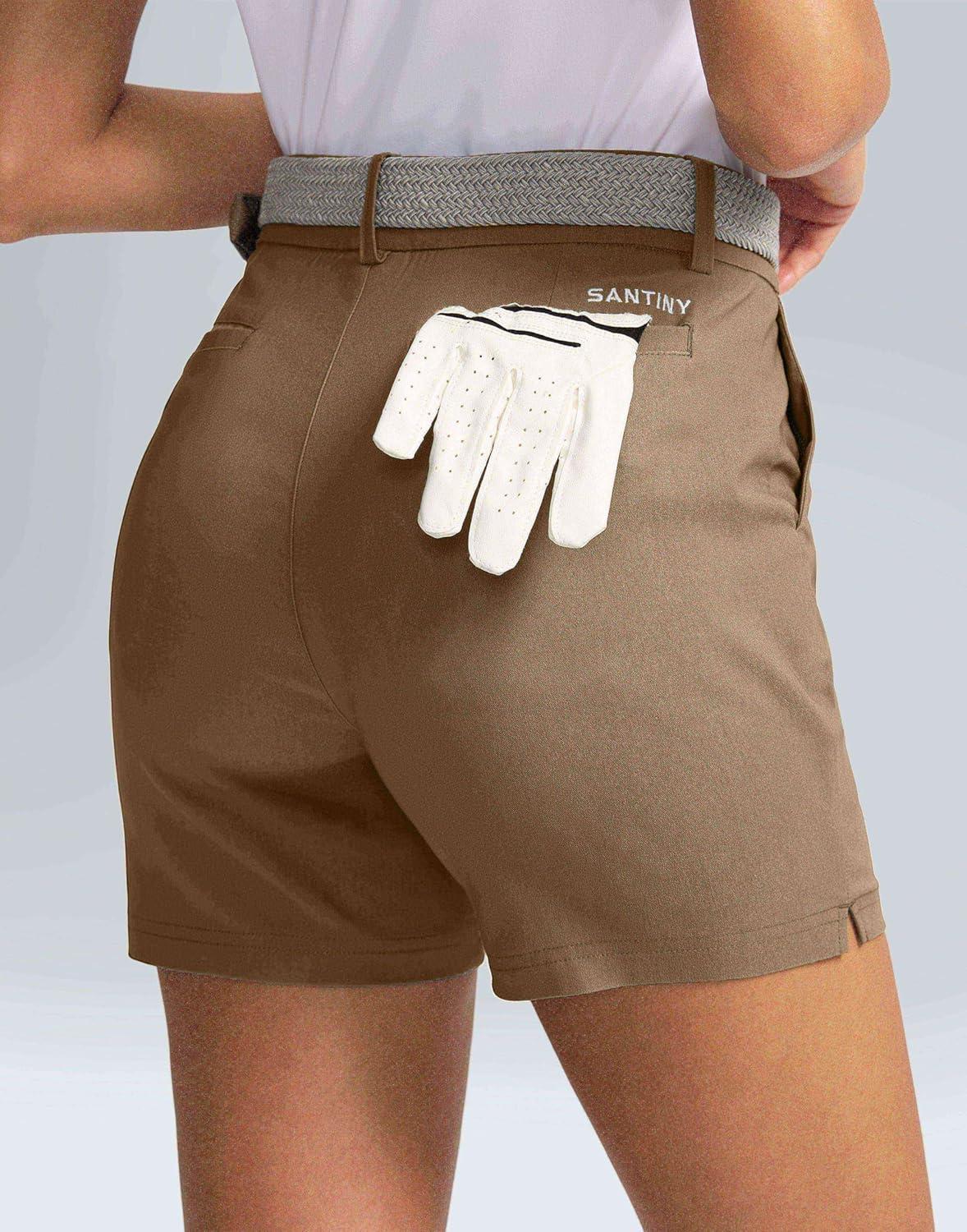 SANTINY Women’s 5″ Golf Shorts with Pockets Quick Dry Stretch Work Outdoor Hiking Shorts for Women Casual Summer(Deep Khaki)