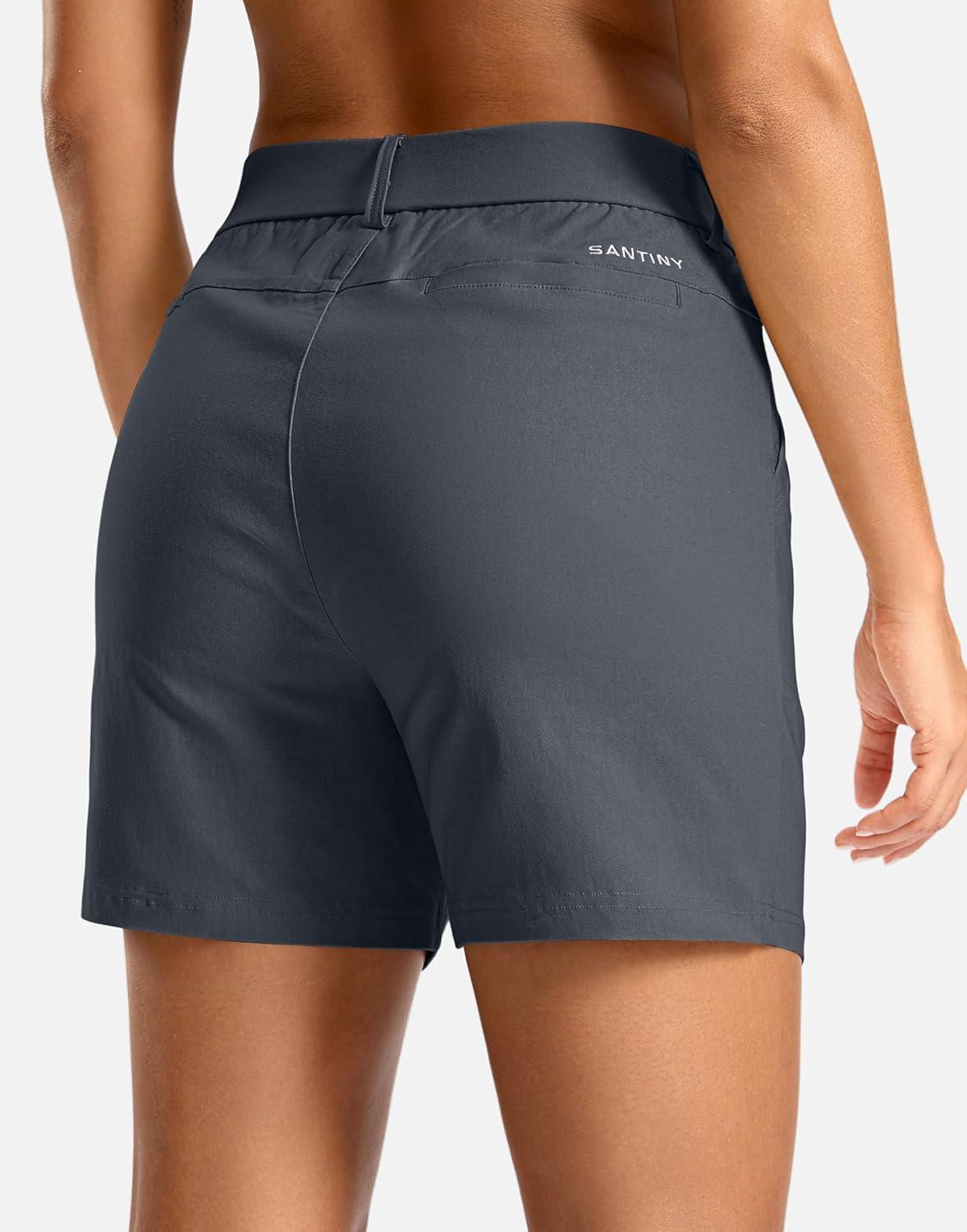 SANTINY Women’s 5″ Hiking Golf Shorts Quick Dry Stretch Casual Work Shorts with Pockets for Women Walking Travel Summer(Dark Grey)