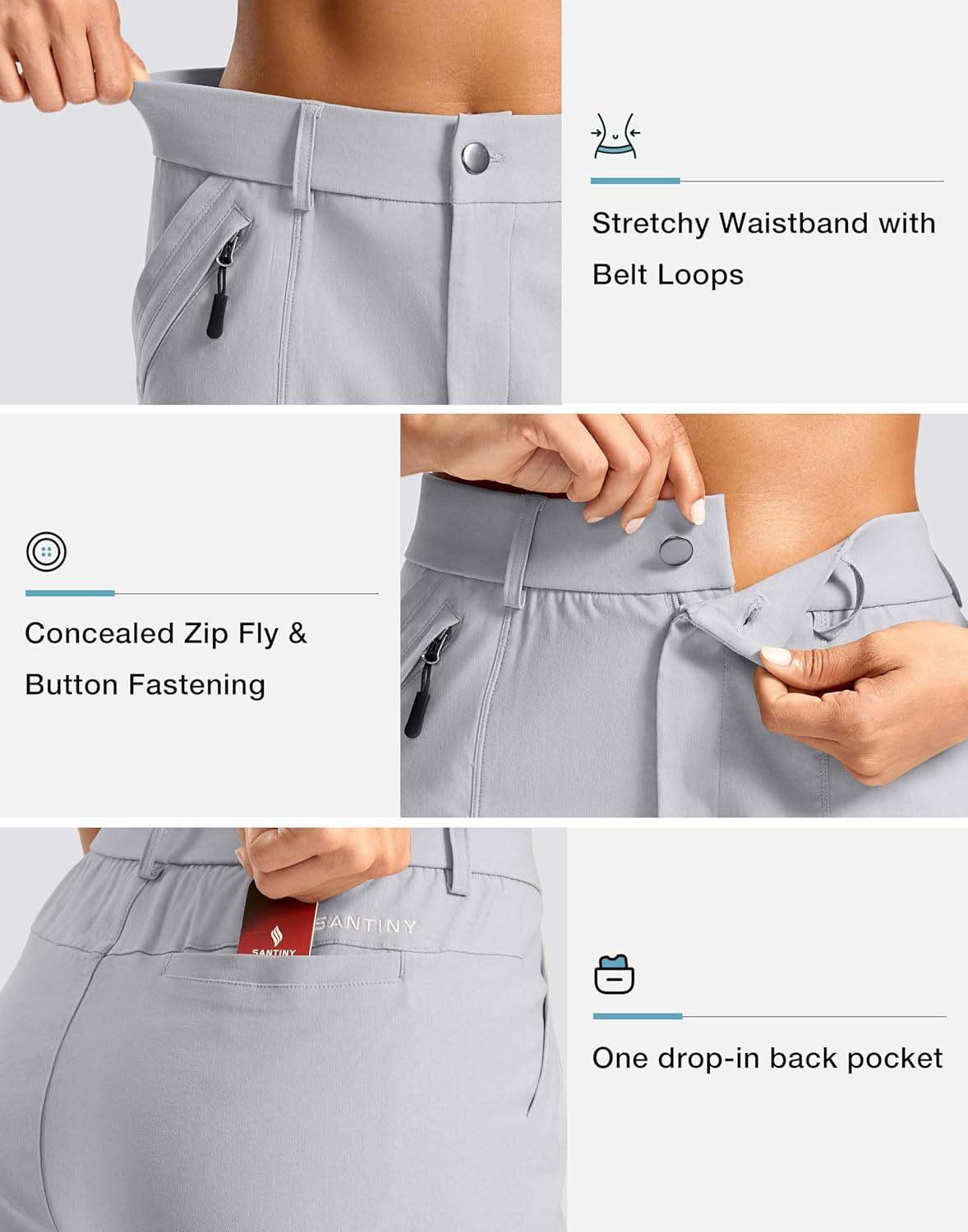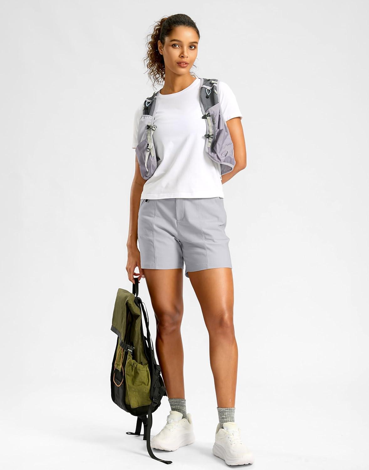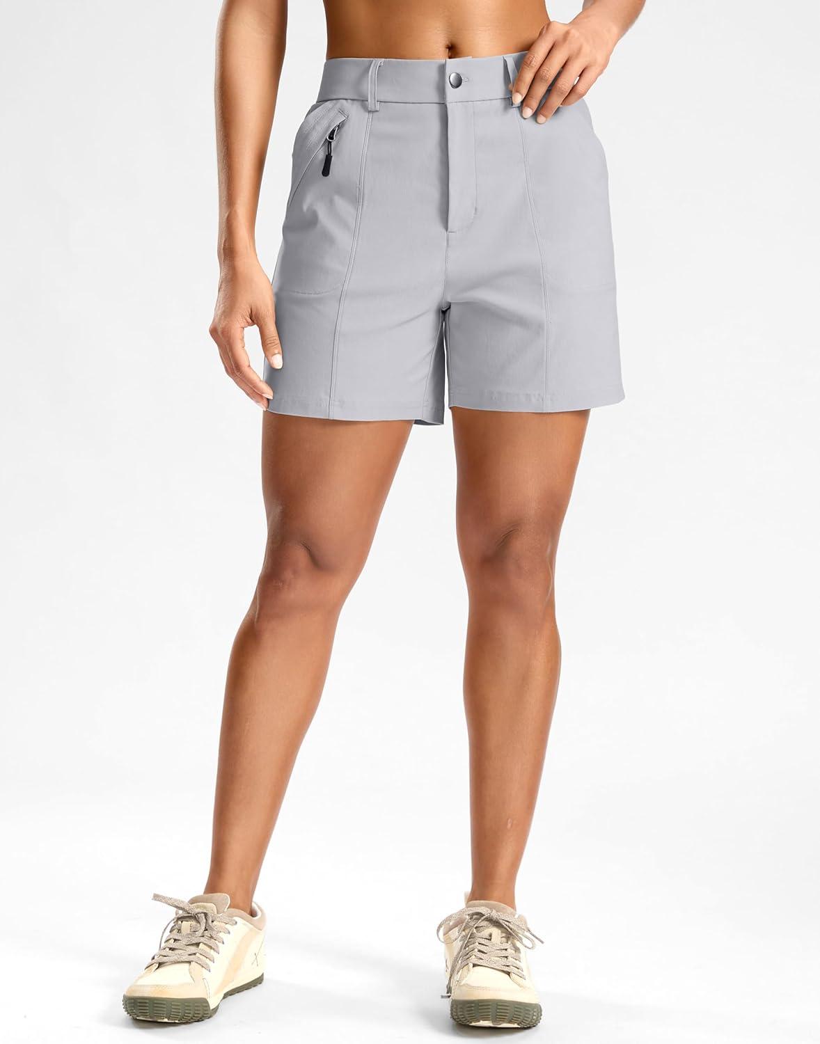 SANTINY Women’s 5″ Hiking Golf Shorts Quick Dry Stretch Casual Work Shorts with Pockets for Women Walking Travel Summer(Light Grey)
