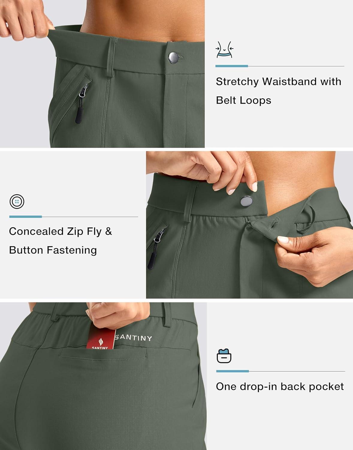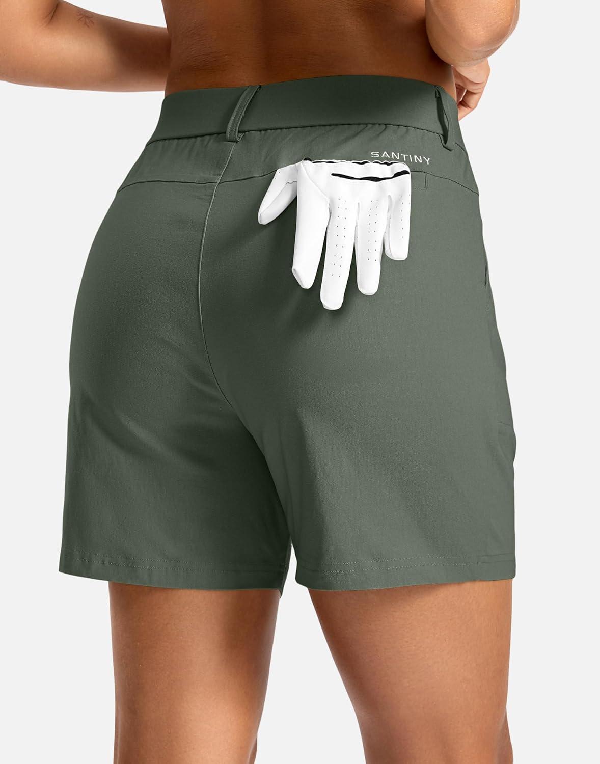 SANTINY Women’s 5″ Hiking Golf Shorts Quick Dry Stretch Casual Work Shorts with Pockets for Women Walking Travel Summer(Sage Green)