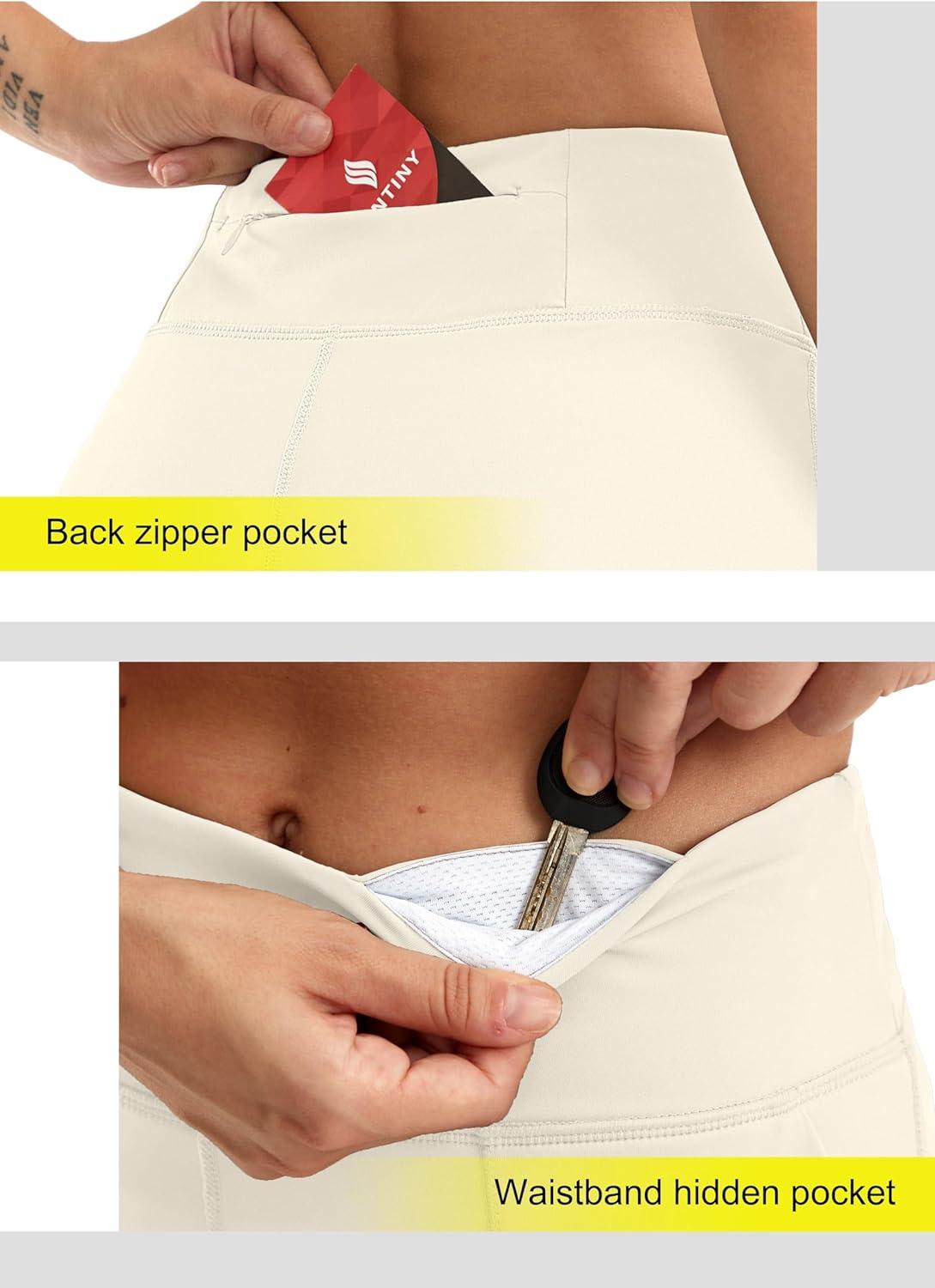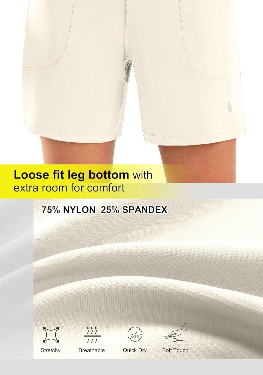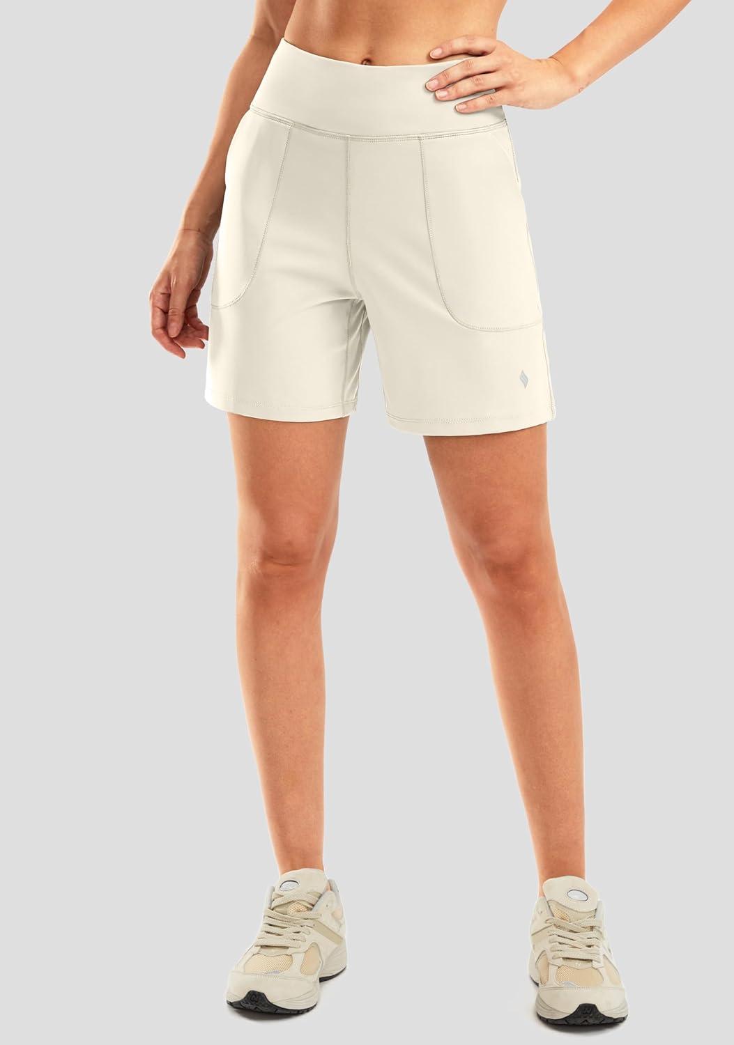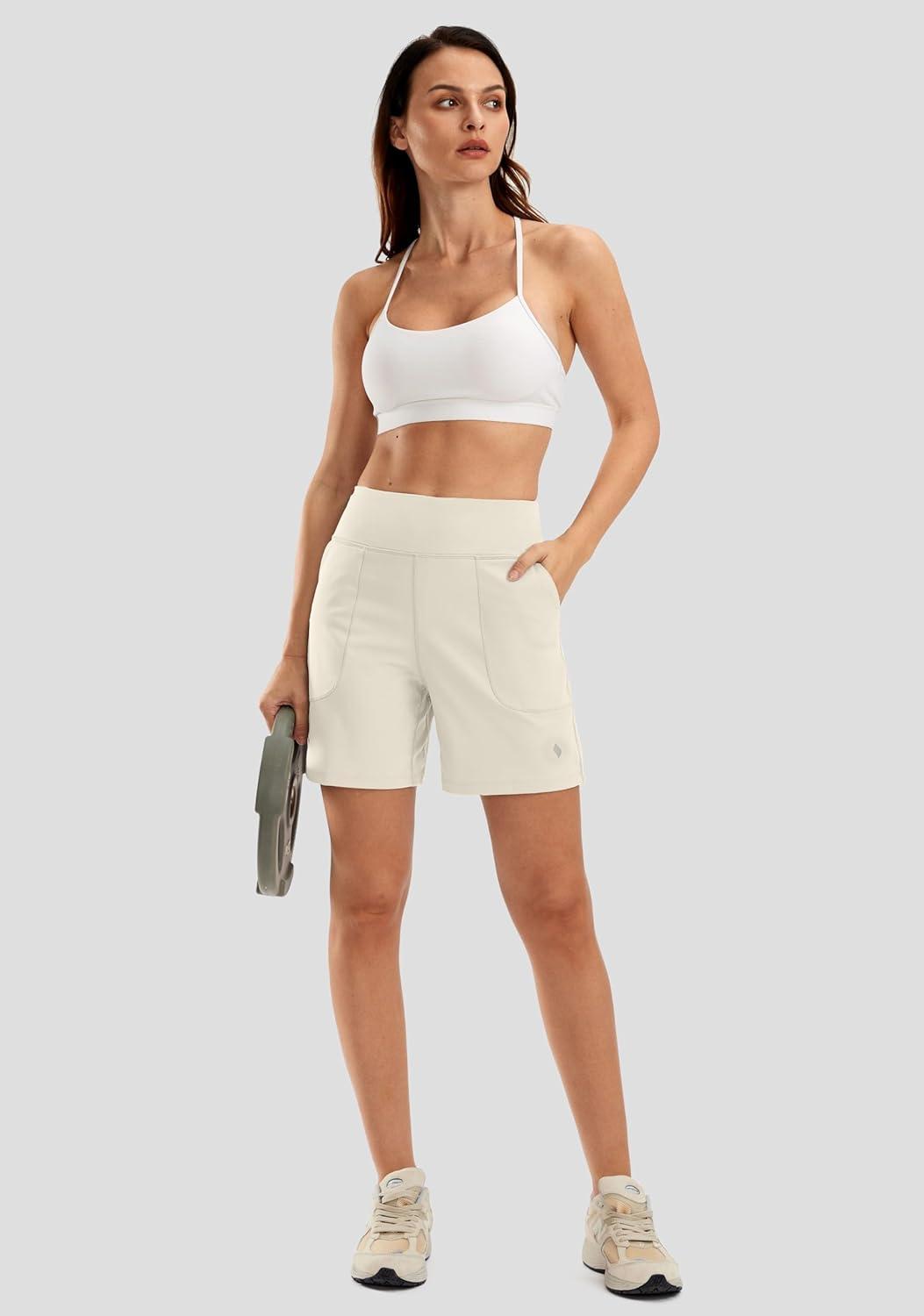 SANTINY Women’s 6” Athletic Long Shorts with 4 Pockets High Waisted Bermuda Shorts for Women Walking Running Casual(Beige)