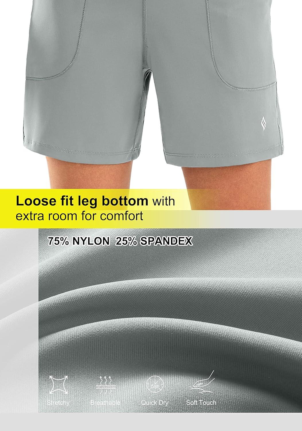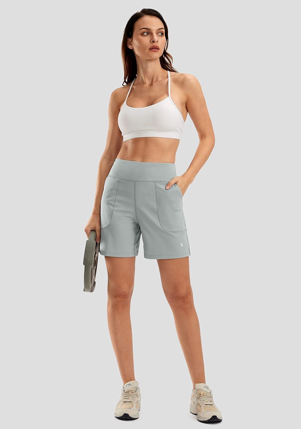 SANTINY Women’s 6” Athletic Long Shorts with 4 Pockets High Waisted Bermuda Shorts for Women Walking Running Casual(Bright Grey)