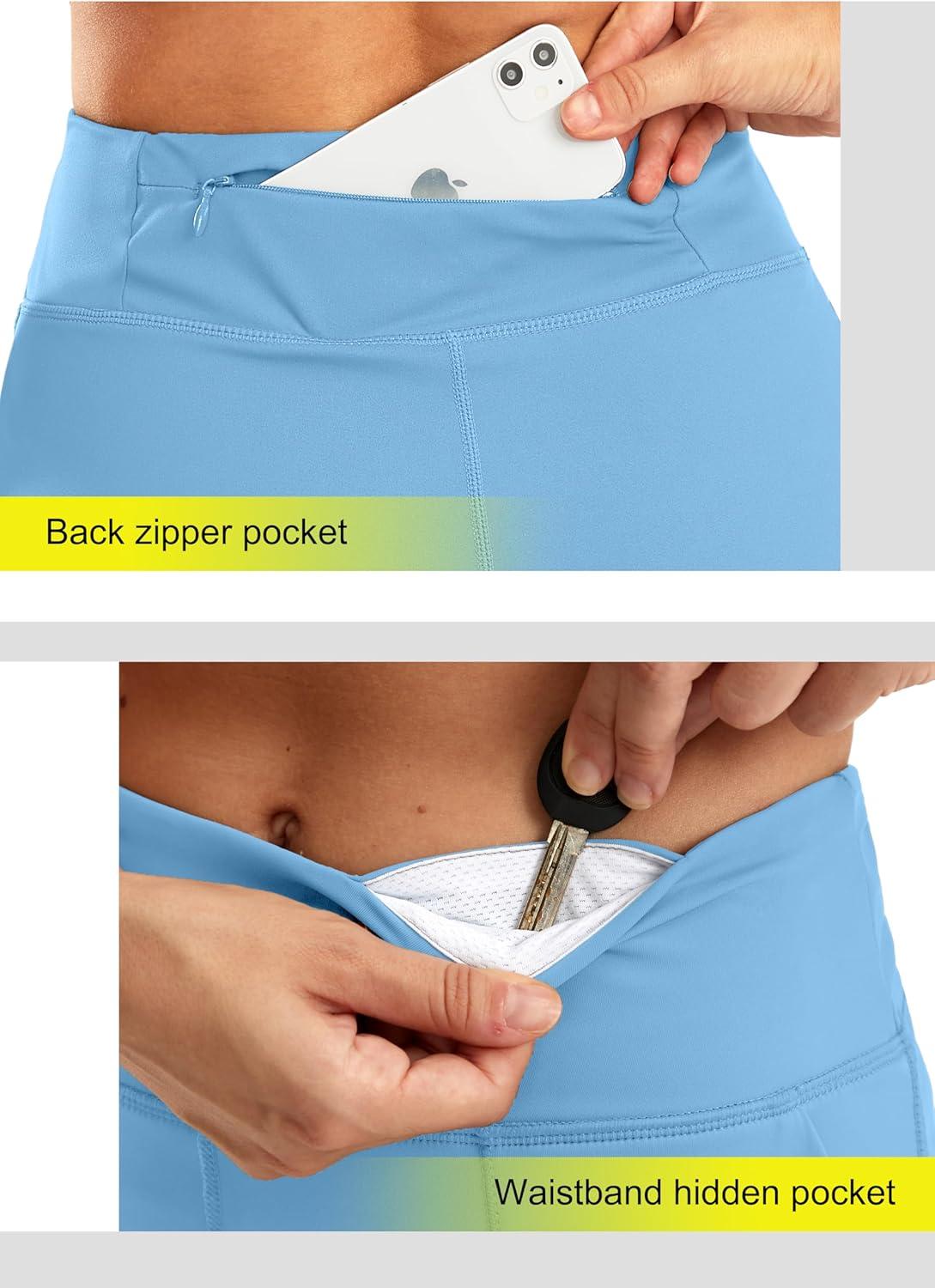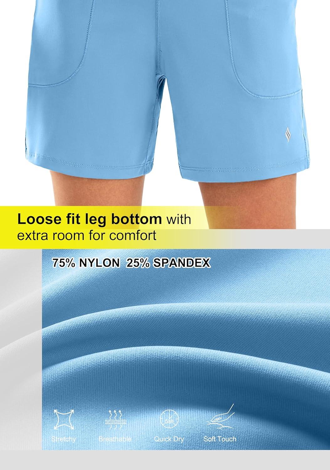 SANTINY Women’s 6” Athletic Long Shorts with 4 Pockets High Waisted Bermuda Shorts for Women Walking Running Casual(Light Blue)