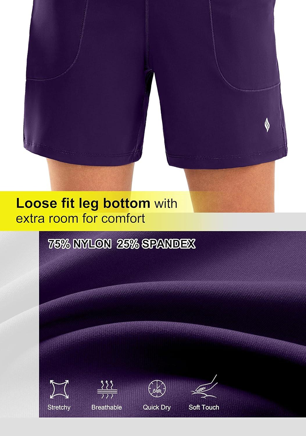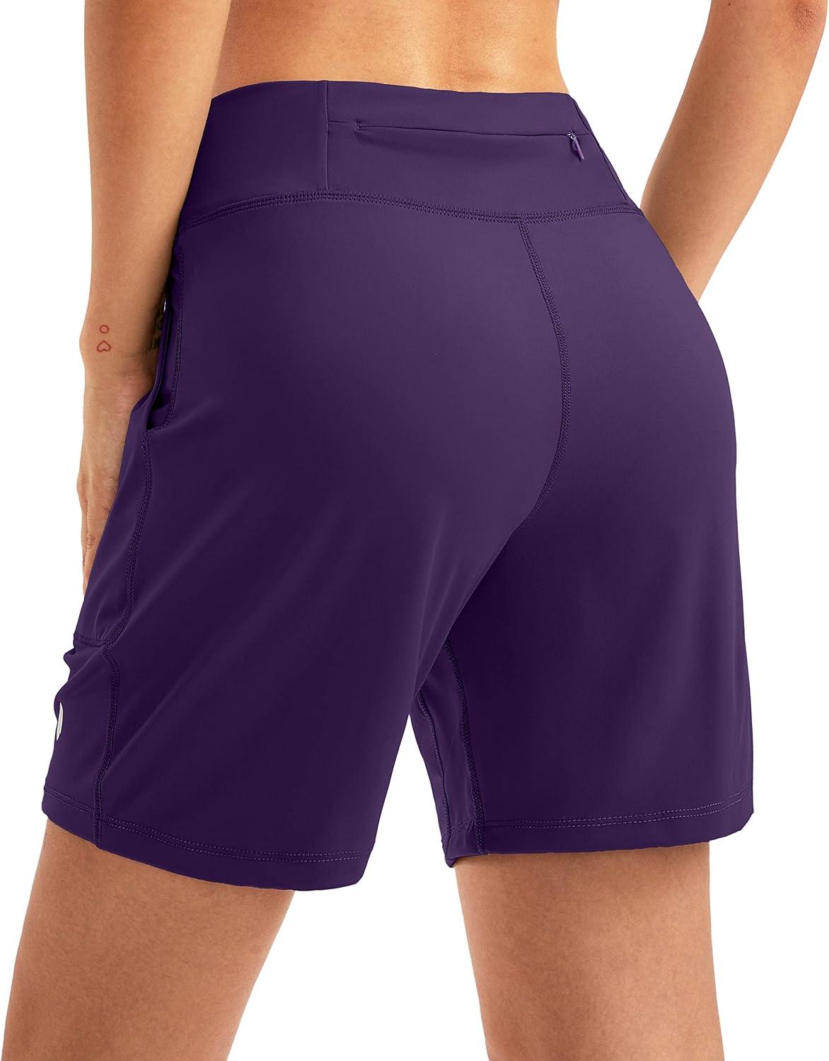 SANTINY Women’s 6” Athletic Long Shorts with 4 Pockets High Waisted Bermuda Shorts for Women Walking Running Casual(Purple)