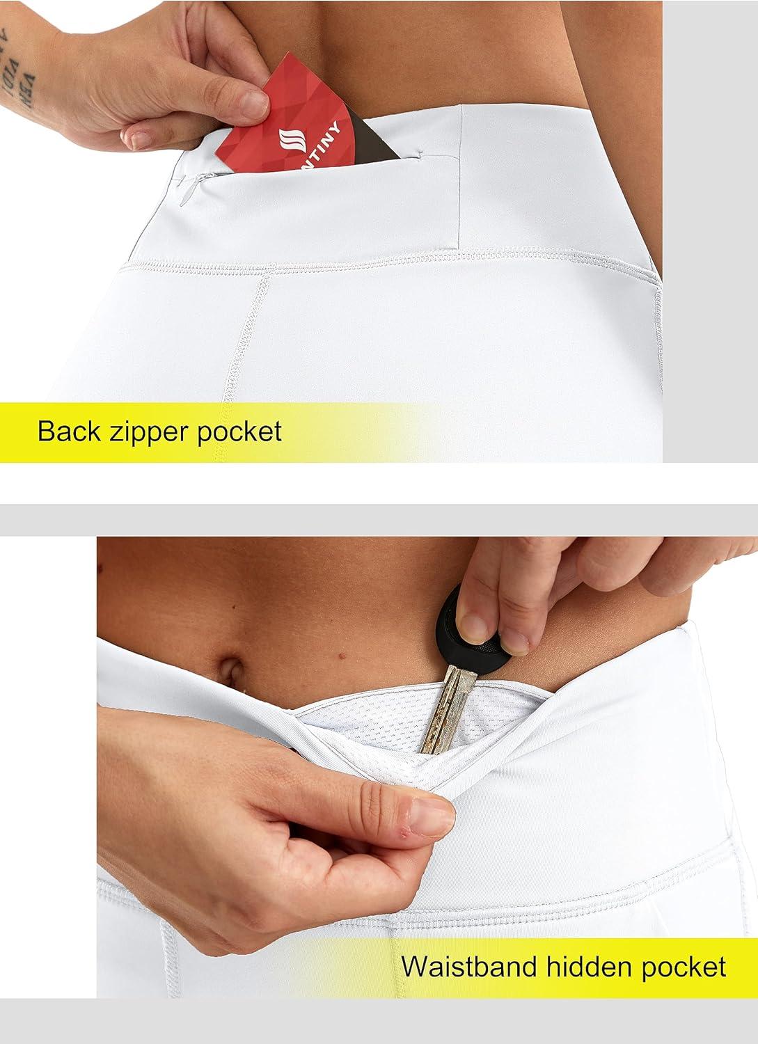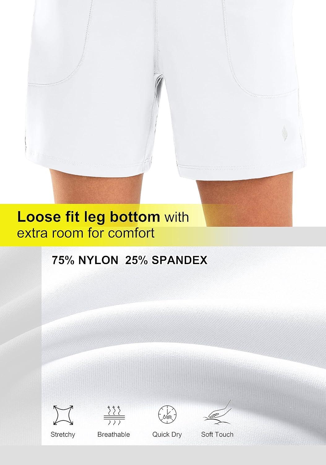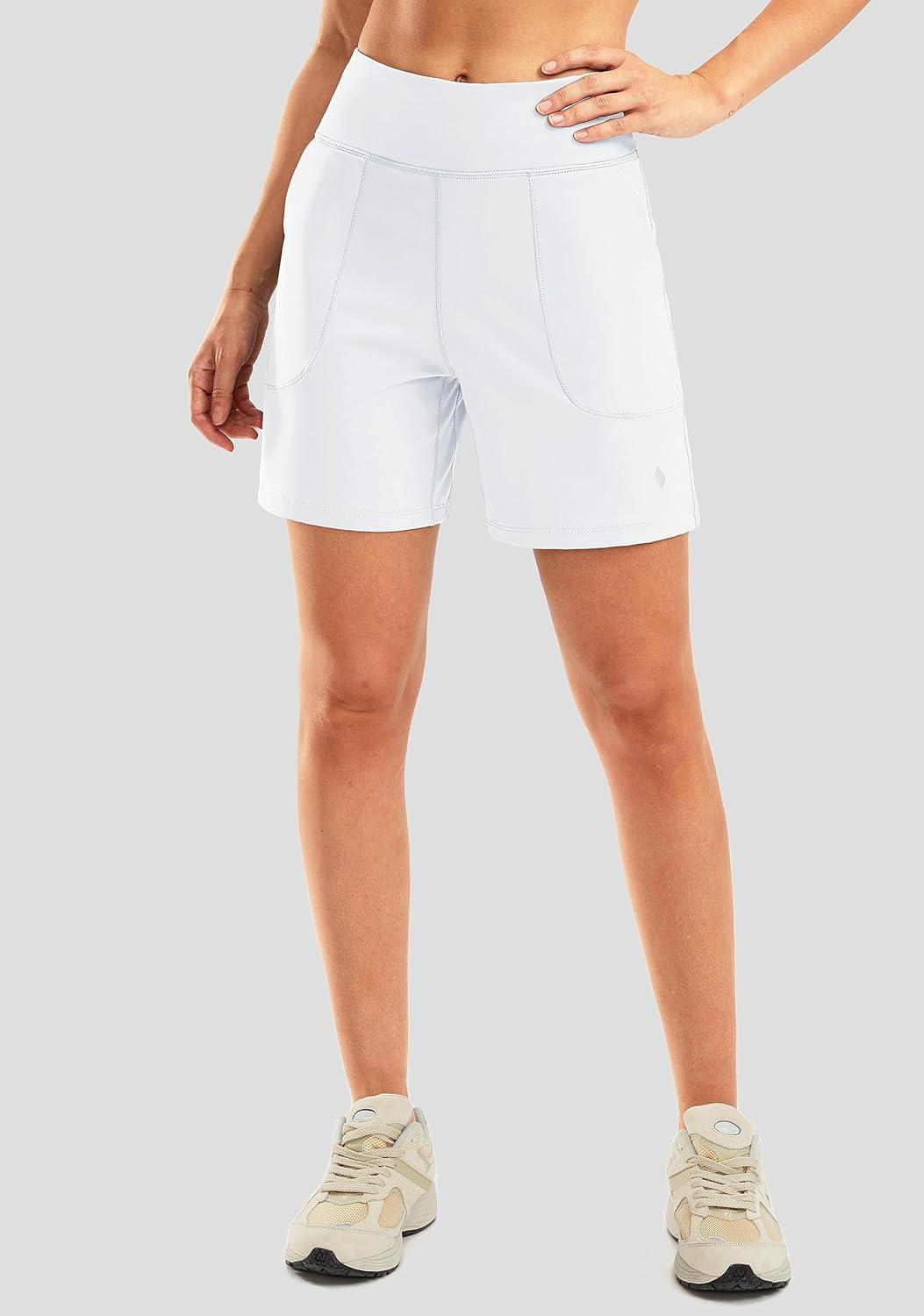 SANTINY Women’s 6” Athletic Long Shorts with 4 Pockets High Waisted Bermuda Shorts for Women Walking Running Casual(White)
