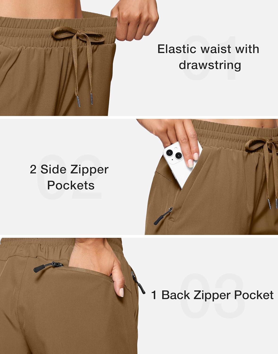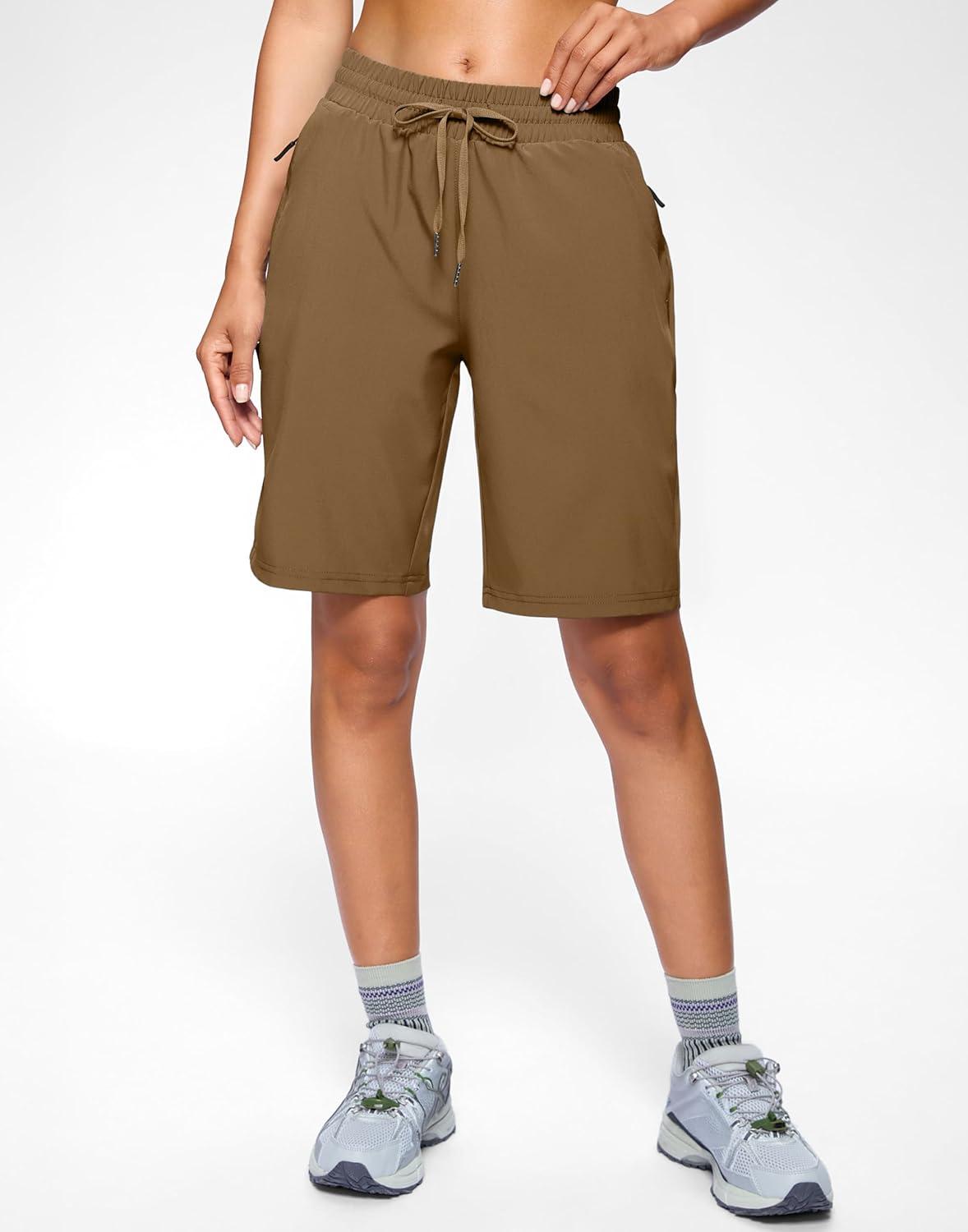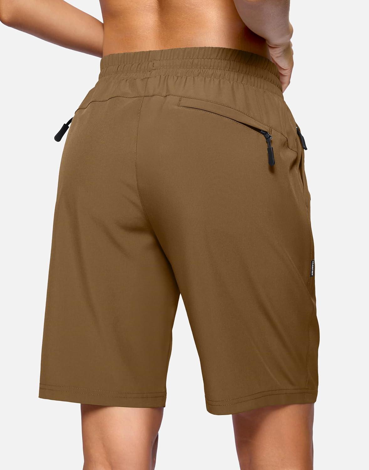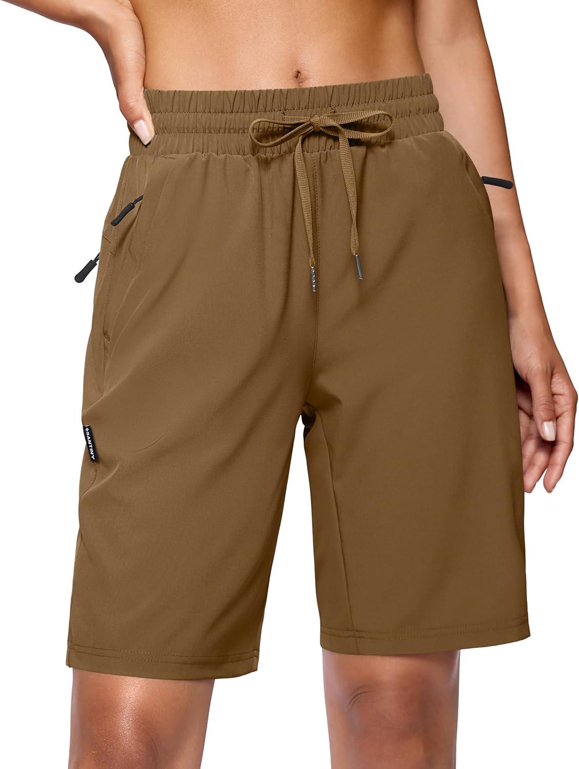 SANTINY Women’s 7”/ 9” Hiking Shorts with 3 Zipper Pockets Lightweight Quick Dry Long Athletic Golf Shorts for Women Casual(Brown)