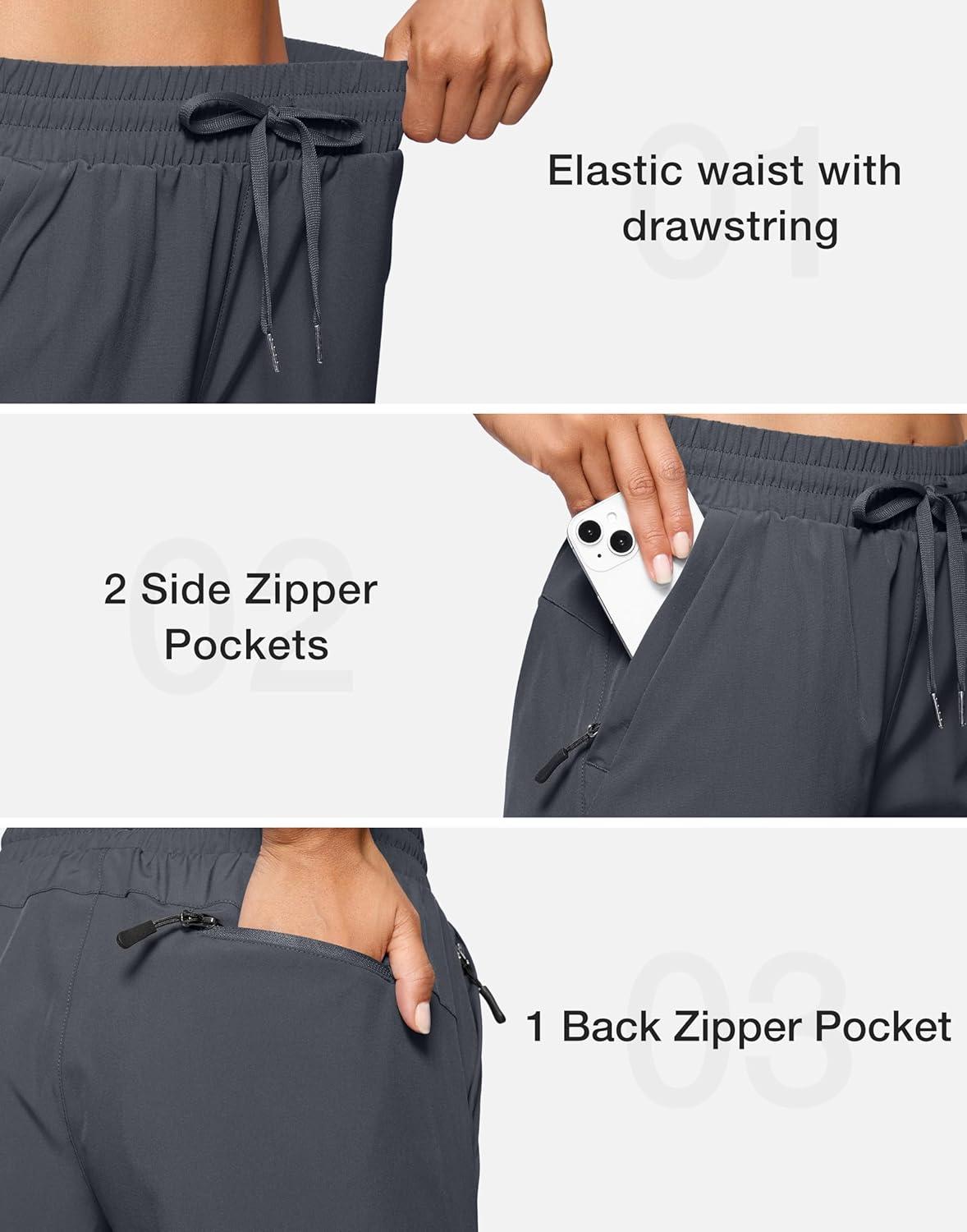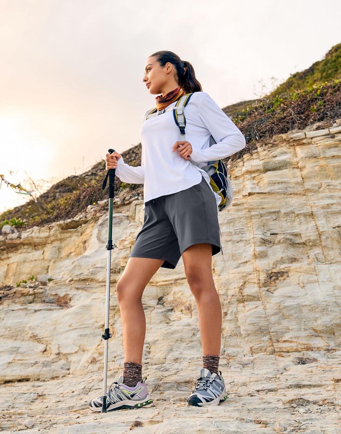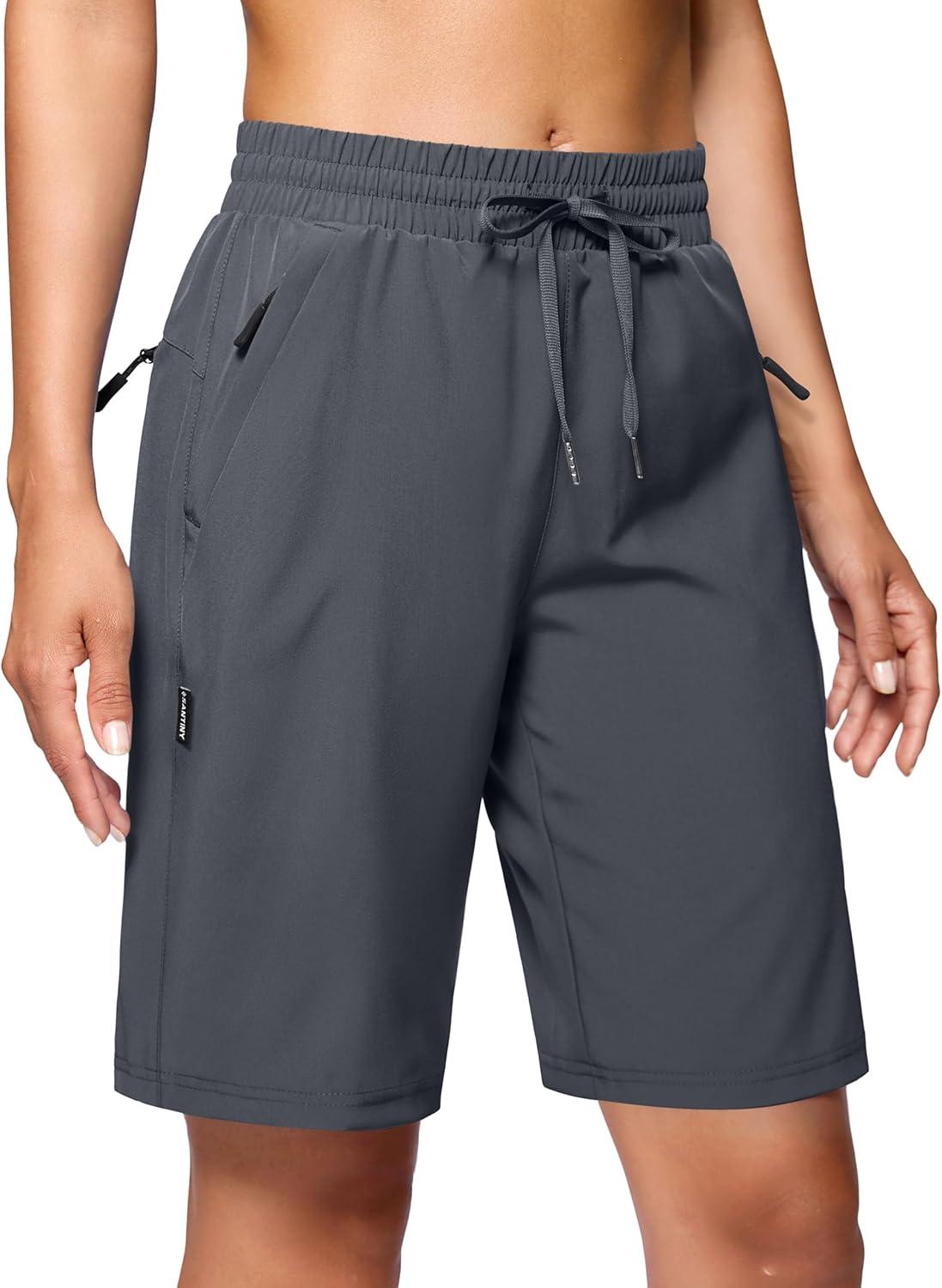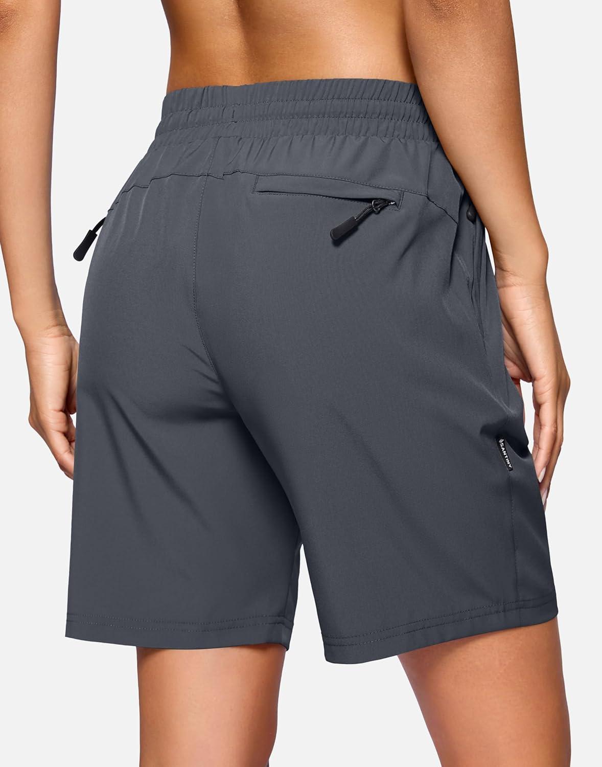SANTINY Women’s 7”/ 9” Hiking Shorts with 3 Zipper Pockets Lightweight Quick Dry Long Athletic Golf Shorts for Women Casual(Dark Grey)