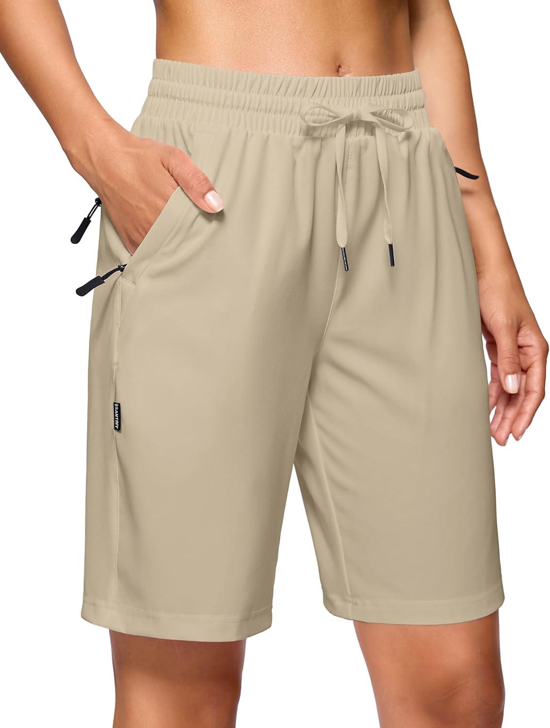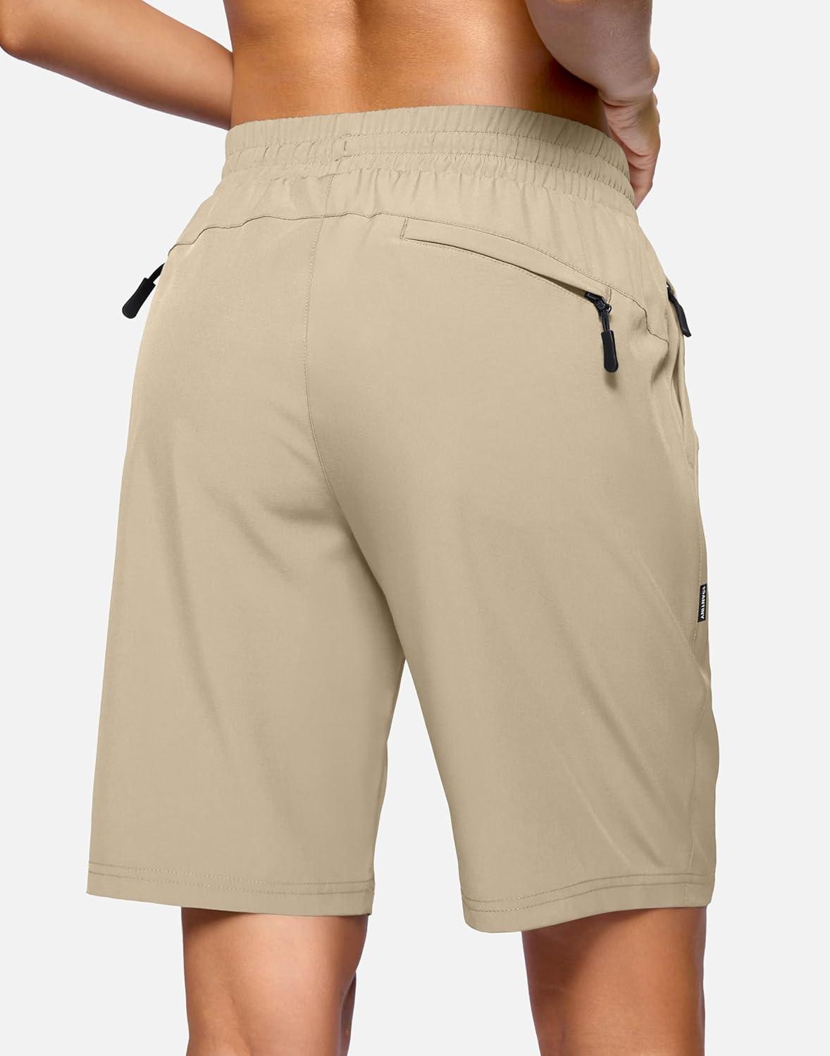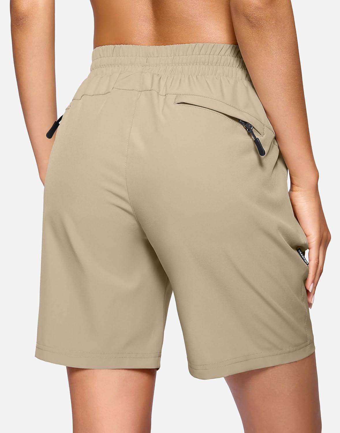 SANTINY Women’s 7”/ 9” Hiking Shorts with 3 Zipper Pockets Lightweight Quick Dry Long Athletic Golf Shorts for Women Casual(Khaki)