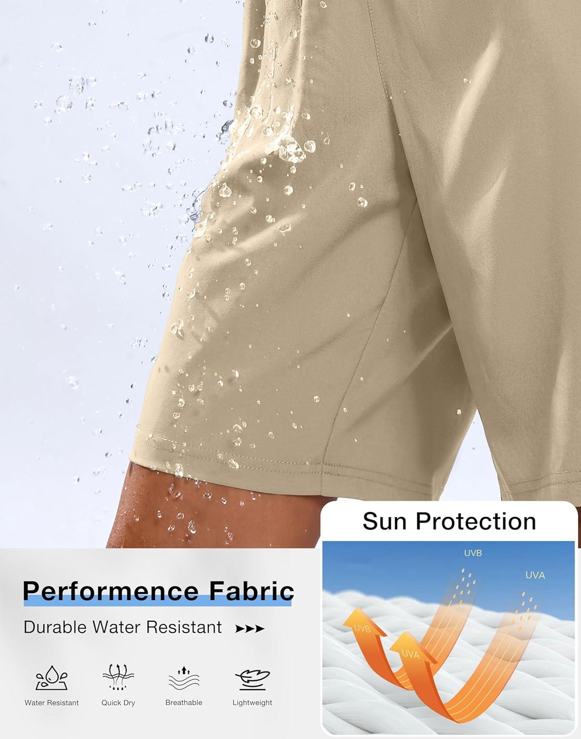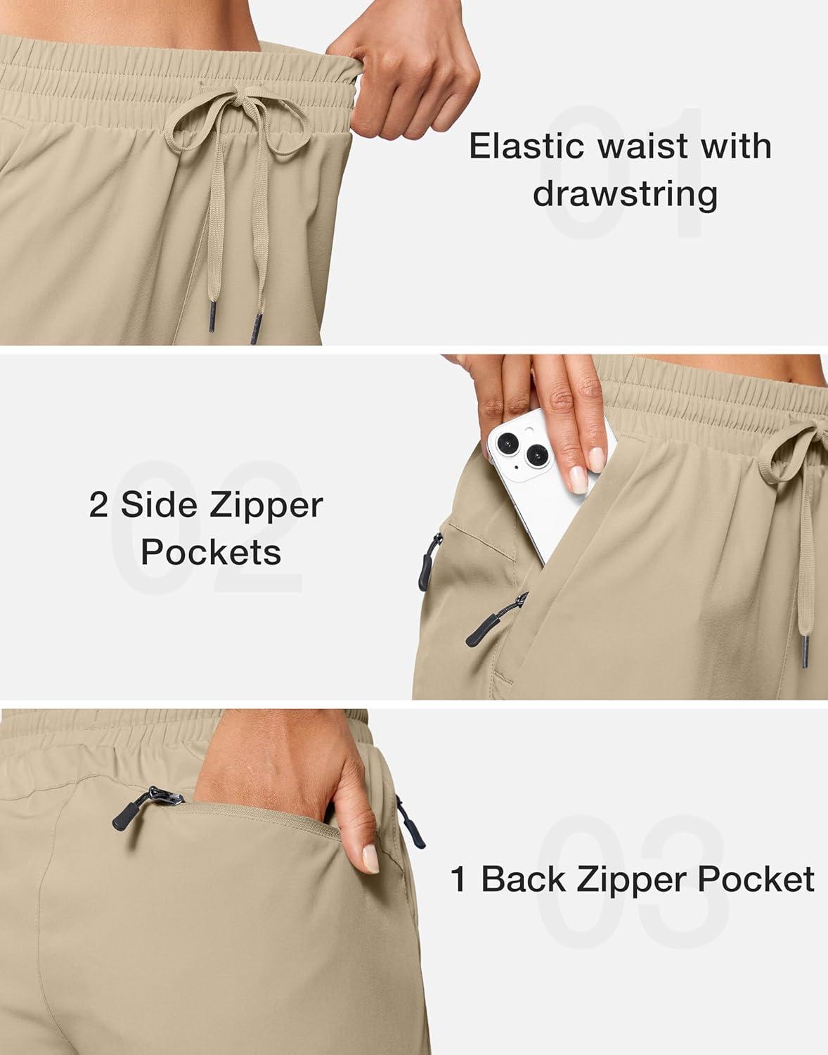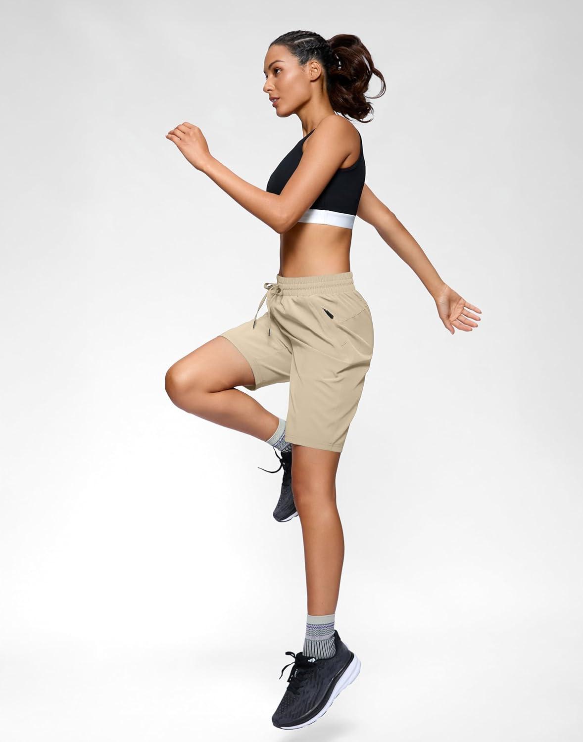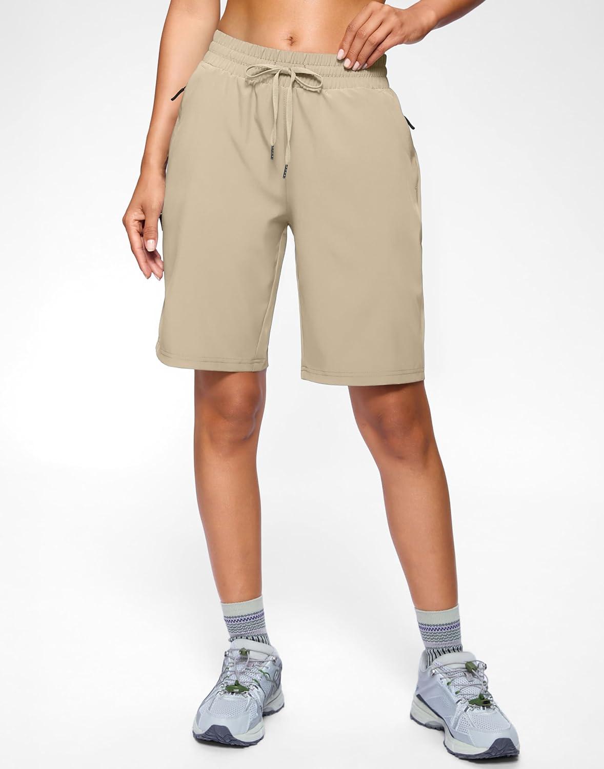 SANTINY Women’s 7”/ 9” Hiking Shorts with 3 Zipper Pockets Lightweight Quick Dry Long Athletic Golf Shorts for Women Casual(Khaki)