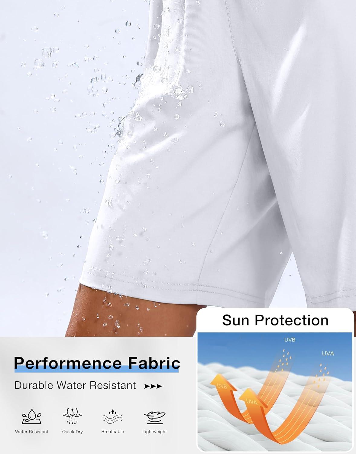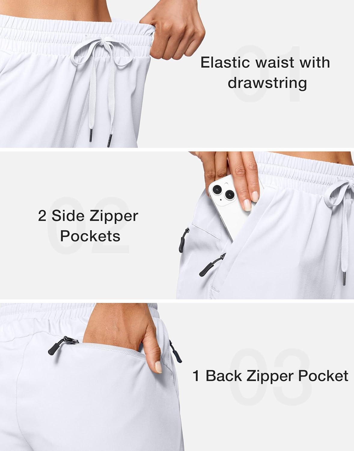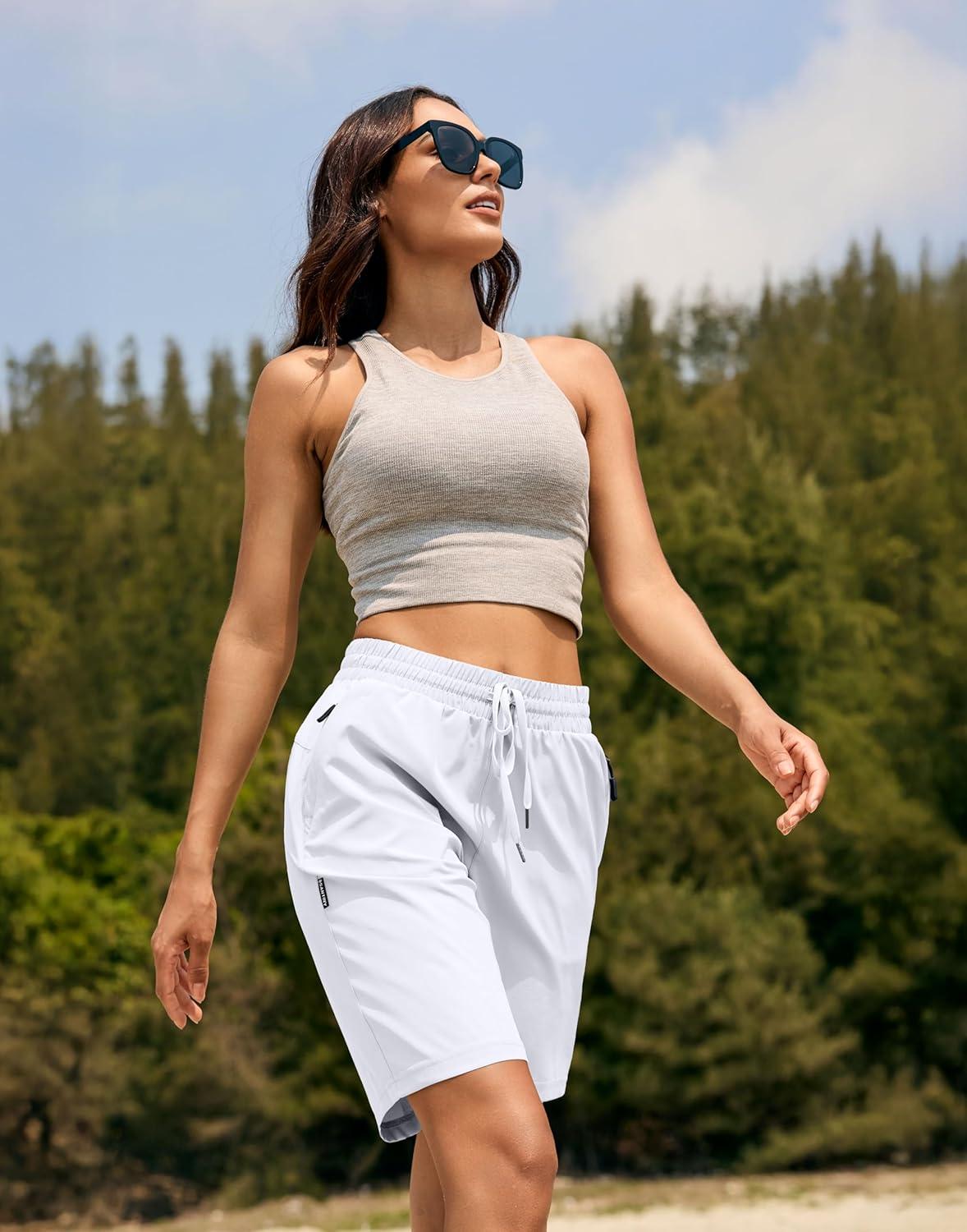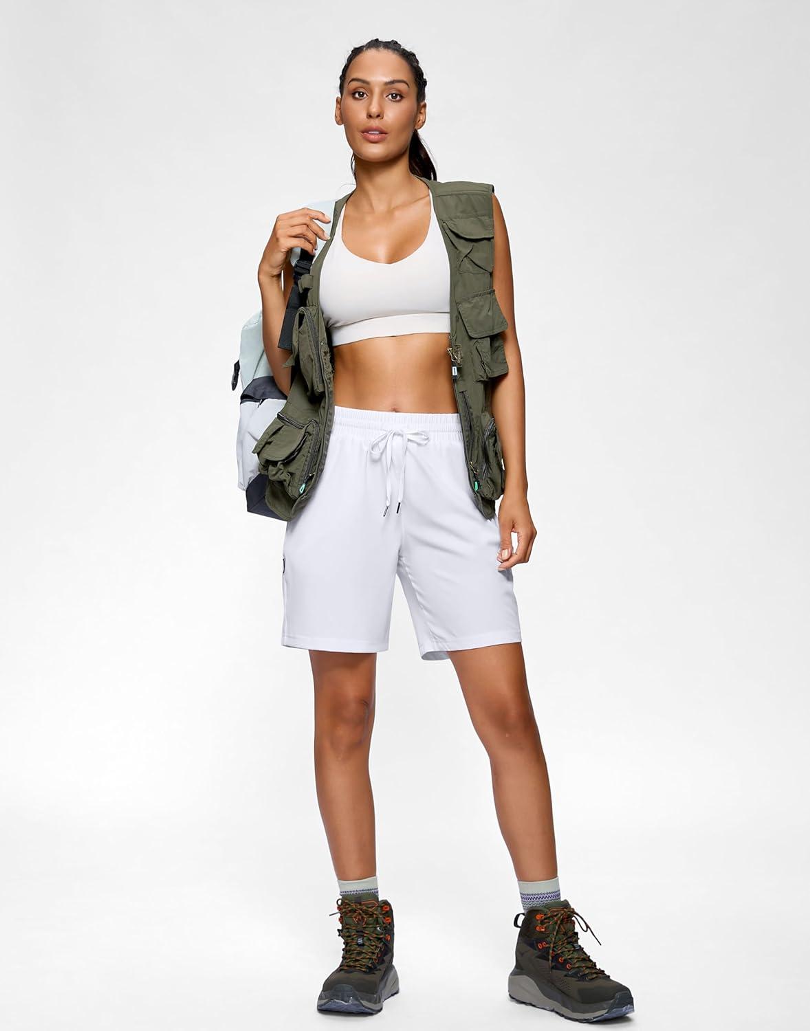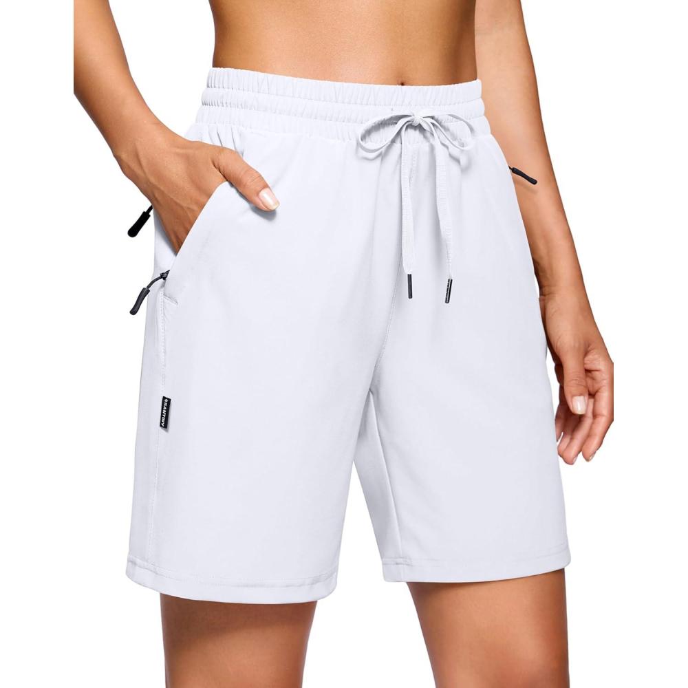 SANTINY Women’s 7”/ 9” Hiking Shorts with 3 Zipper Pockets Lightweight Quick Dry Long Athletic Golf Shorts for Women Casual(White)