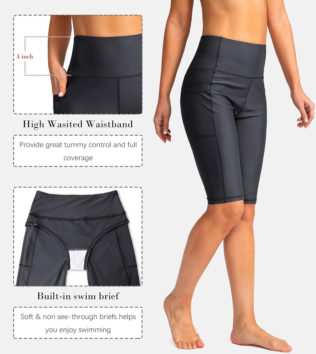 SANTINY Women’s 8”/12” High Waisted Swim Shorts with Pockets UPF50+ Long Board Swimming Shorts for Women with Liner(12in-grey)