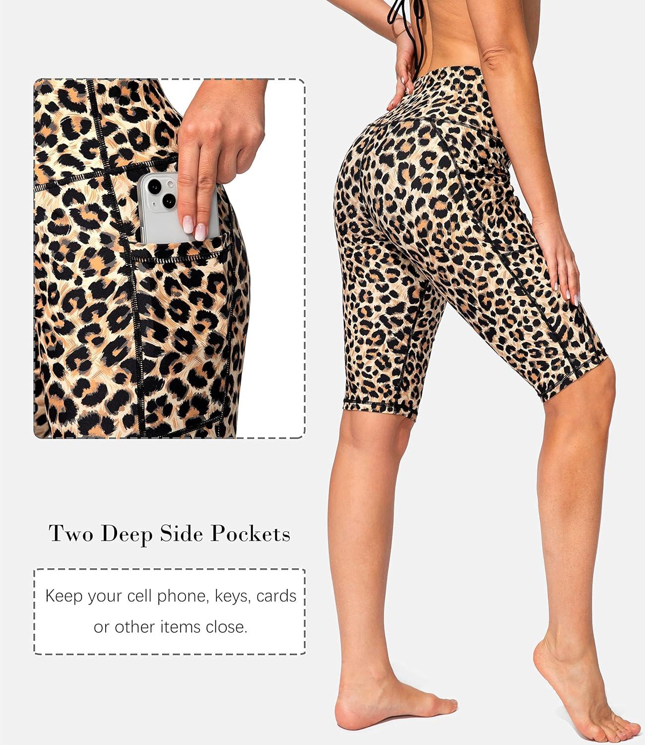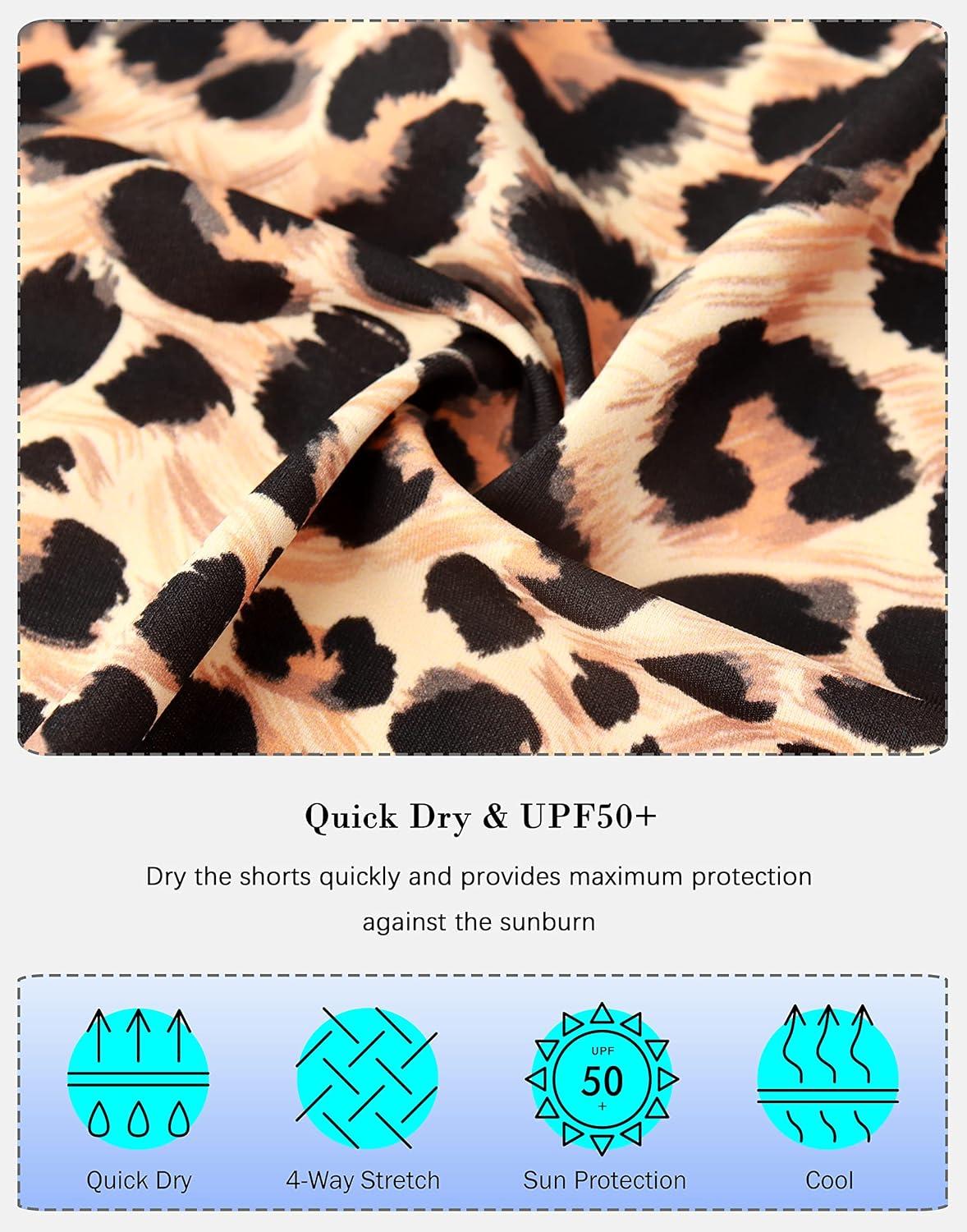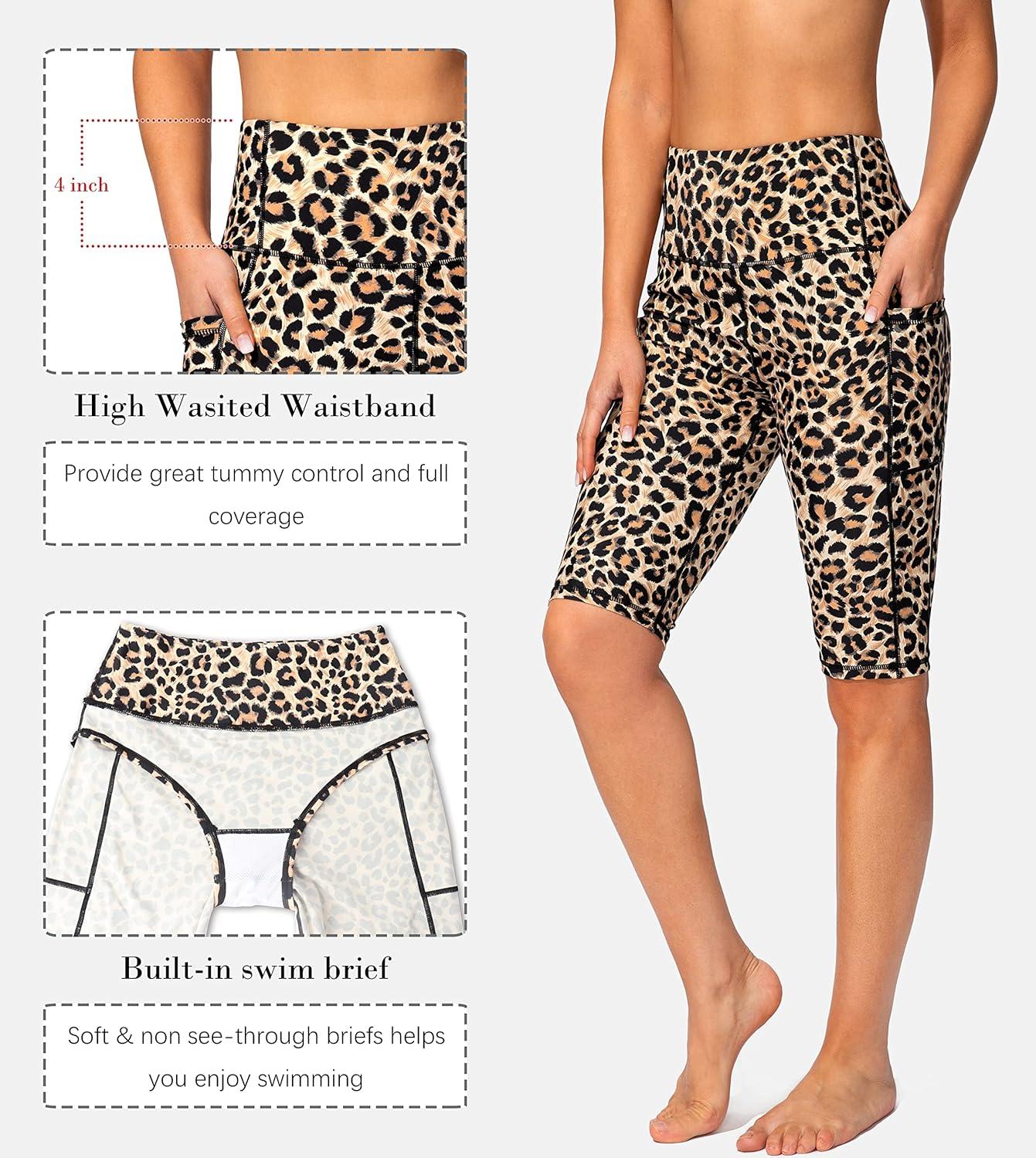 SANTINY Women’s 8”/12” High Waisted Swim Shorts with Pockets UPF50+ Long Board Swimming Shorts for Women with Liner(12in-leopard)