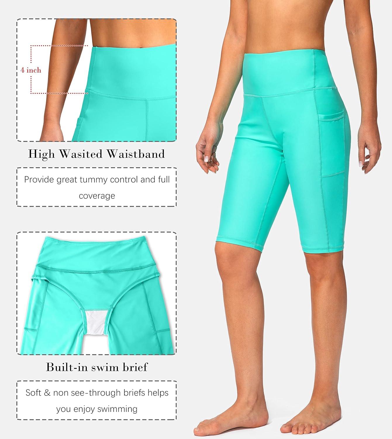 SANTINY Women’s 8”/12” High Waisted Swim Shorts with Pockets UPF50+ Long Board Swimming Shorts for Women with Liner(12in-mint Green)