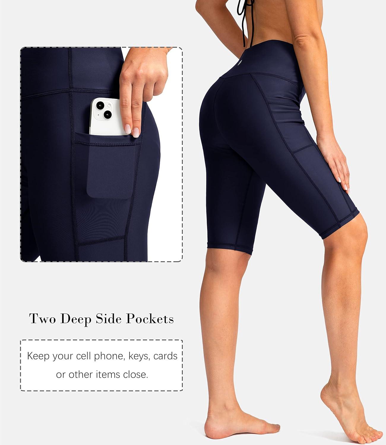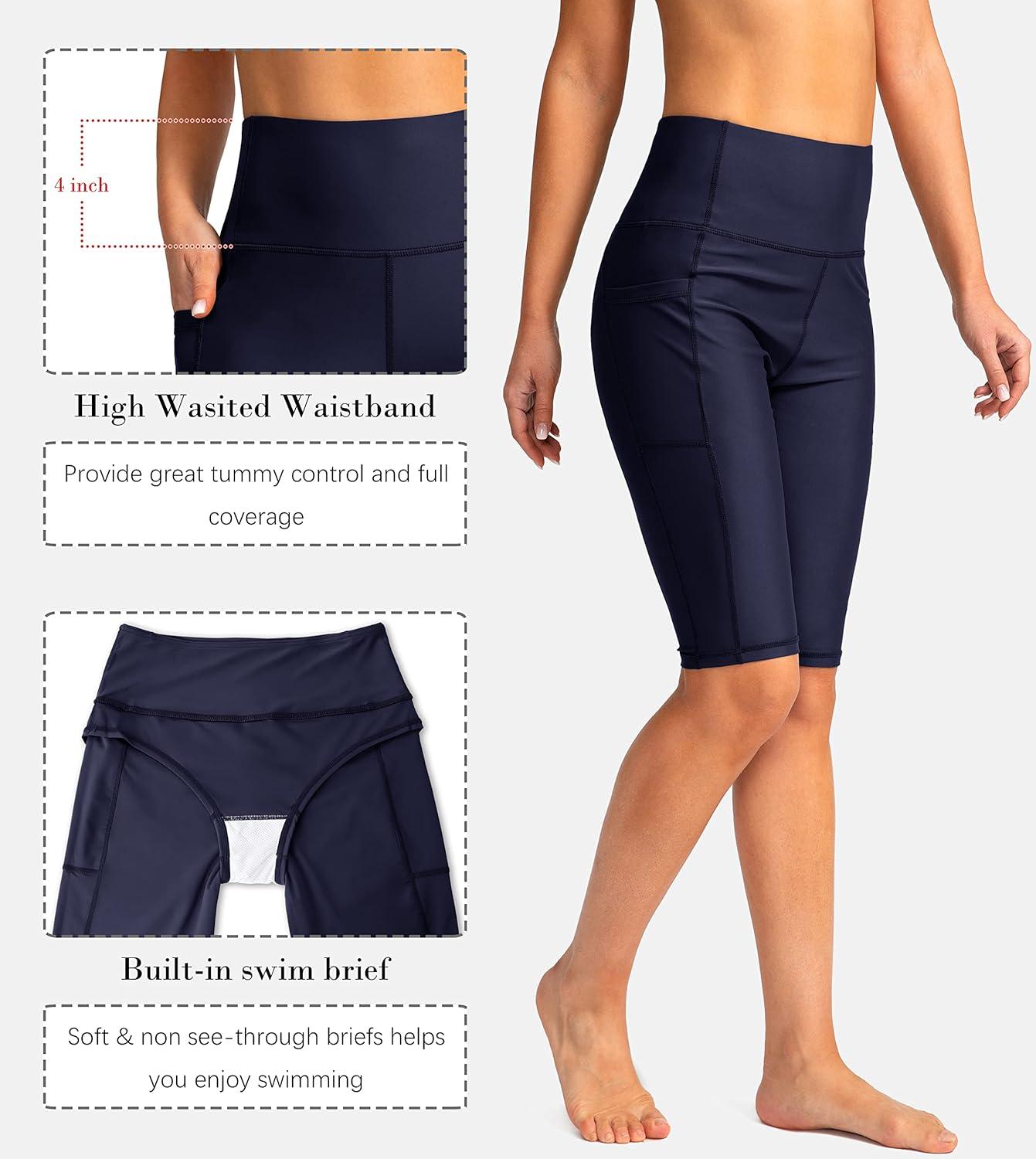 SANTINY Women’s 8”/12” High Waisted Swim Shorts with Pockets UPF50+ Long Board Swimming Shorts for Women with Liner(12in-navy)