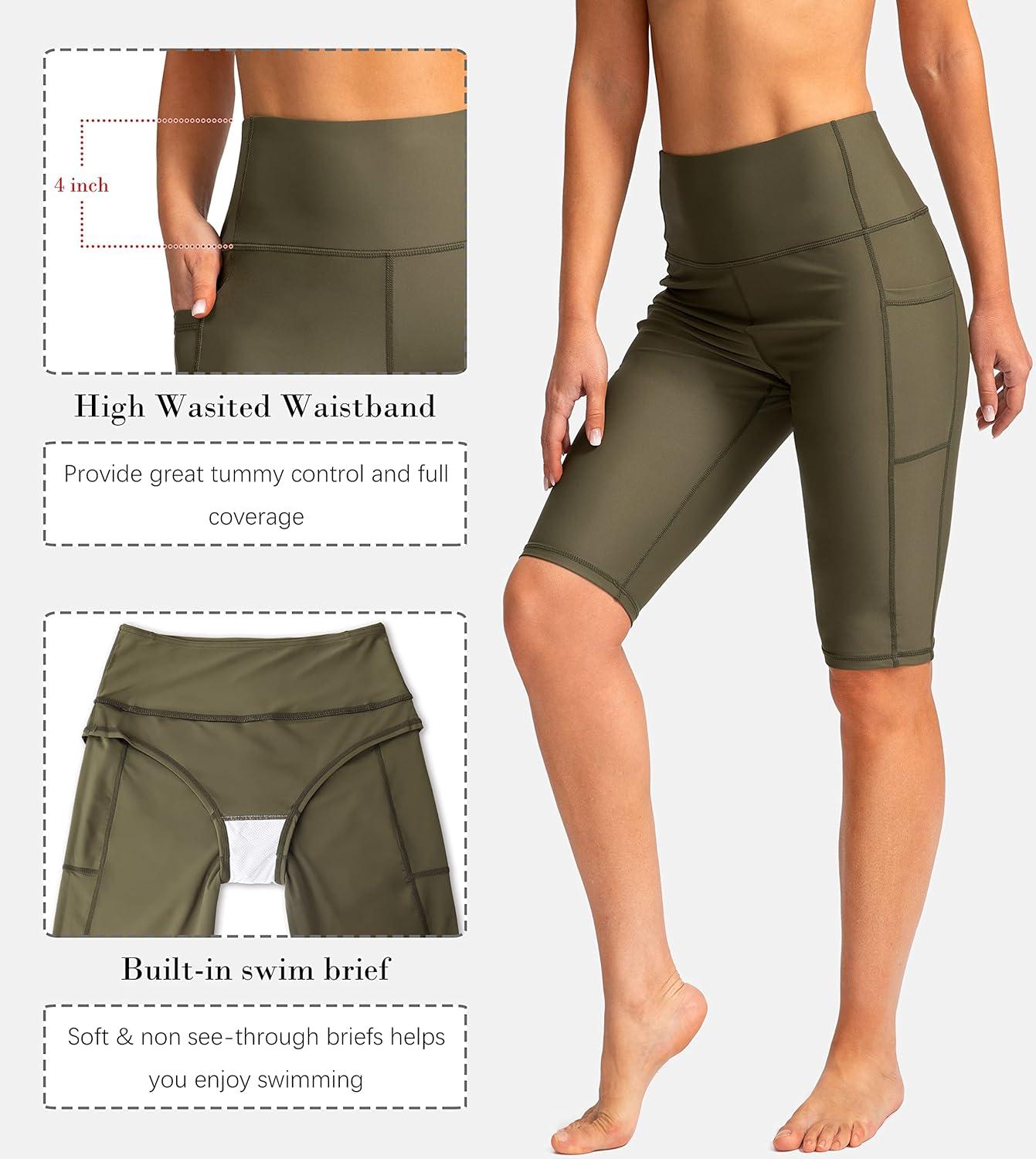 SANTINY Women’s 8”/12” High Waisted Swim Shorts with Pockets UPF50+ Long Board Swimming Shorts for Women with Liner(12in-olive Green)