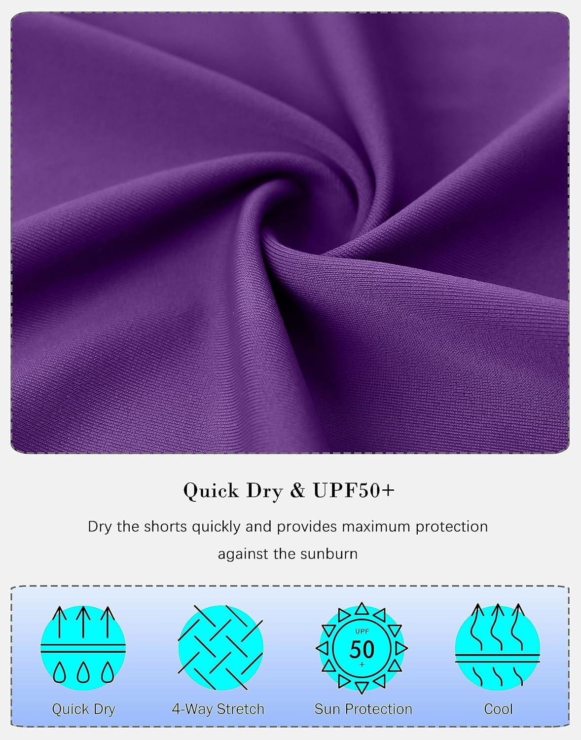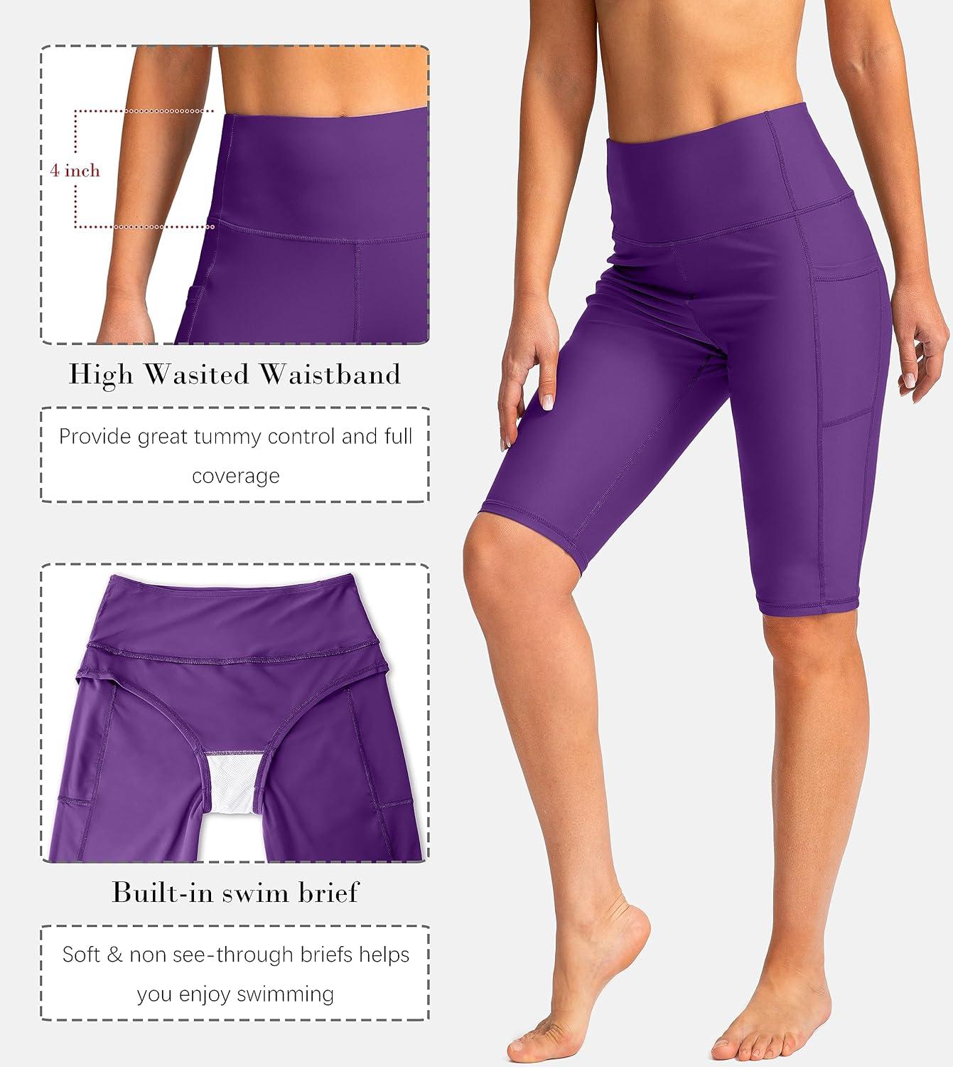 SANTINY Women’s 8”/12” High Waisted Swim Shorts with Pockets UPF50+ Long Board Swimming Shorts for Women with Liner(12in-purple)