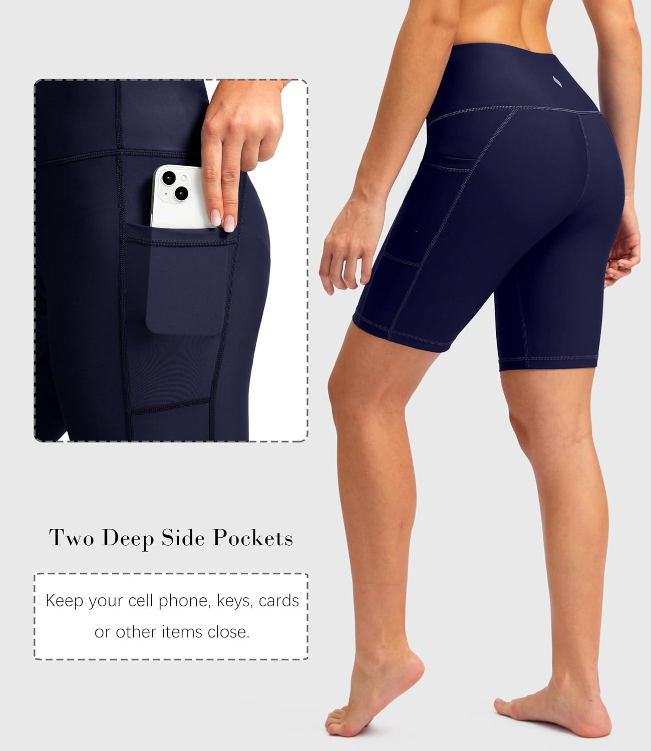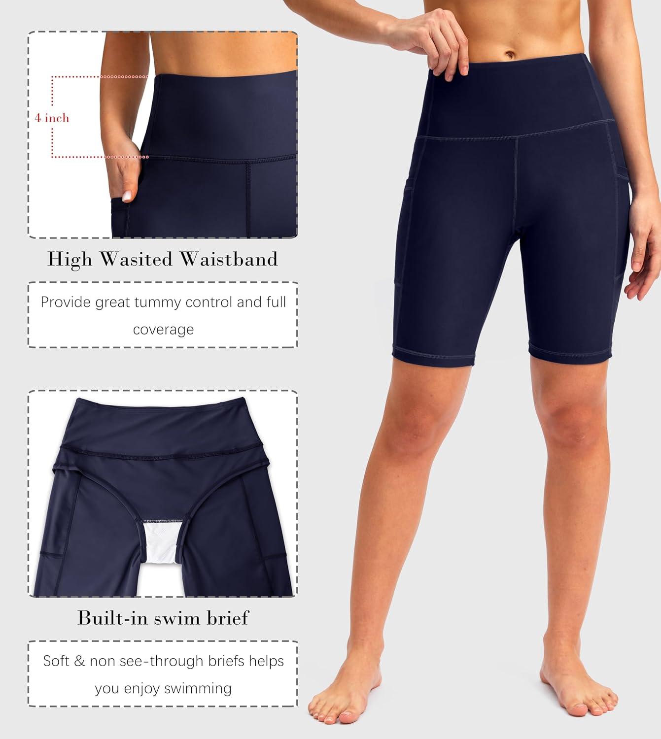 SANTINY Women’s 8”/12” High Waisted Swim Shorts with Pockets UPF50+ Long Board Swimming Shorts for Women with Liner(8-in-navy)