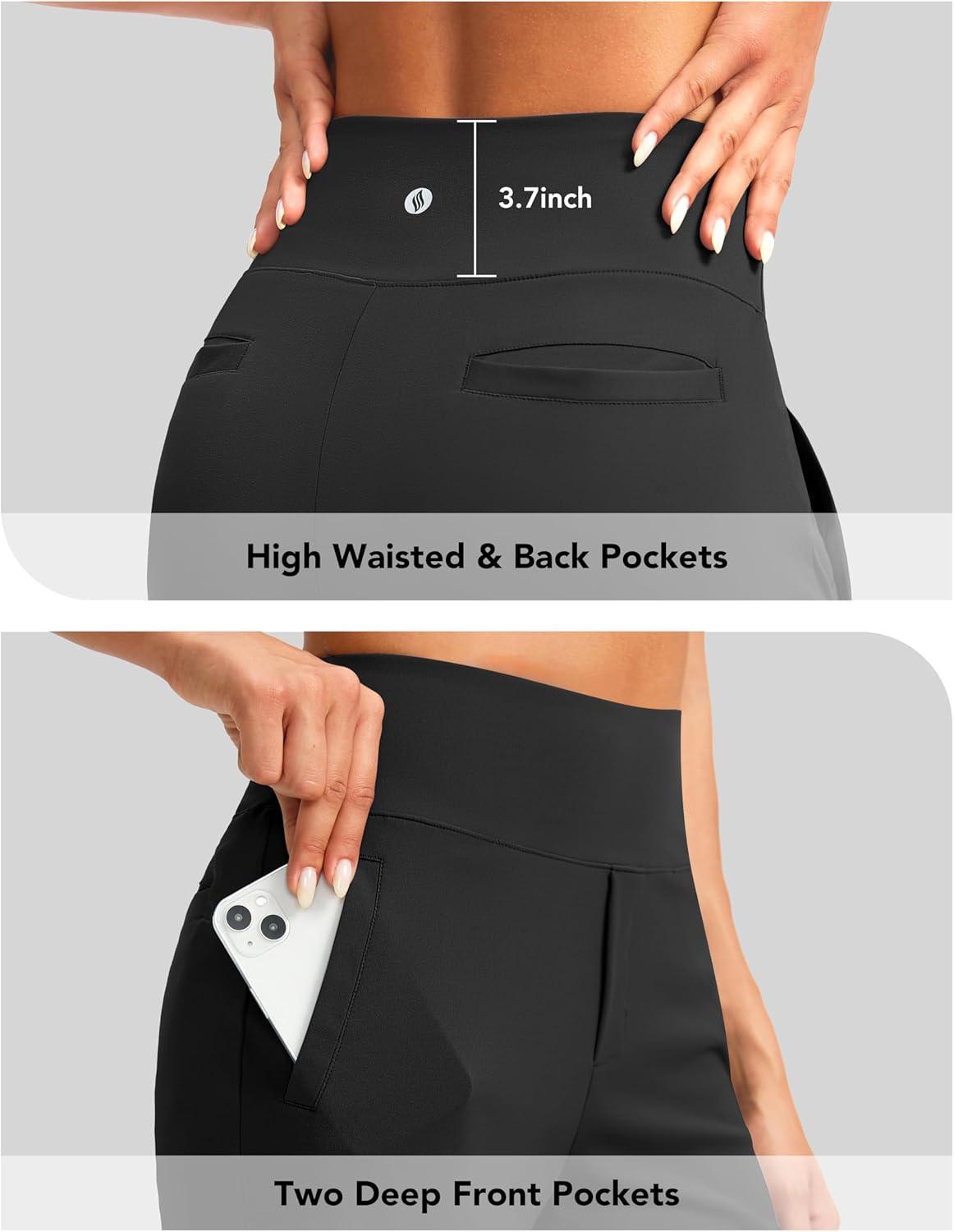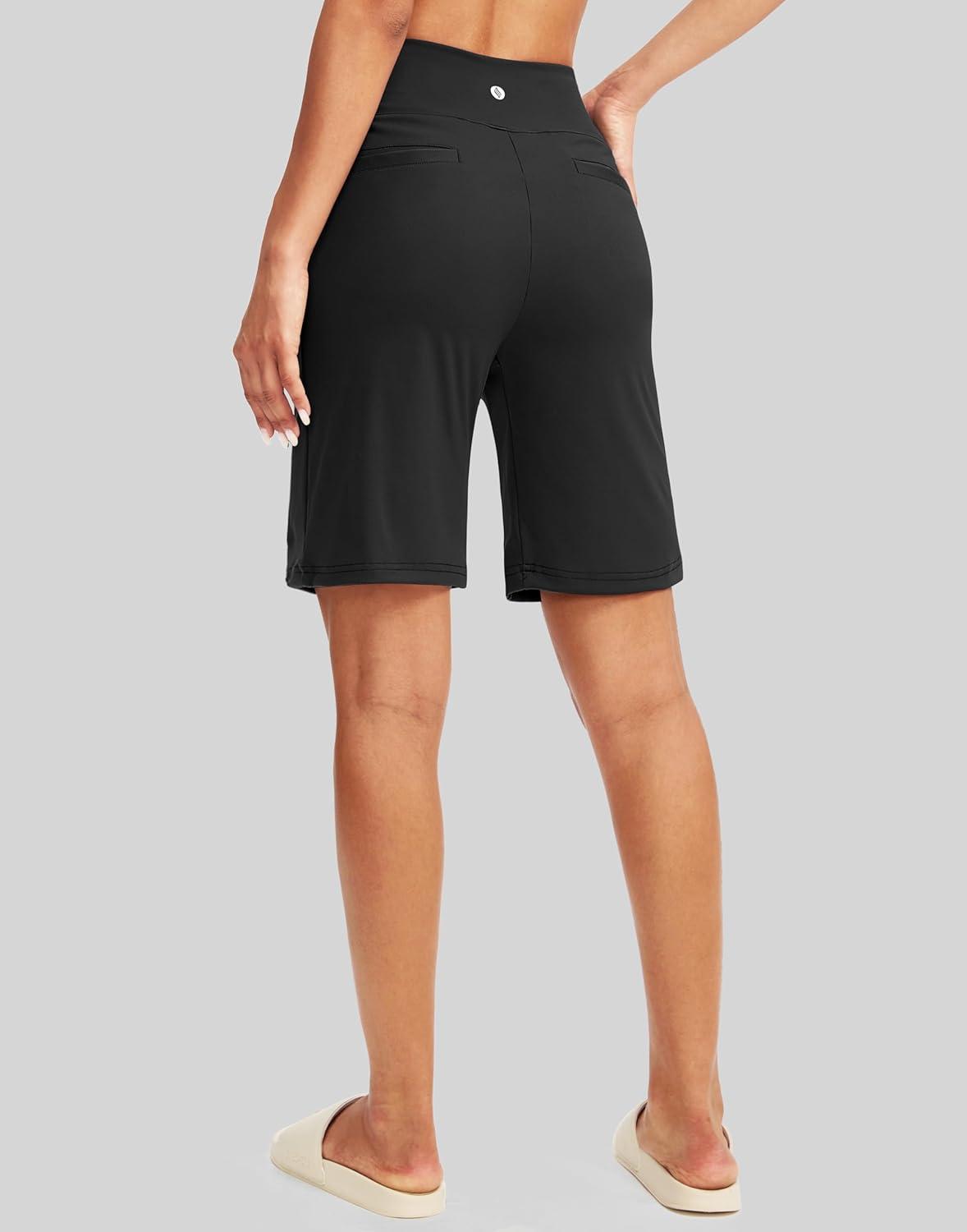 SANTINY Women’s 9″ High Waisted Bermuda Shorts with 4 Pockets Knee Length Long Shorts for Women Workout Athletic Casual(Black)