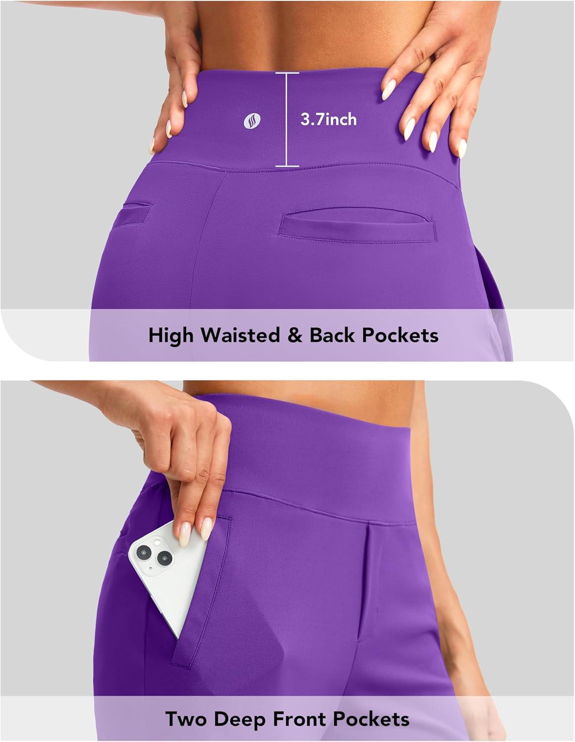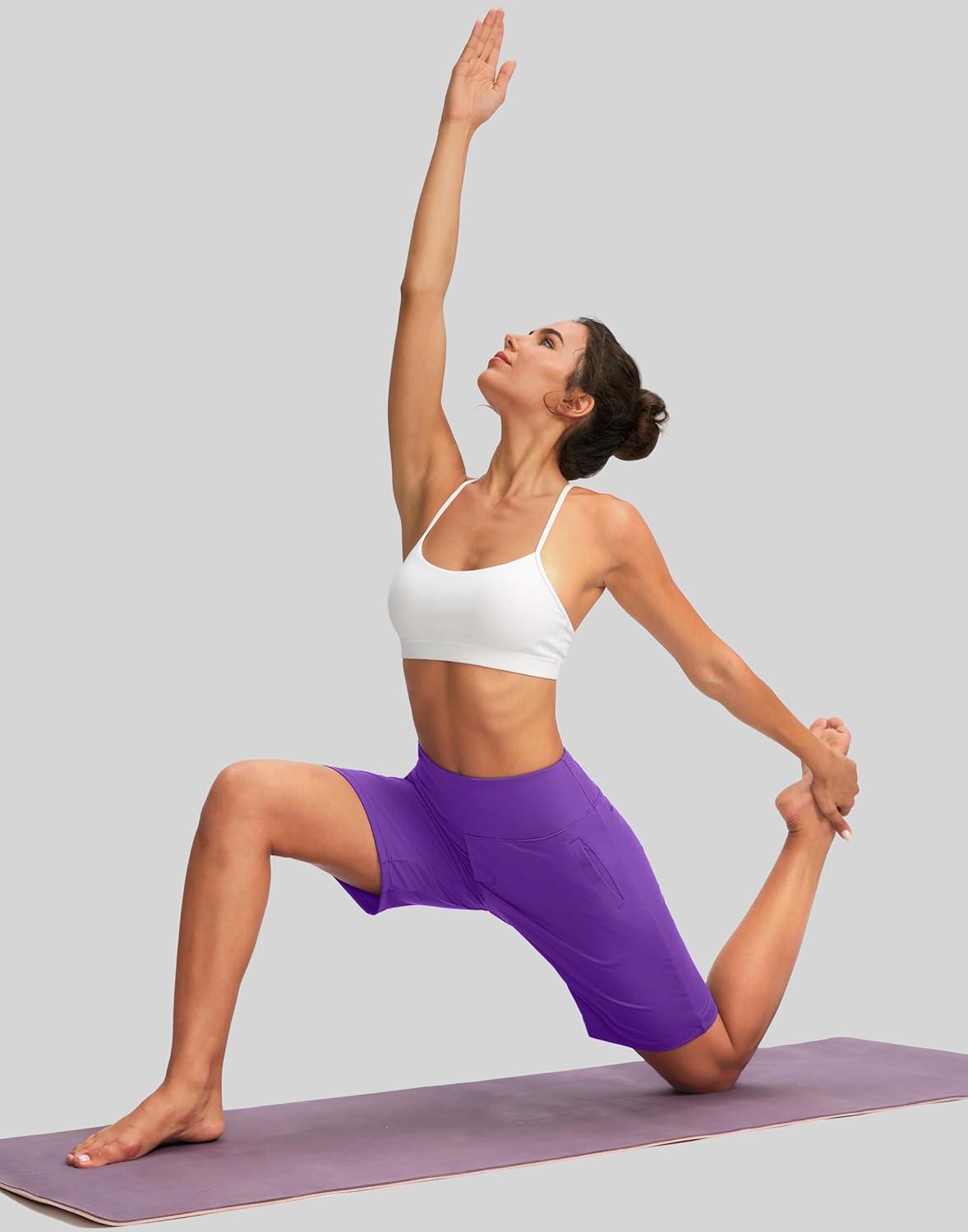 SANTINY Women’s 9″ High Waisted Bermuda Shorts with 4 Pockets Knee Length Long Shorts for Women Workout Athletic Casual(Royal Lilac)