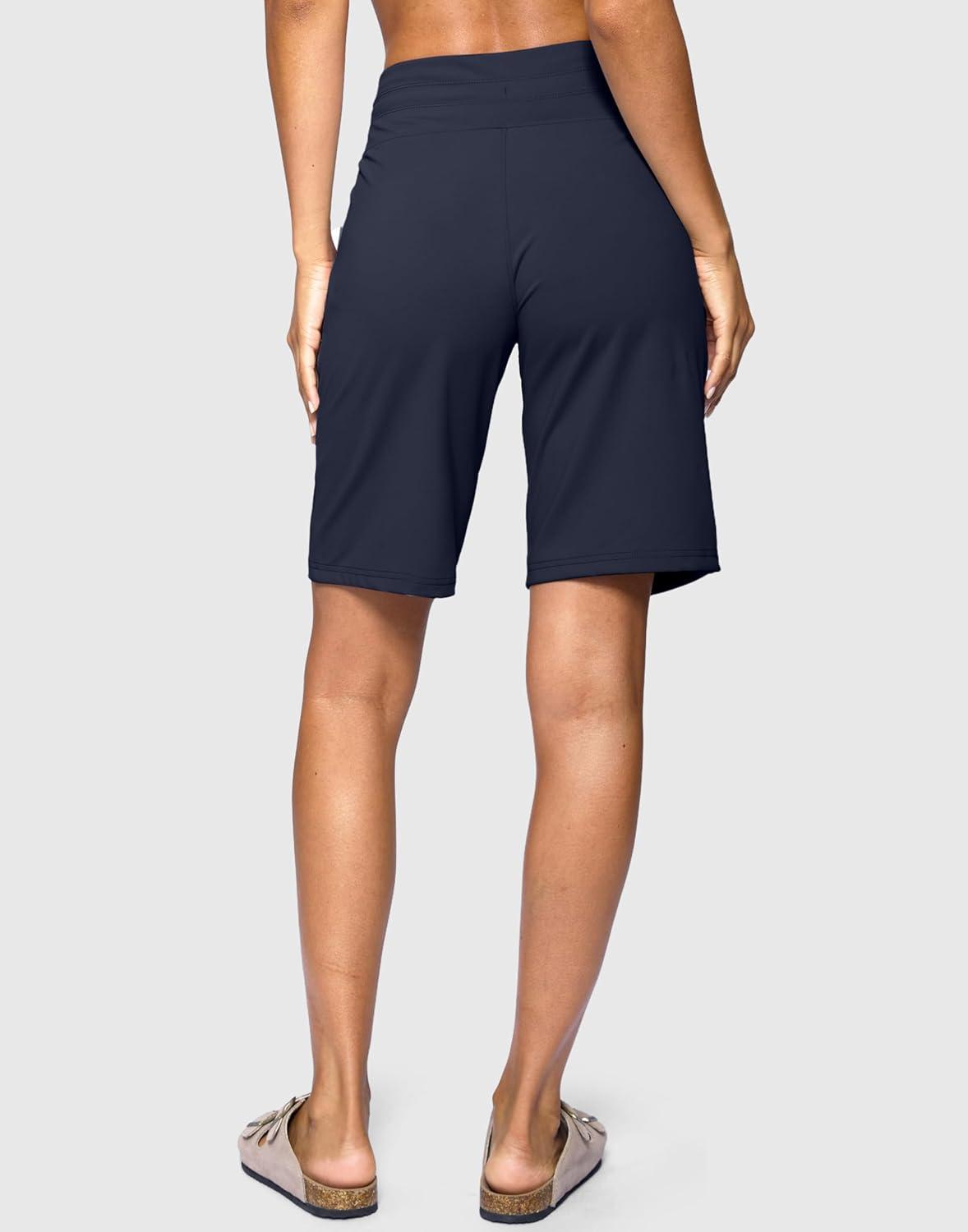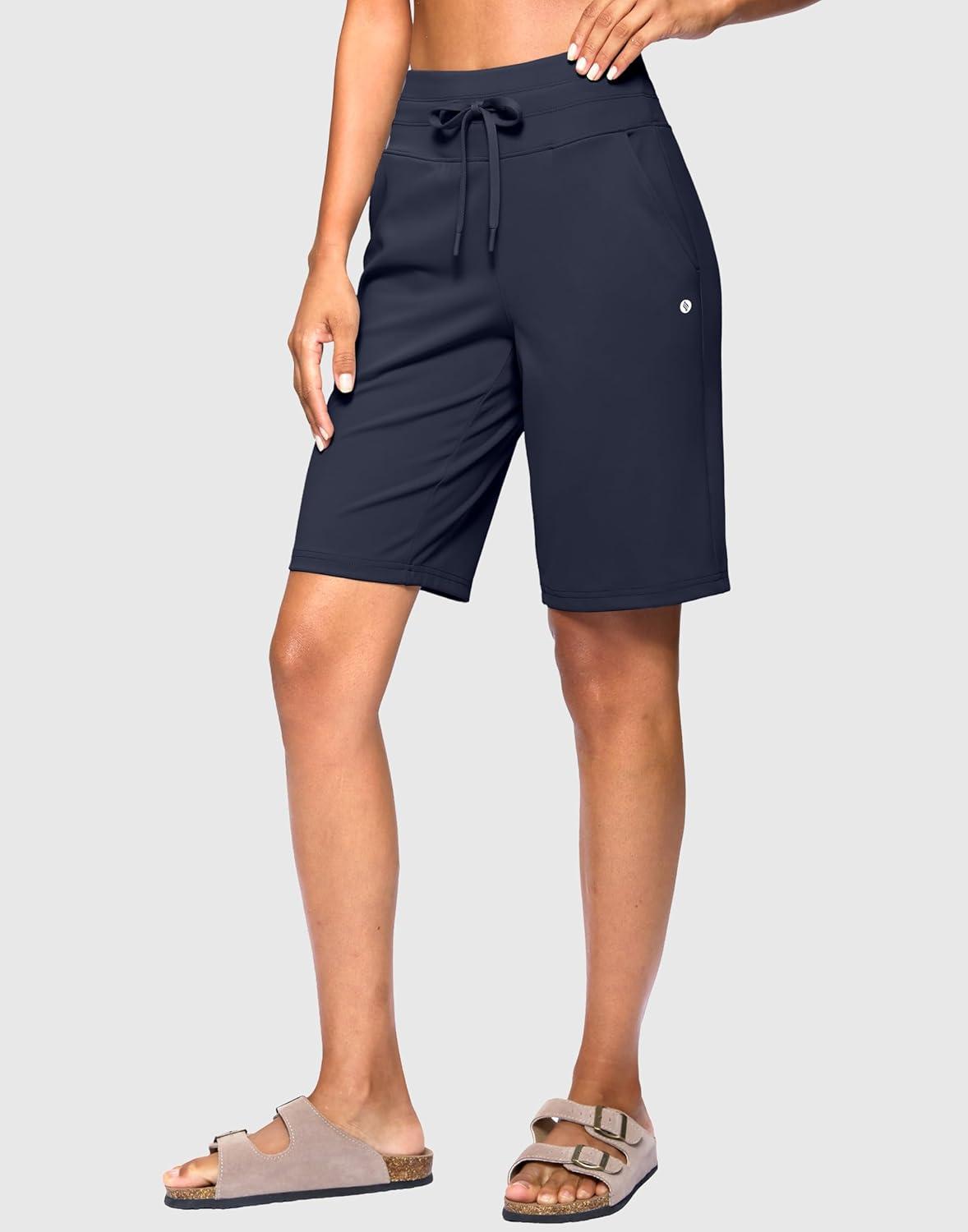 SANTINY Women’s Bermuda Long Shorts with Pockets Drawstring High Waisted Athletic Knee Length Shorts Walking Casual Workout(03-navy)