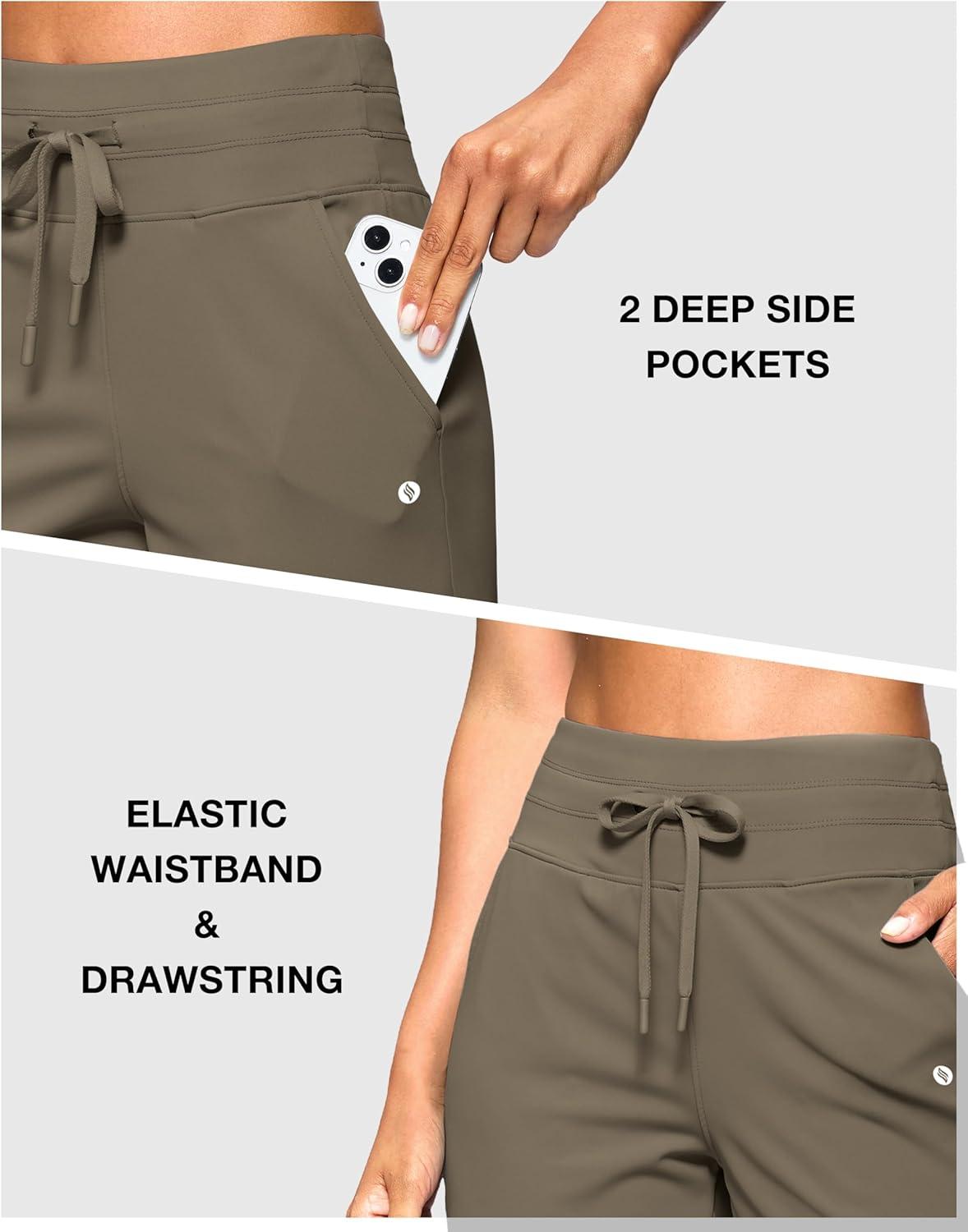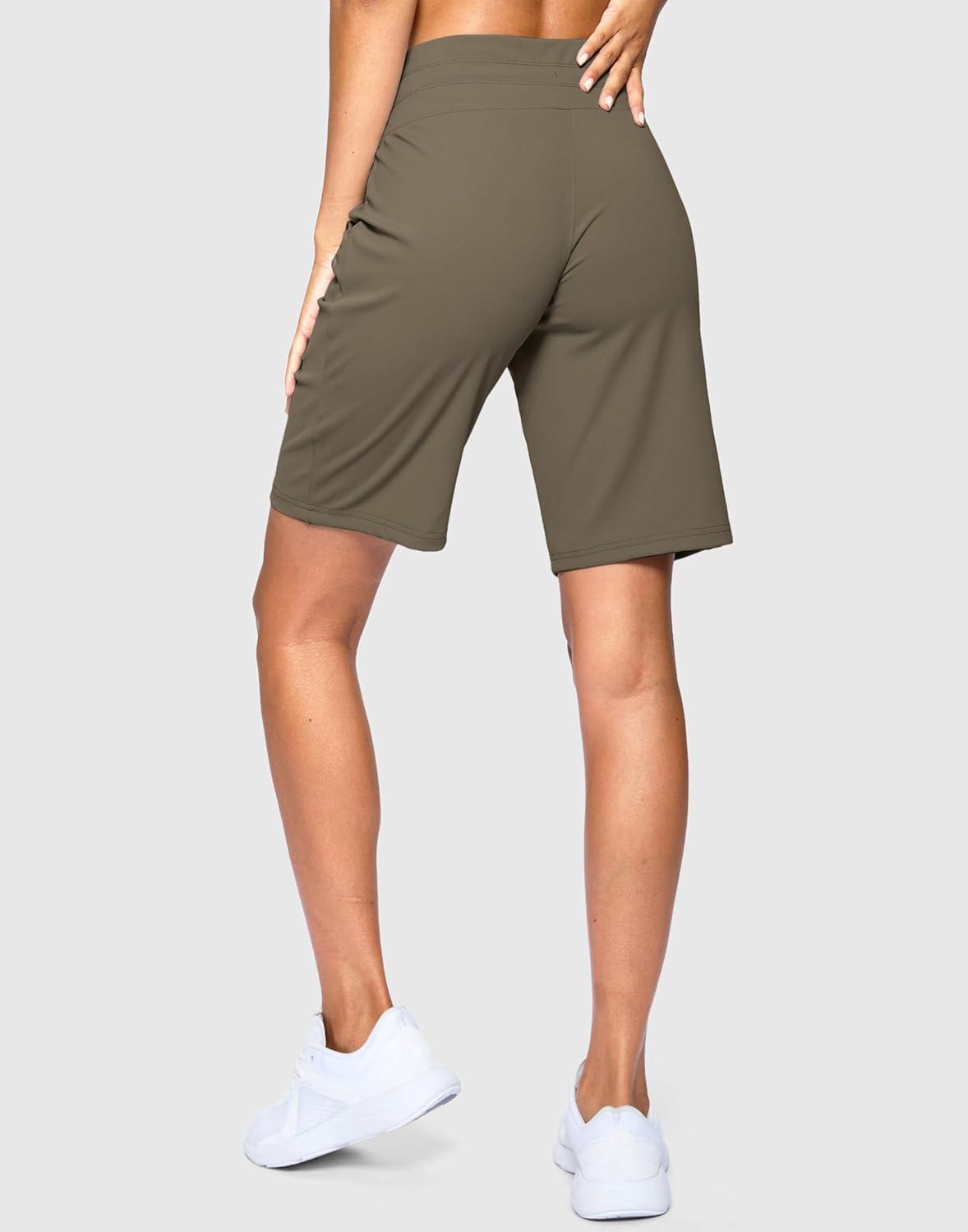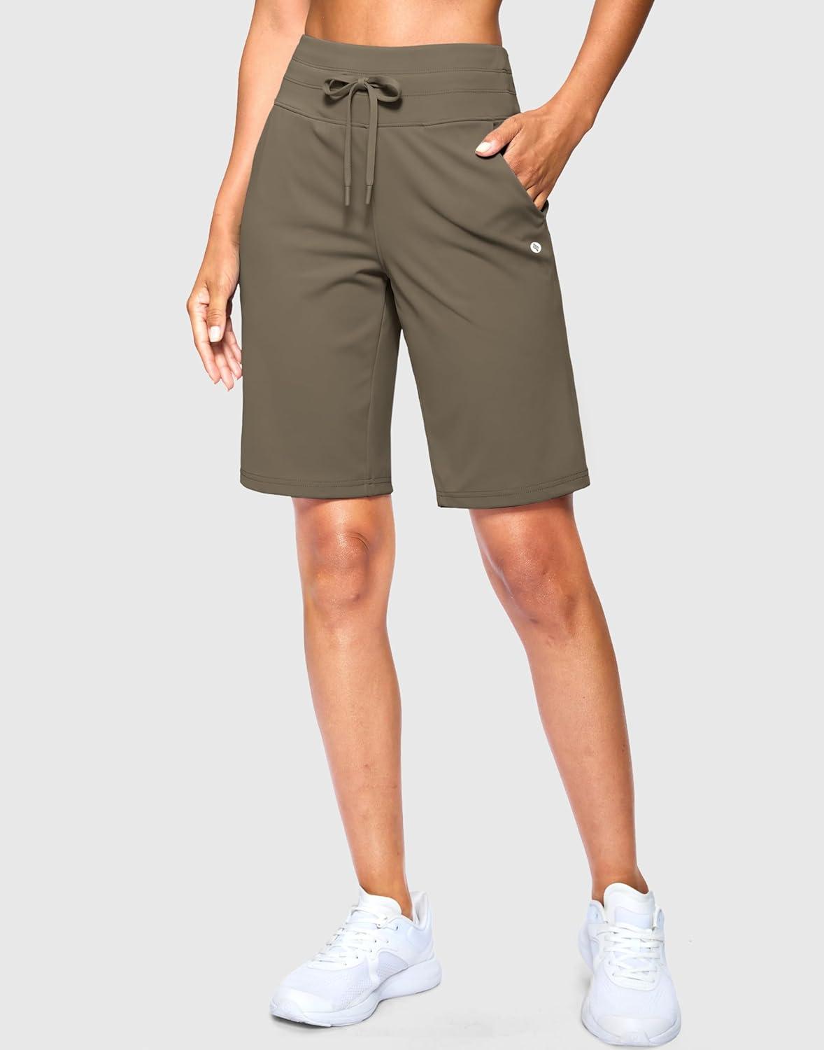 SANTINY Women’s Bermuda Long Shorts with Pockets Drawstring High Waisted Athletic Knee Length Shorts Walking Casual Workout(Dark Khaki)