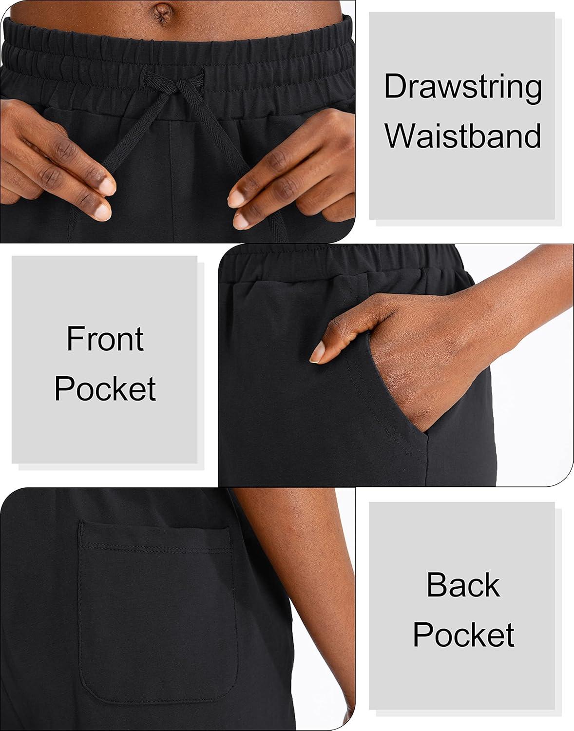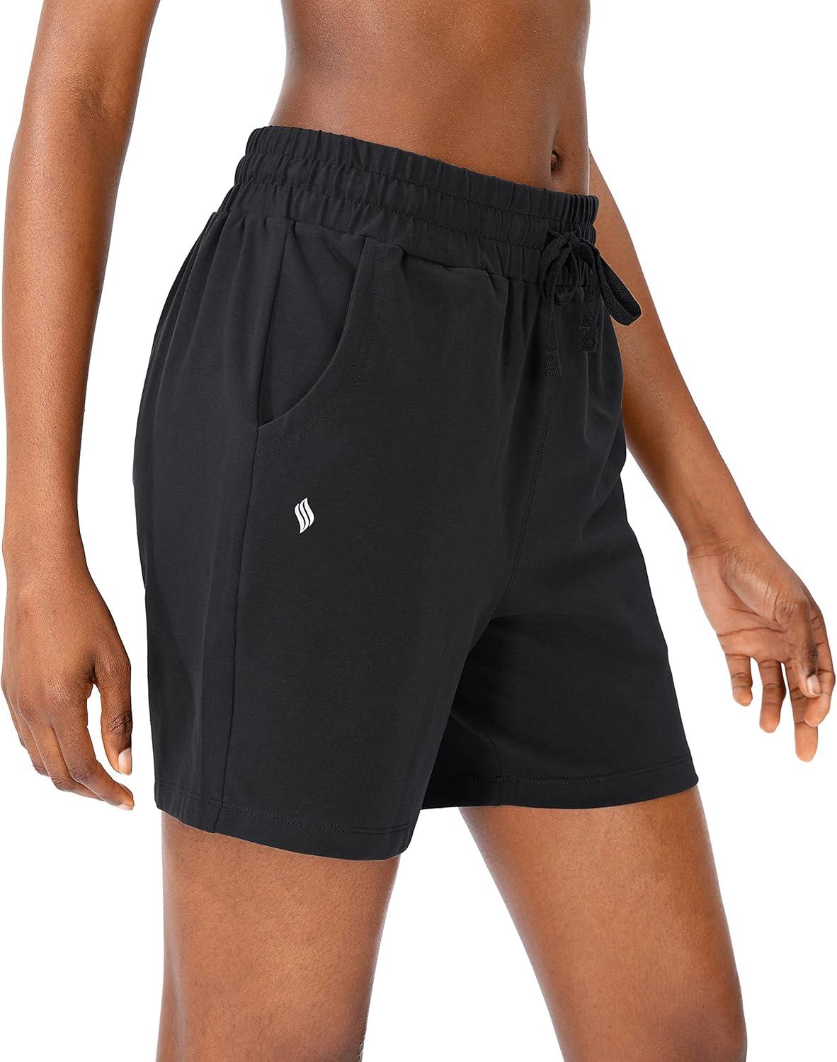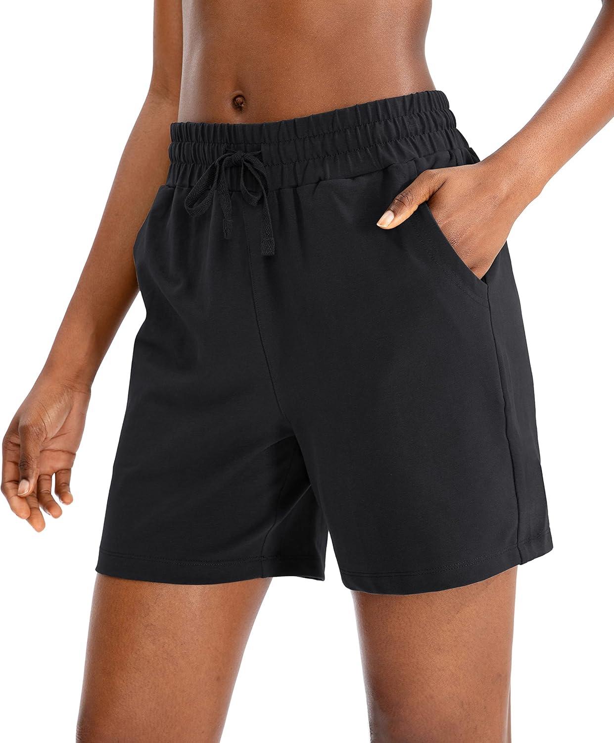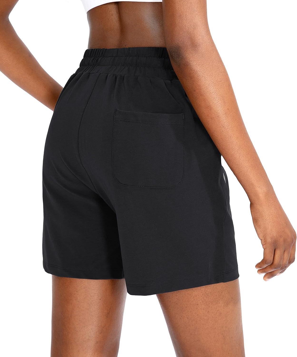 SANTINY Women’s Cotton Shorts 5” Lounge Yoga Shorts Jersey Sweat Bermuda Shorts for Women Walking Athletic with Pockets(Black)